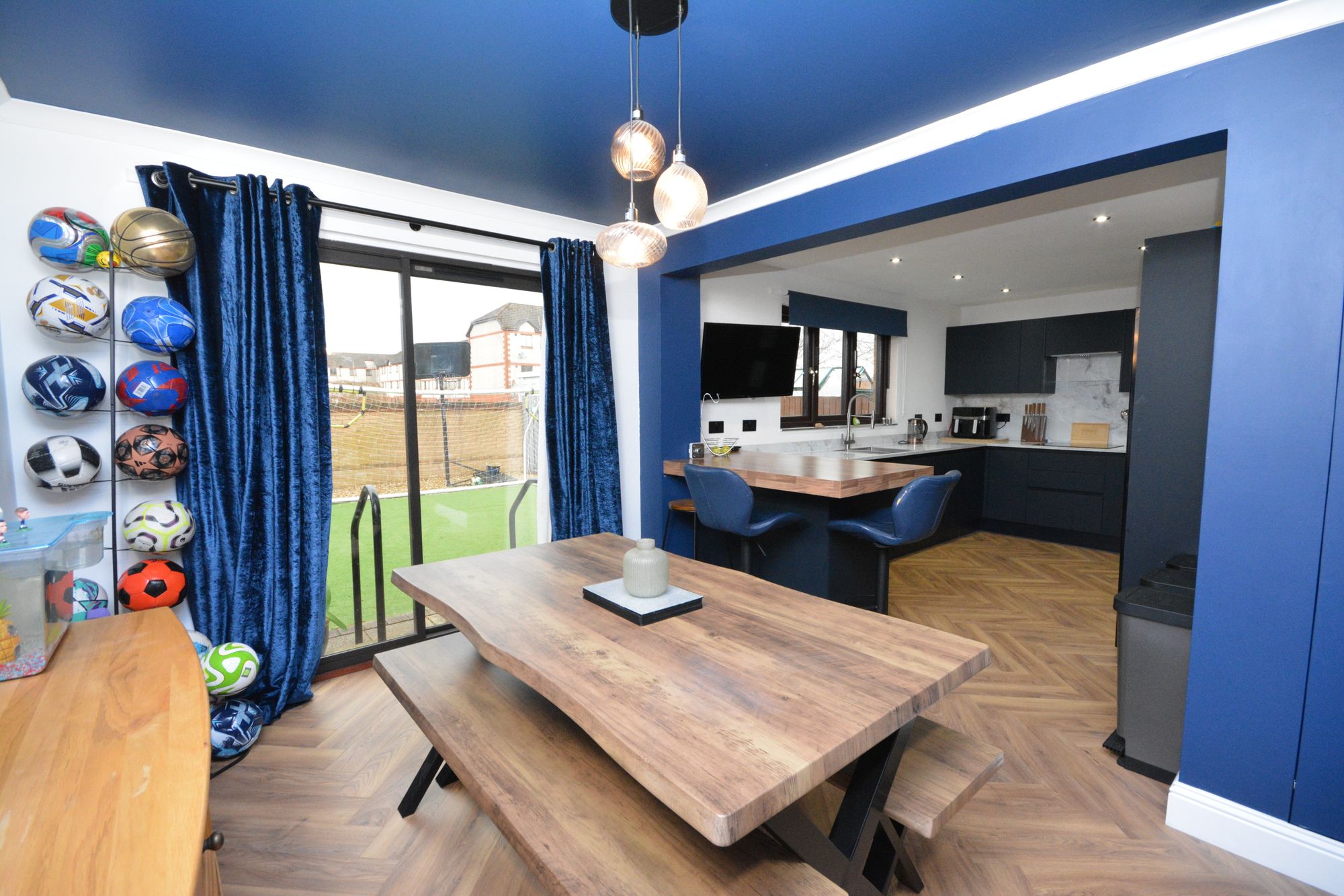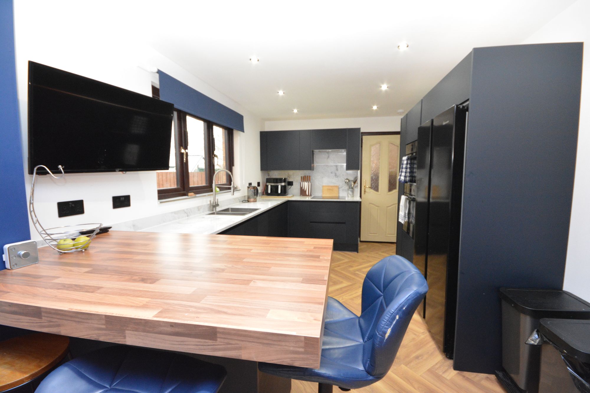 On the upper floor there are four well proportioned bedrooms two of which have fitted robes. The master bedroom has a stylish refitted en suite shower room complete with mains shower valve, chrome radiator and storage. The family bathroom has also been refitted complete with contemporary matt black fittings and mains shower valve. Practical features include EV car charger, gas central heating and double glazing. Offering excellent family accommodation immediate viewing is highly recommended.