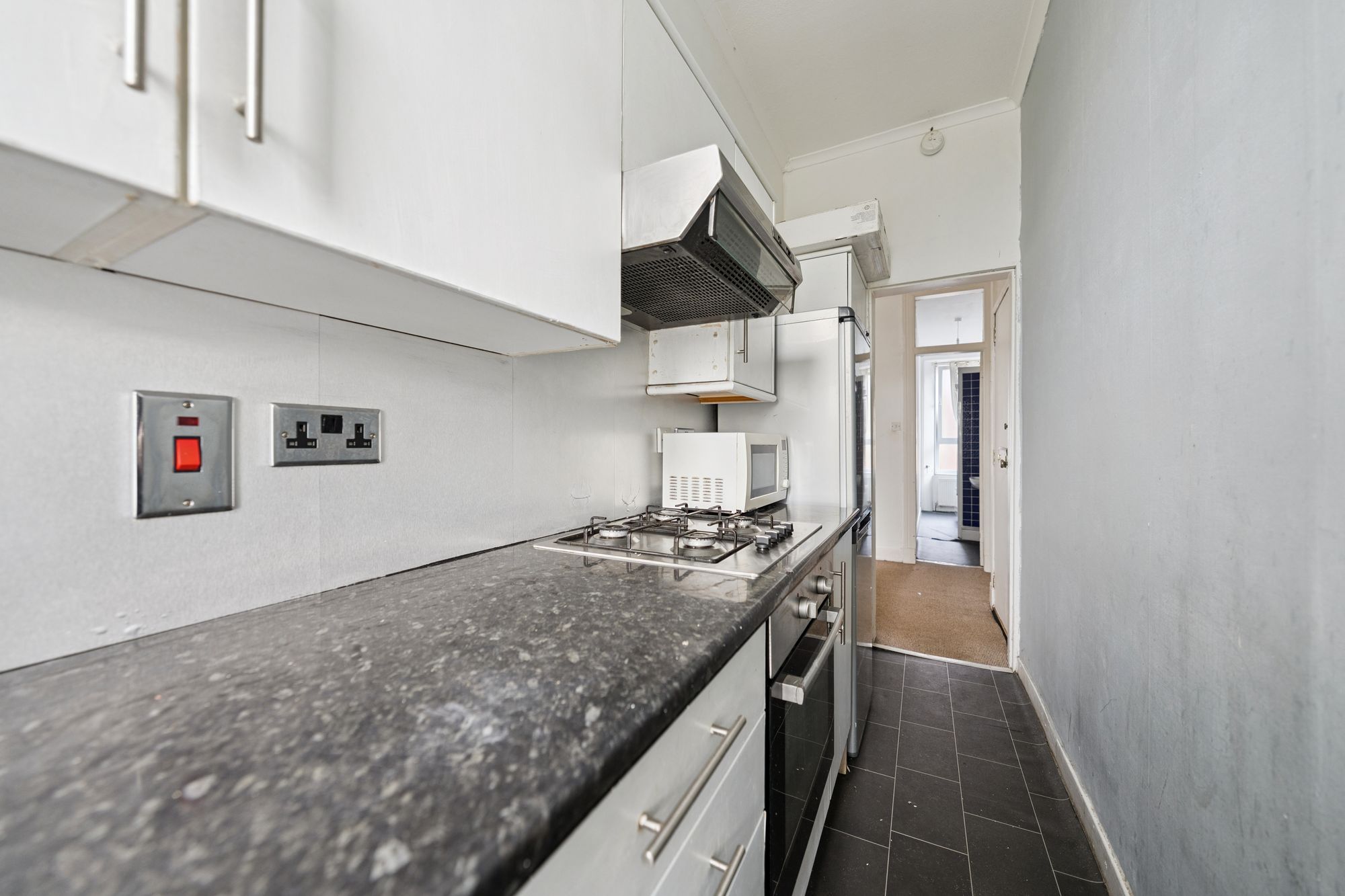 Accessed via a secure entry system into a well-maintained communal close, the flat opens into a welcoming reception hallway with useful storage. To the front, the bright and generously sized lounge, the galley-style kitchen is fitted with a range of base and wall-mounted units, offering good storage and workspace.