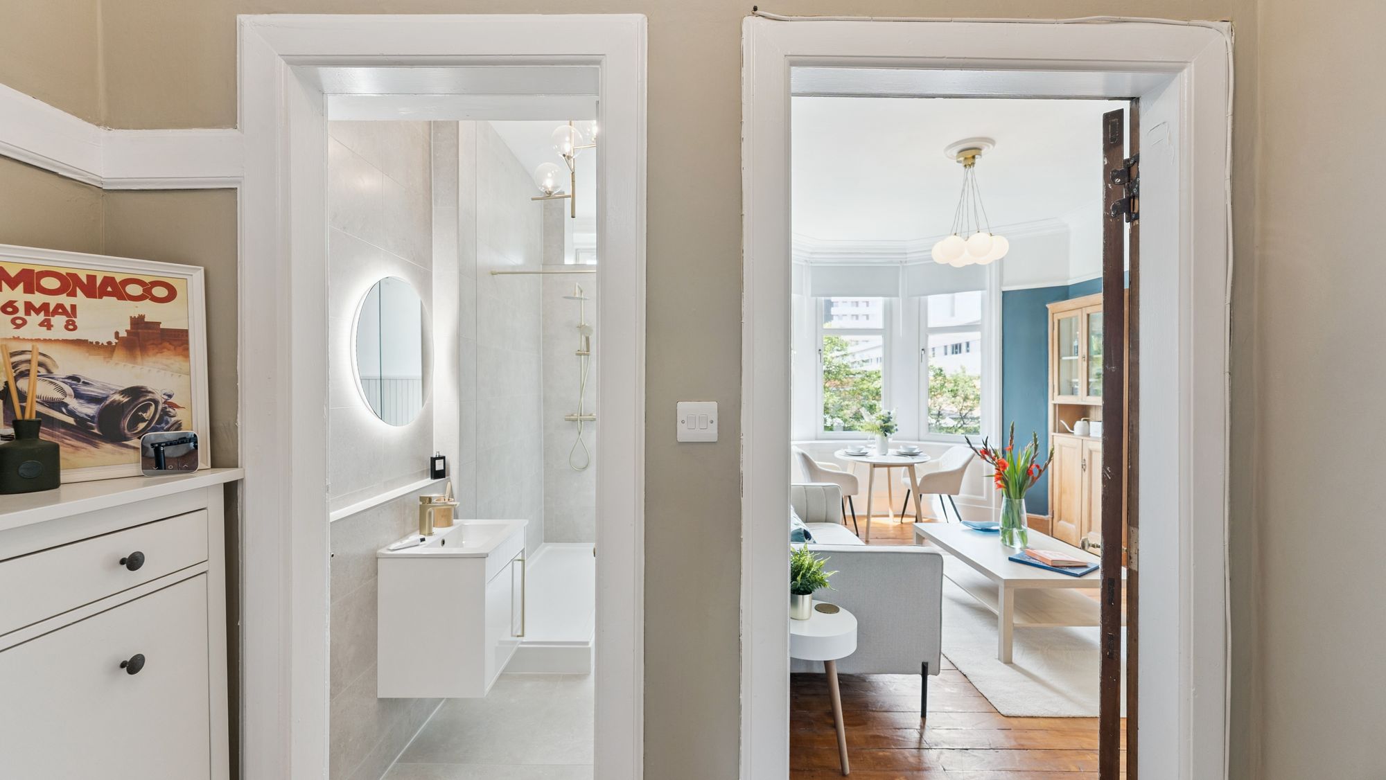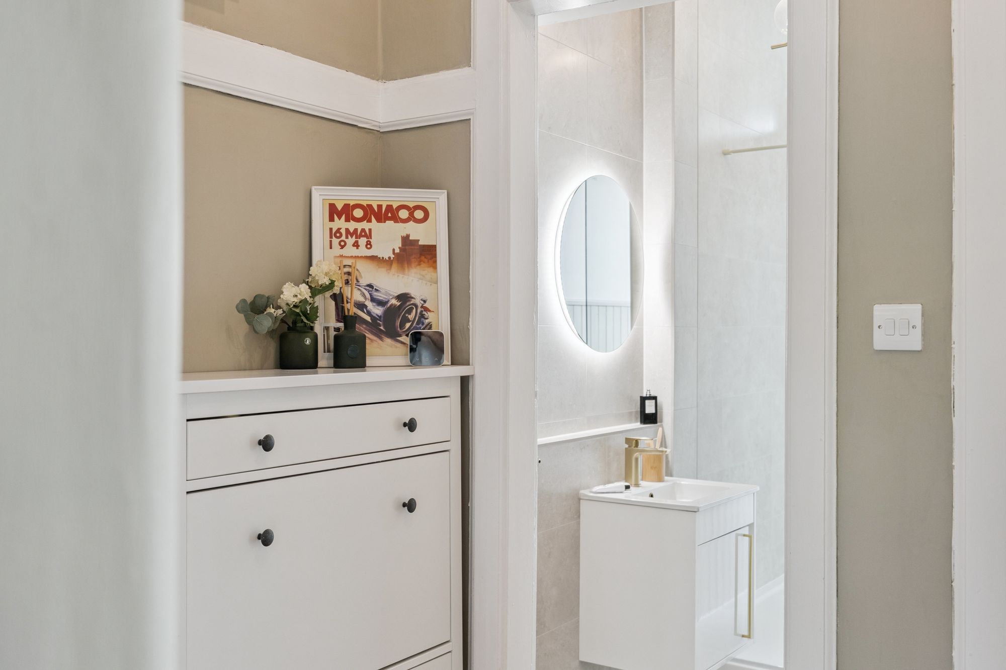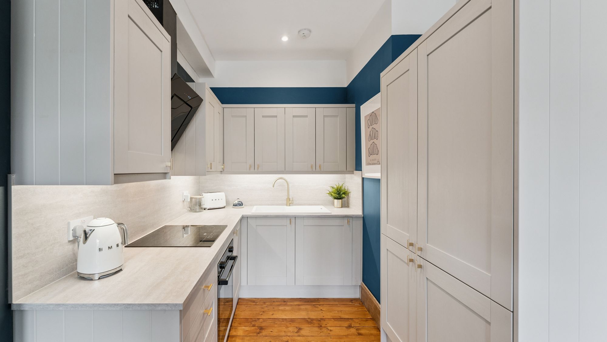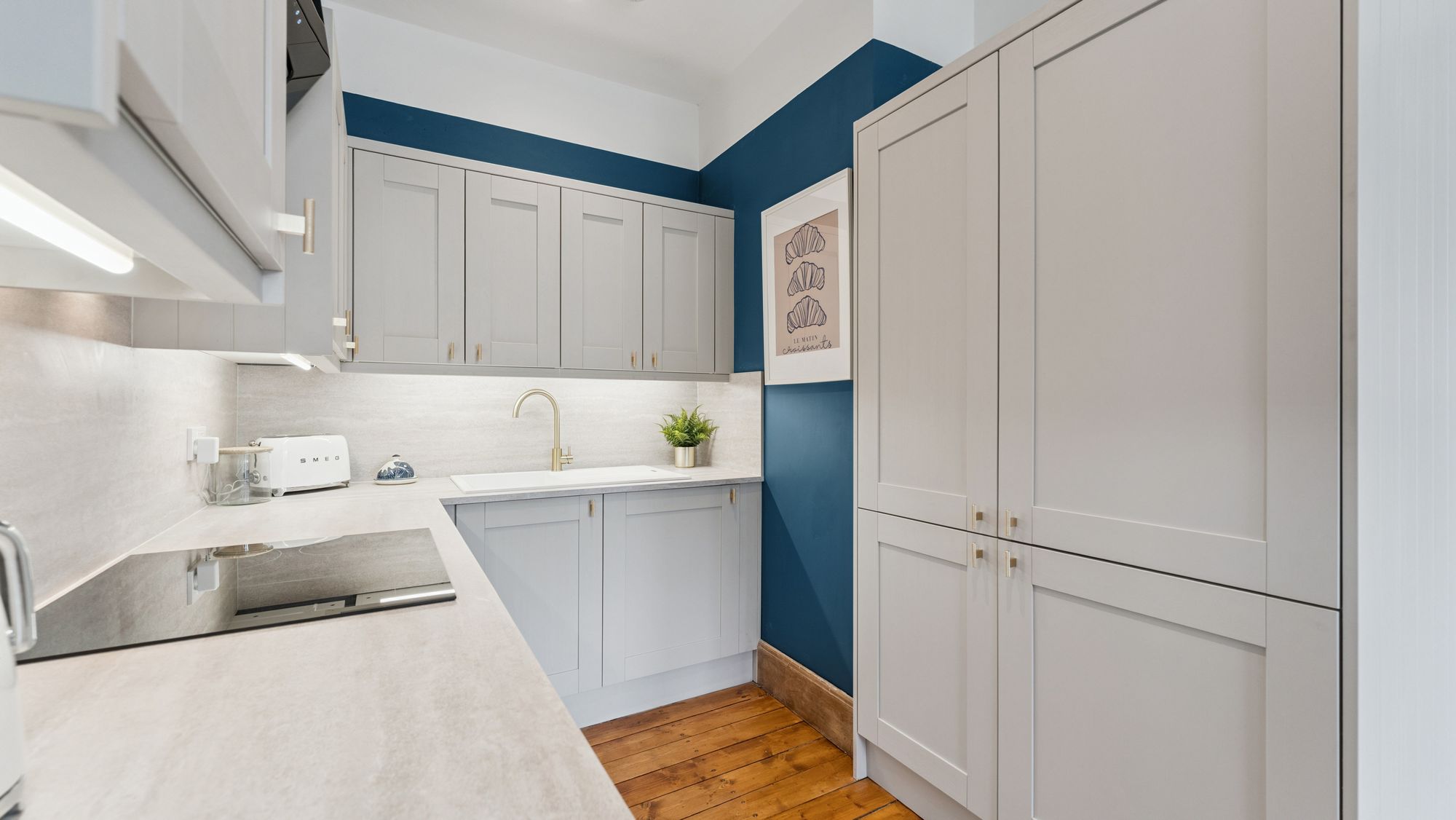 As shown in our video and photographs, the flat is tastefully decorated throughout in contrasting ‘Farrow and Ball’ colours, complemented by gas central heating, double glazing, traditional hardwood flooring, neutral carpeting and a fully equipped kitchen.