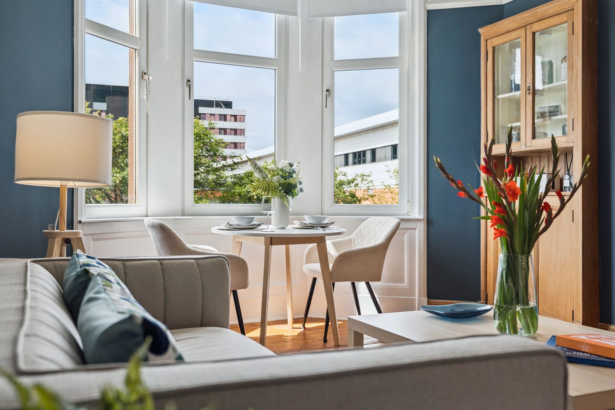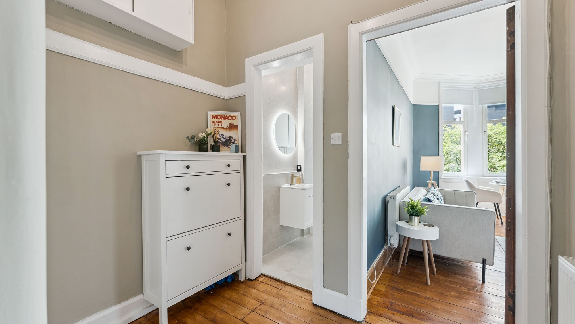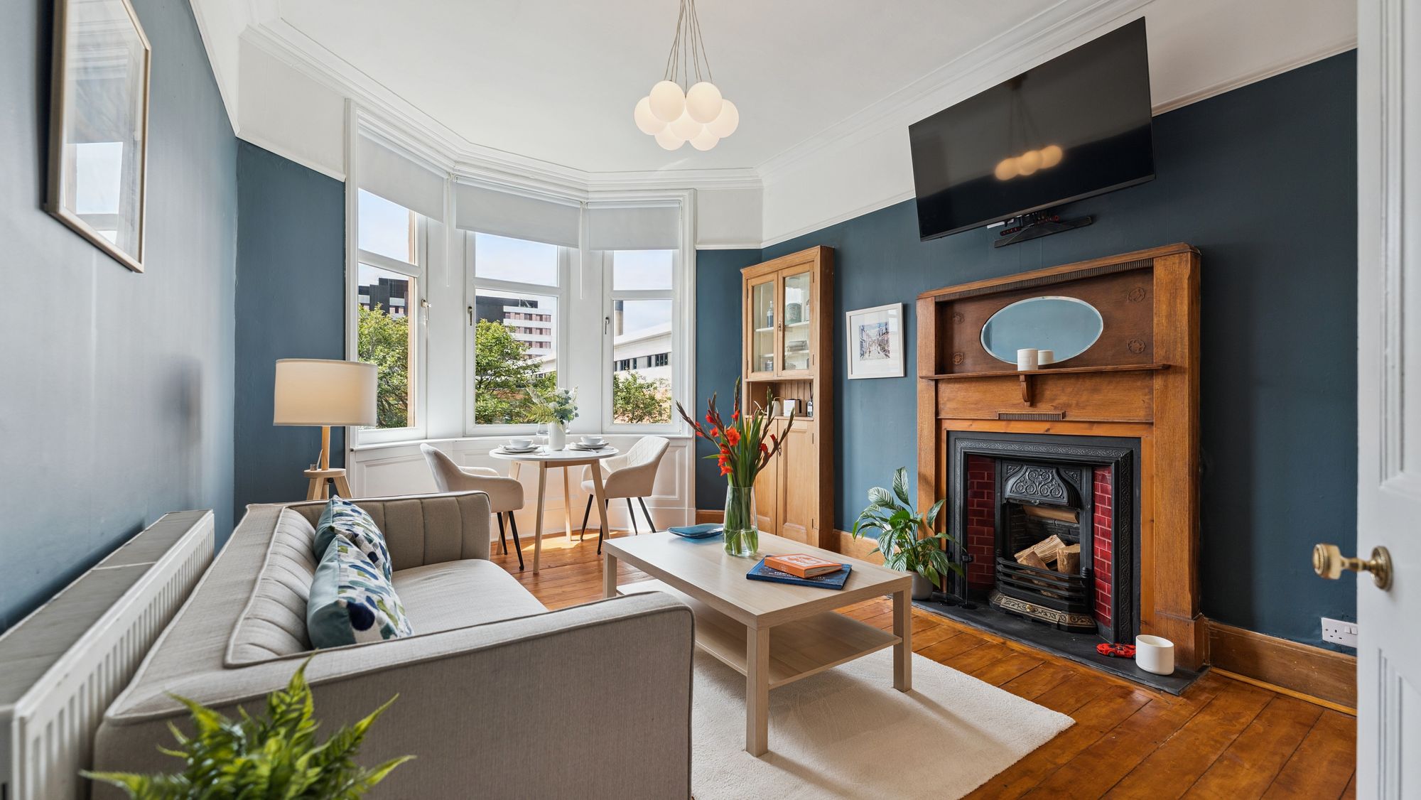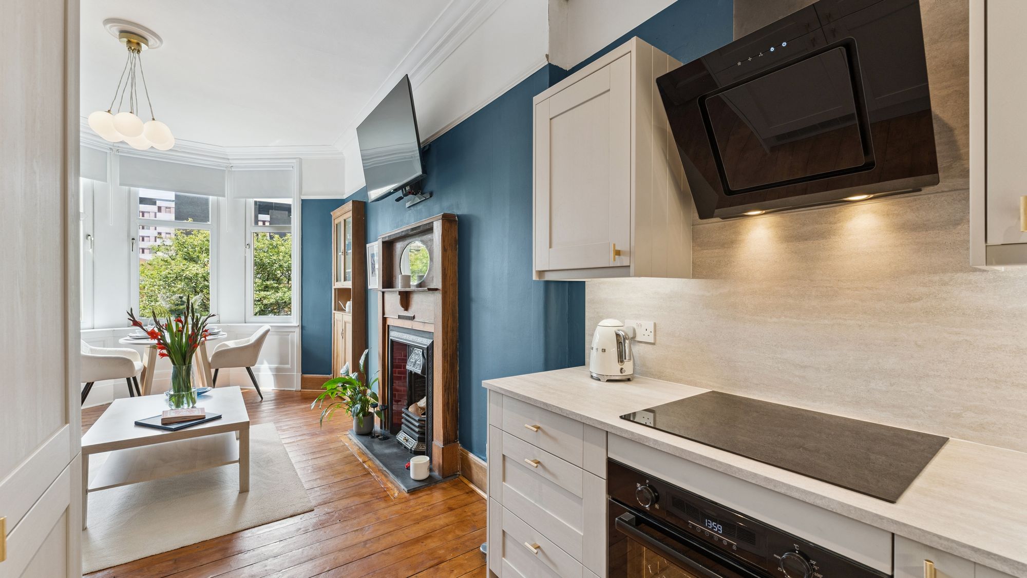 Located in a highly sought-after address in Yorkhill and within walking distance of the University of Glasgow, this exceptional one-bedroom, first-floor apartment has recently undergone a comprehensive refurbishment and upgrade, now offering a flawless and beautifully presented interior within a handsome red sandstone tenement.