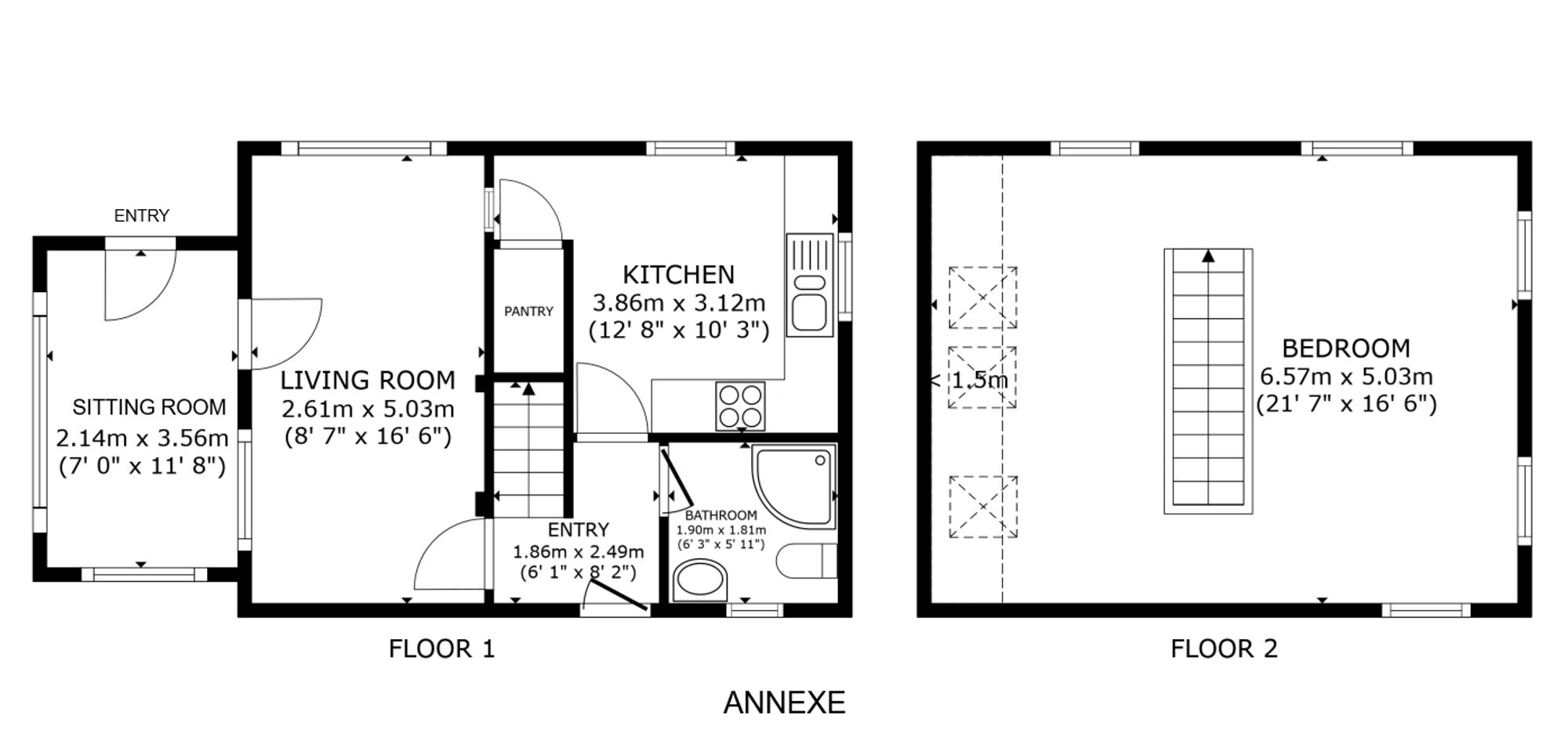 Adding significant value and versatility is the detached studio within the grounds. Fully self-contained and including an extra bedroom, the studio holds a valid holiday let licence, offering an excellent opportunity for short-term rental income, guest accommodation, or private workspace. It comprises a ground floor living room, kitchen, shower room, and sitting area, with a bedroom and additional seating space on the first floor. Tastefully designed and well-appointed, the studio has a strong track record of successful letting, with financial details available to serious buyers.