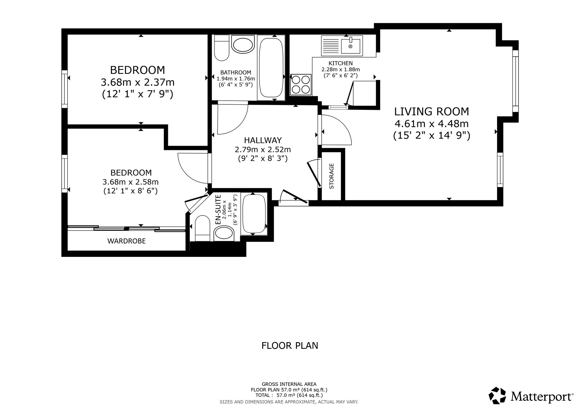 The attached photographs, floor plan and HD video tour will give an indication to the size and layout of the flat. However, in brief the accommodation extends to; entrance hallway with storage off, spacious living room with kitchen off. The kitchen itself has base and wall mounted units with tiled splash back and appliances. There are two double bedrooms, one of which has built in storage and an en-suite shower room. The accommodation is completed by a fully tiled bathroom with three piece suite and shower over the bath.