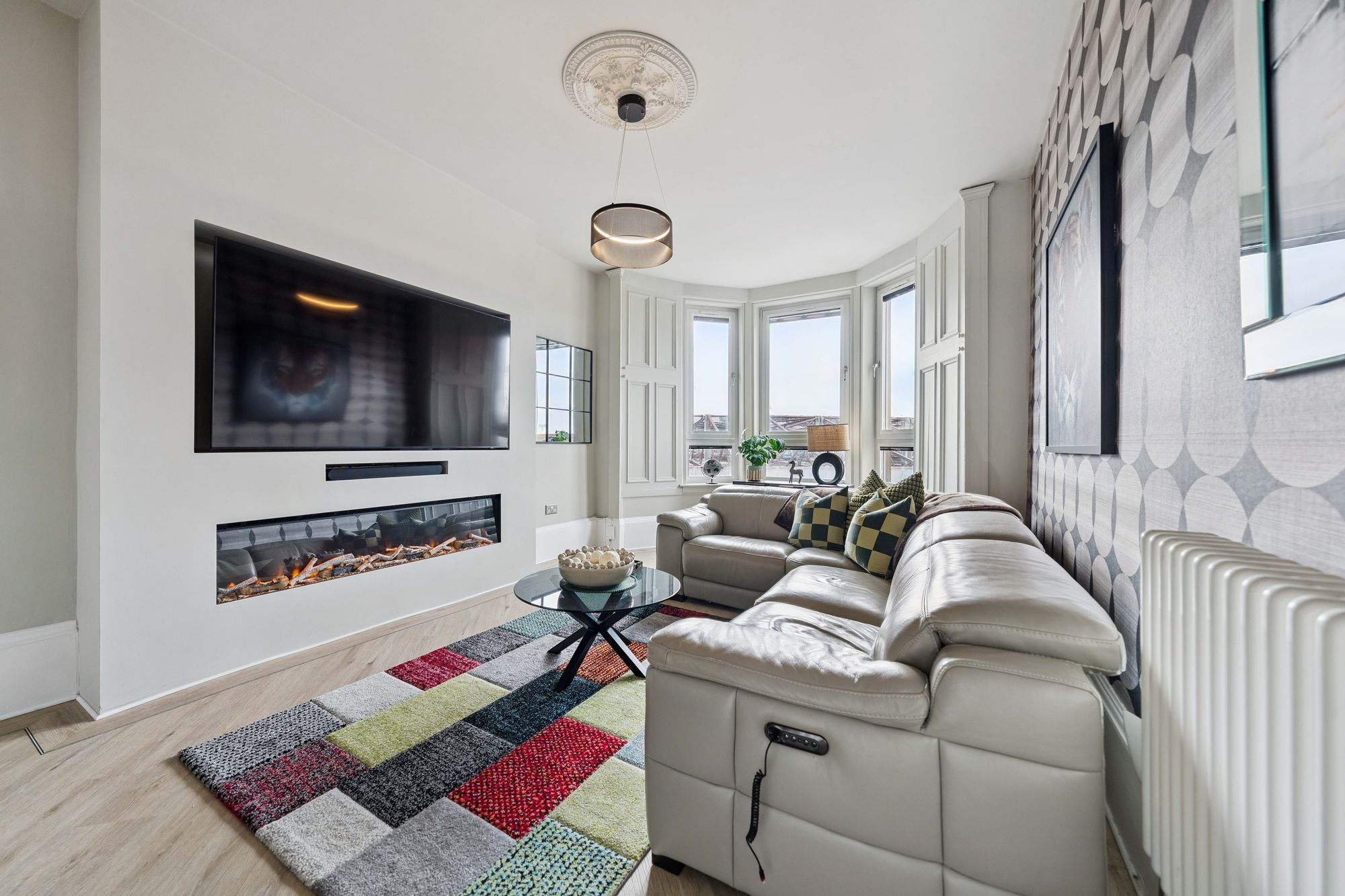 The apartment itself has been meticulously maintained and thoughtfully upgraded by the current owner, resulting in a home of genuine quality and style. Notable features include gas central heating with striking column radiators, double glazing, and secure door entry, all complementing the property’s elegant proportions and refined finish.