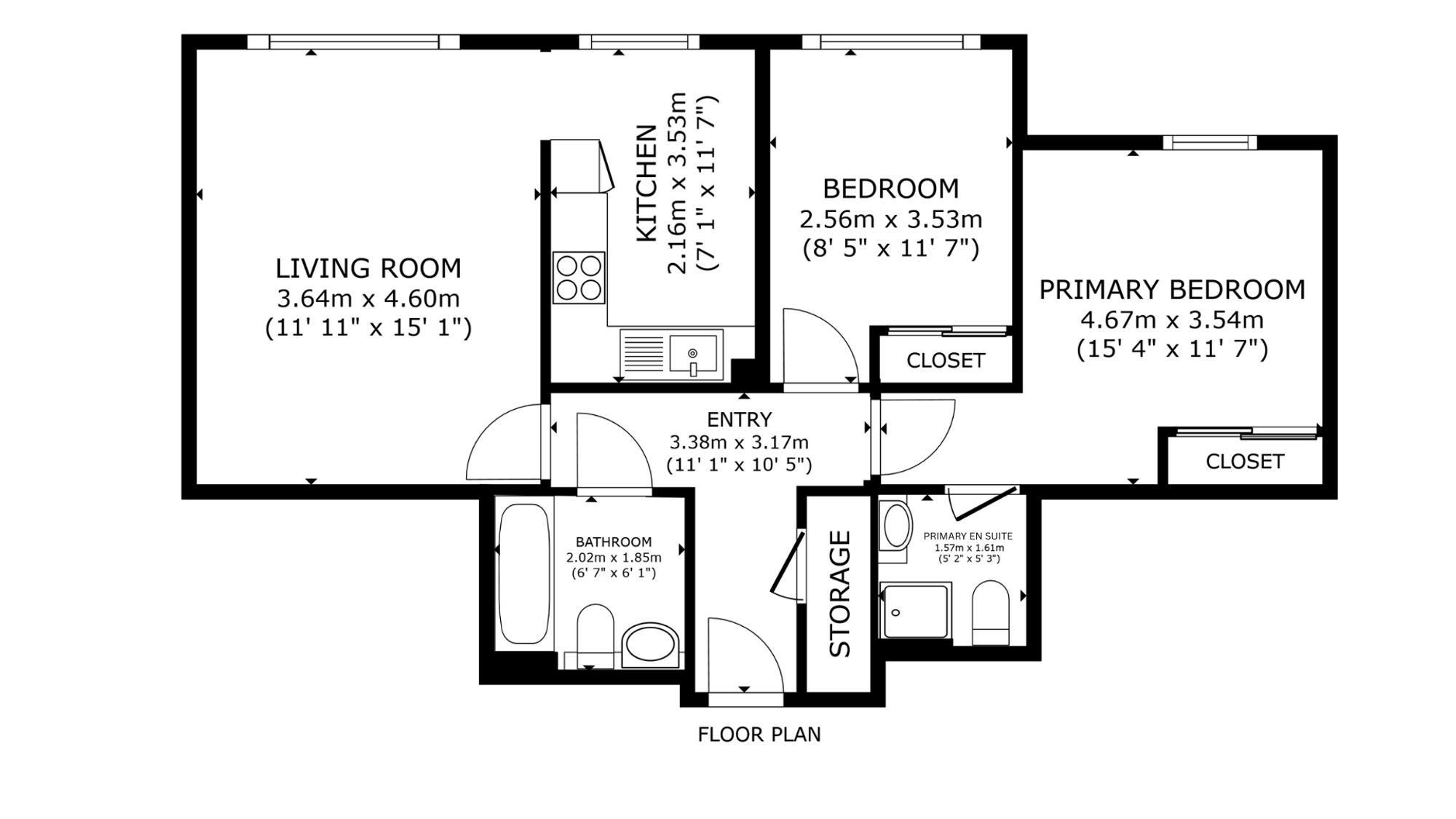 Two generously sized bedrooms which both benefit from built-in wardrobes, with the principal bedroom further enhanced by an en-suite shower room comprising a large shower cubicle, wash basin, and WC. The main bathroom includes a bath with a tap-operated shower, along with a wash basin and WC.