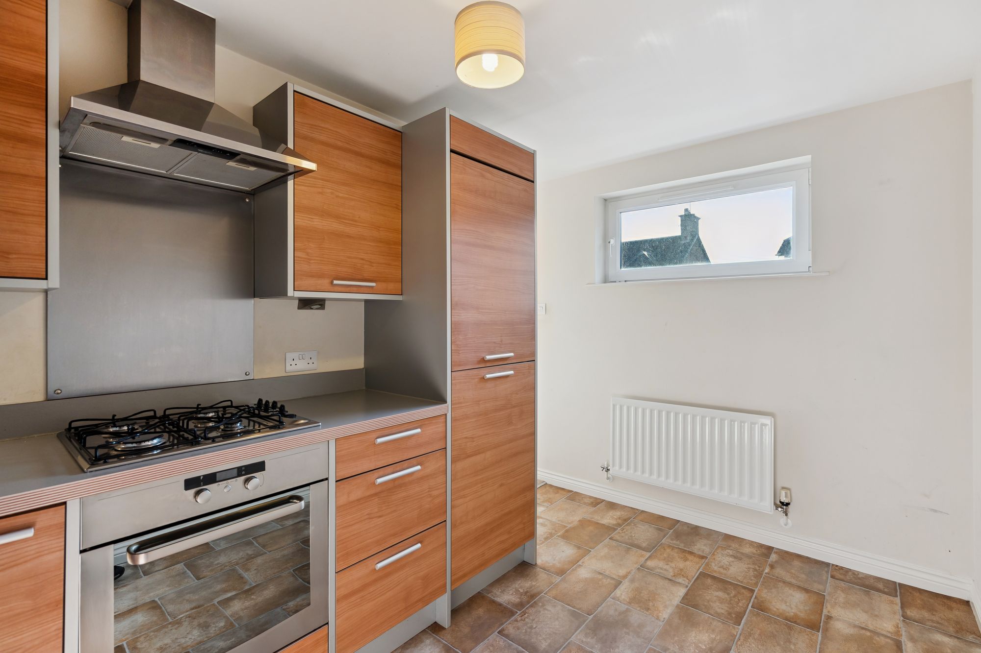 Accessed via a secure phone-entry system and shared stairwell, the flat opens into a welcoming hallway featuring three useful storage cupboards, one of which houses the boiler. The bright open-plan living area flows seamlessly into the kitchen, which offers a range of stylish floor and wall-mounted units. The kitchen is well equipped with a four-ring gas hob, extractor hood, electric oven and grill, fridge/freezer, and washing machine, making it perfectly suited for everyday living.