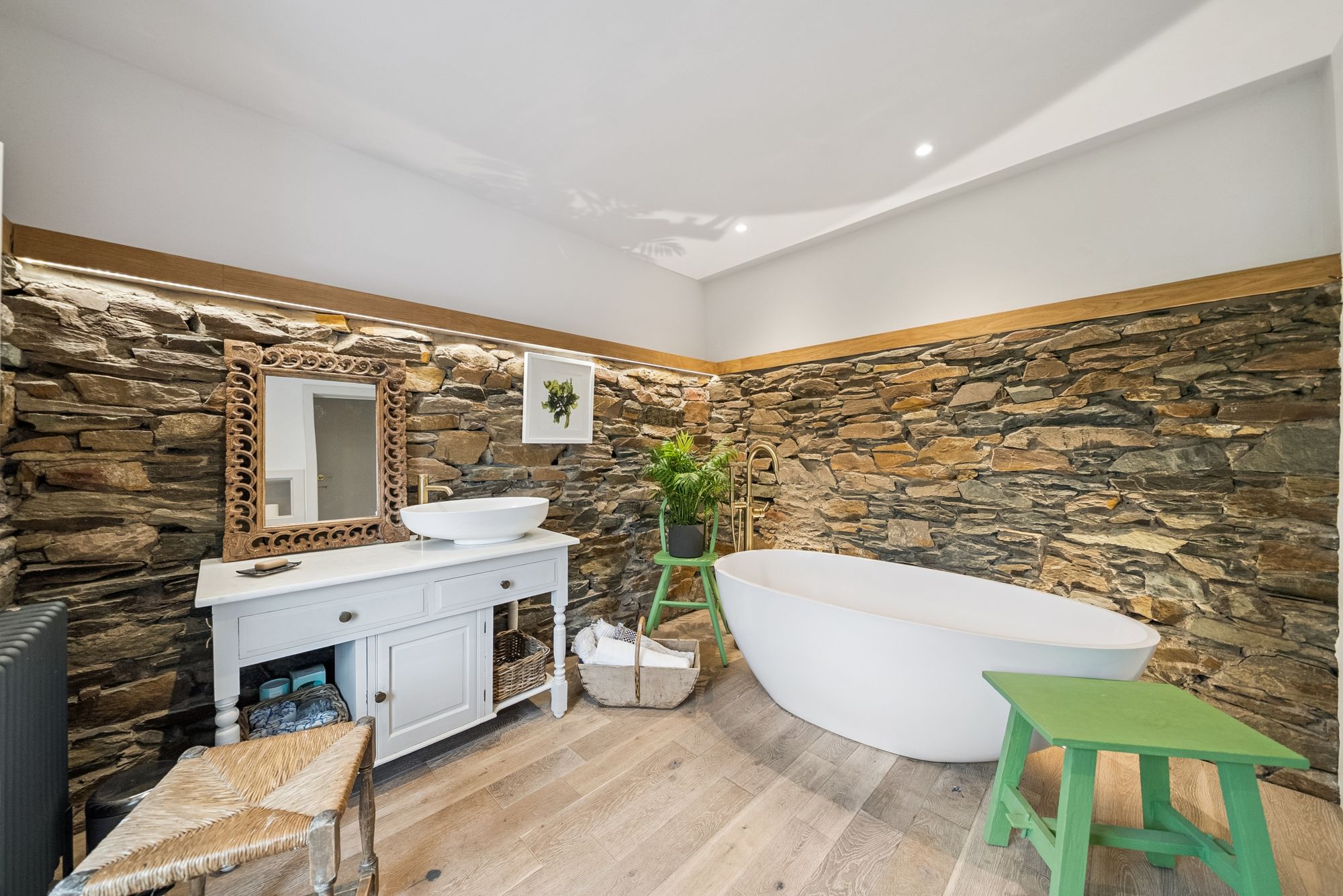 Modern comforts have been carefully integrated, including a fabulous multi-fuel stove, oil heating, upgraded insulation, shutters, and improved roof airflow - ensuring efficiency alongside character and, a comprehensive CSS security alarm system fitted. Practicality is equally well considered, with a dedicated boiler room and laundry area enhancing the home’s functionality. The property also benefits from 17 solar panels with the system generating an healthy additional income of approximately £1600 per year.