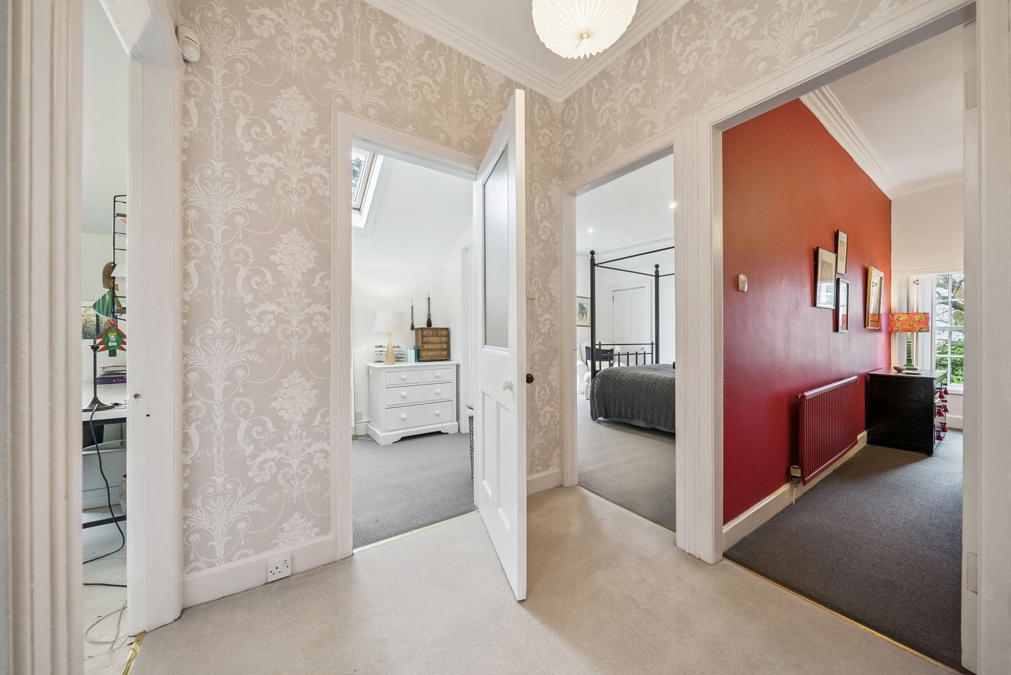 Upstairs, the sense of space continues with a superb family room opening out to the rear gardens with gorgeous north facing light flooding in - an ideal quiet retreat / study / rental space / studio space or indeed, a potential fifth bedroom with a shower room close by. Four further bedrooms are generously proportioned, with a separate dressing room offering additional luxury, with potential to be adapted into a formal ensuite if desired. Bedroom two also boasts a recently upgraded and simply fabulous en-suite bathroom with original stone detailing, stand alone bath and luxury fixtures.
