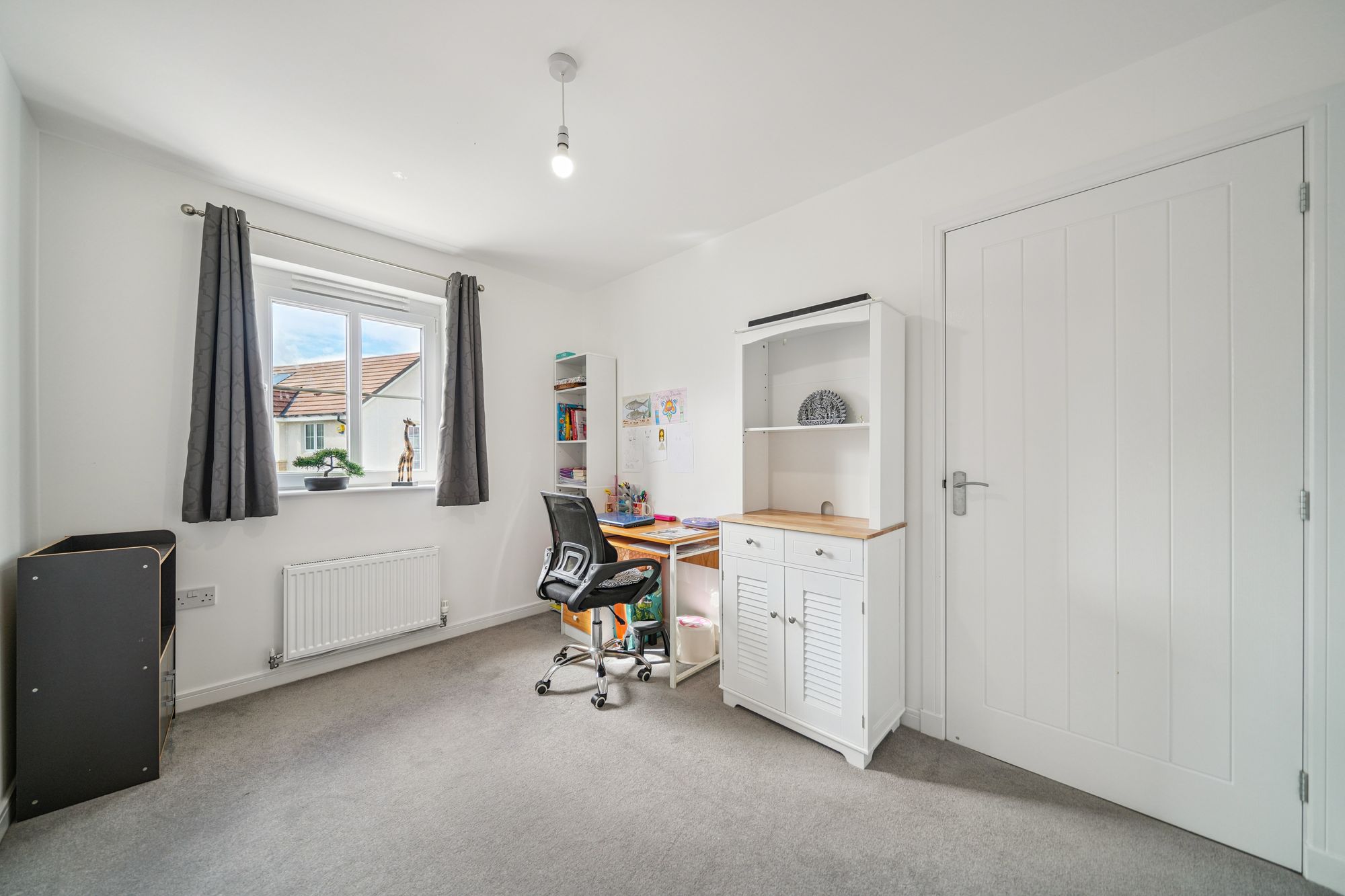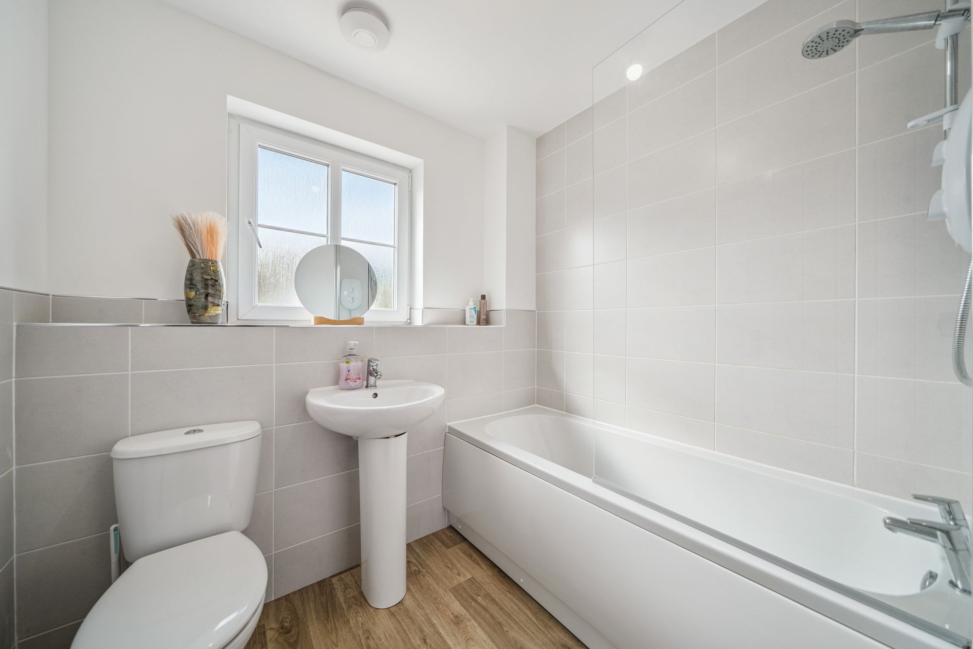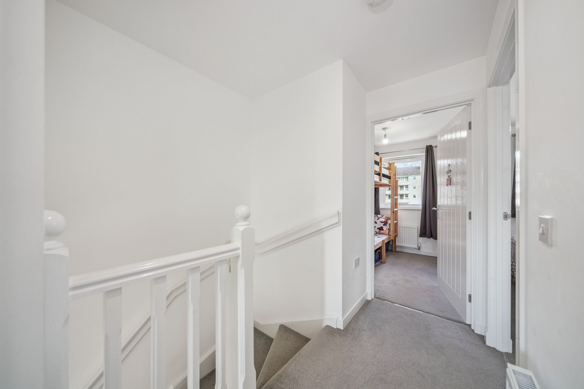 The upper level continues to impress, featuring a broad and naturally bright landing with additional storage. This level provides access to three well‑proportioned bedrooms, offering flexible accommodation suitable for family living, guest rooms or home working. The internal accommodation is completed by a stylish family bathroom, finished with a crisp white three‑piece suite and overhead shower.