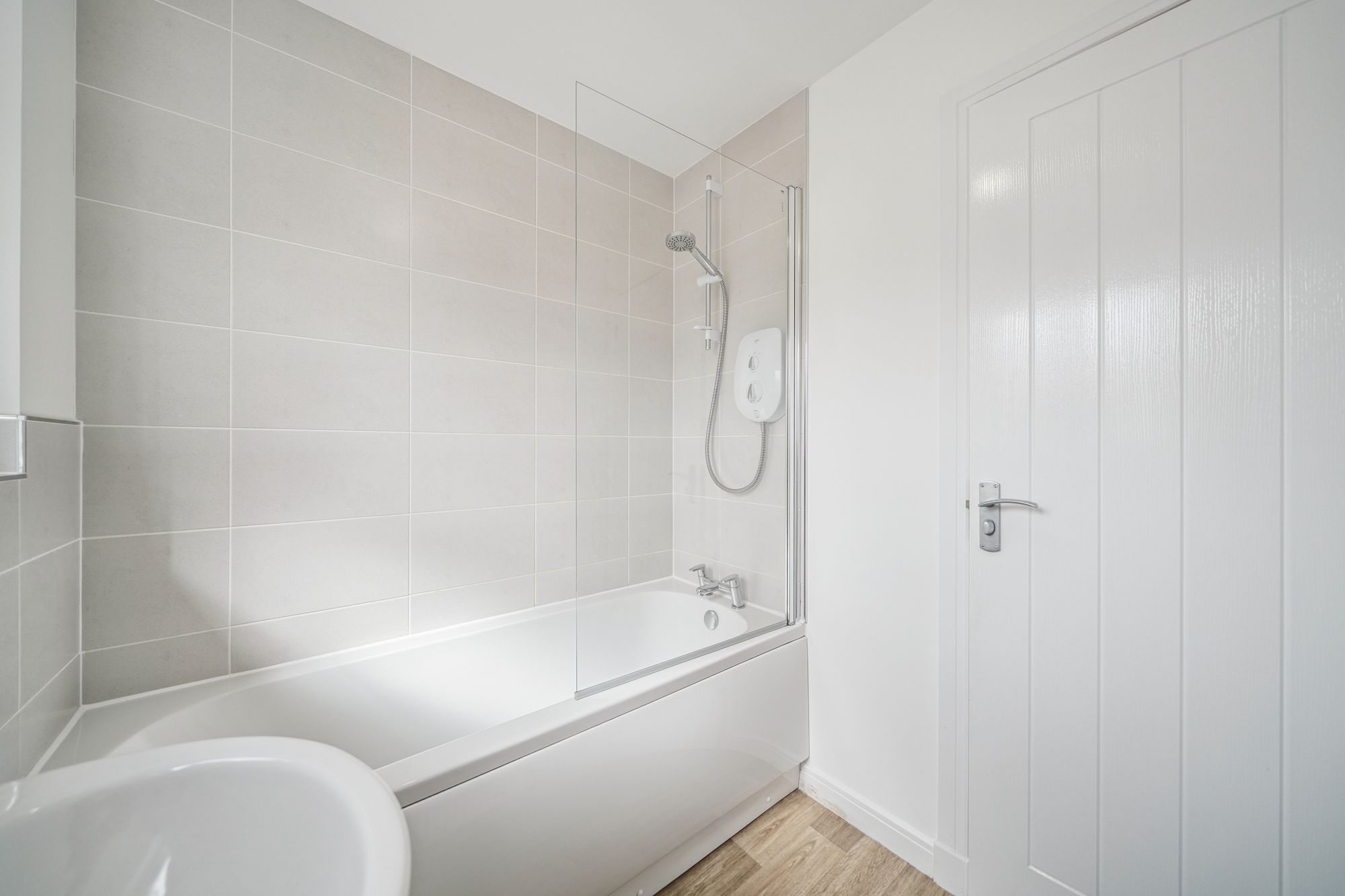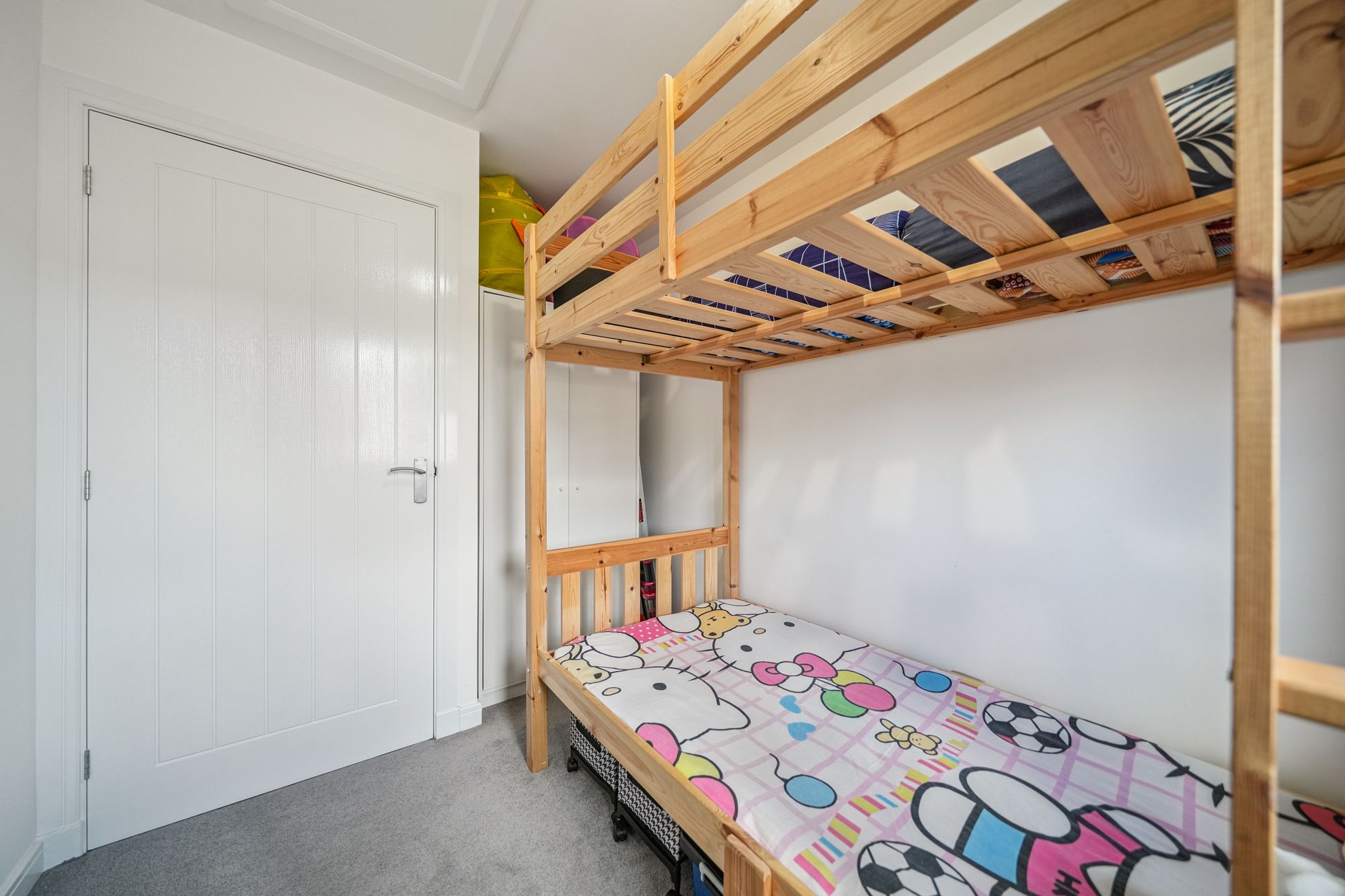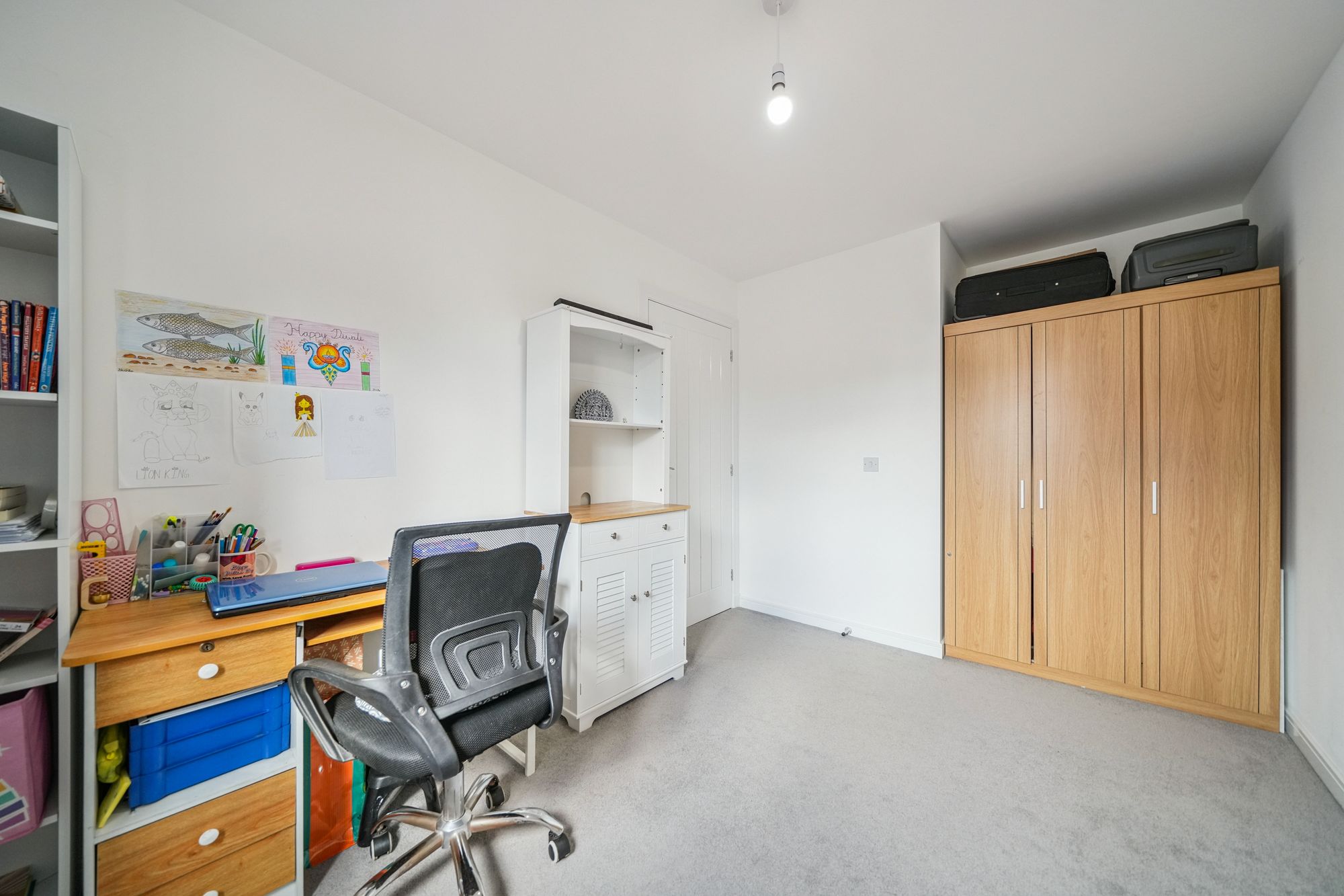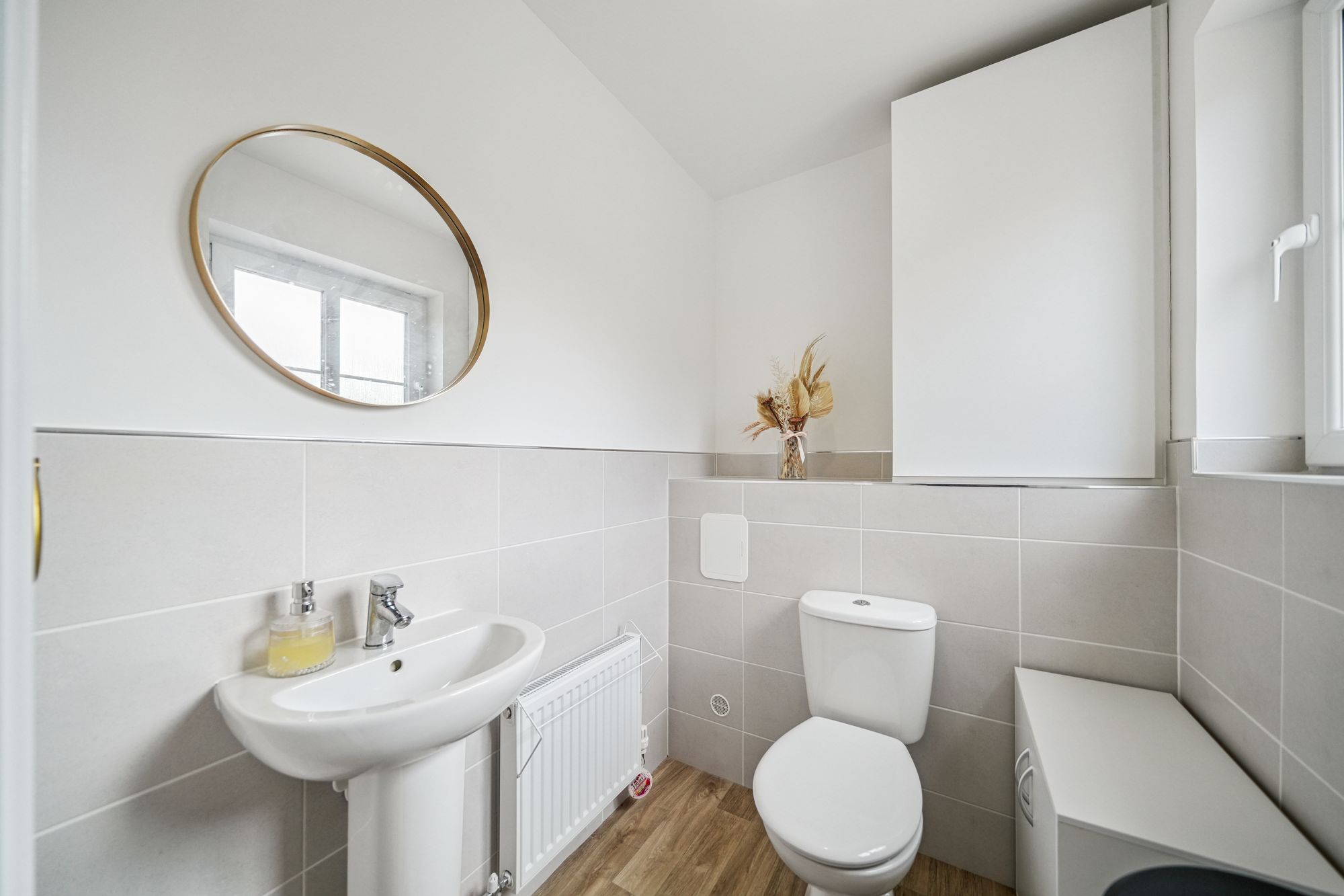 The upper level continues to impress, featuring a broad and naturally bright landing with additional storage. This level provides access to three well‑proportioned bedrooms, offering flexible accommodation suitable for family living, guest rooms or home working. The internal accommodation is completed by a stylish family bathroom, finished with a crisp white three‑piece suite and overhead shower.