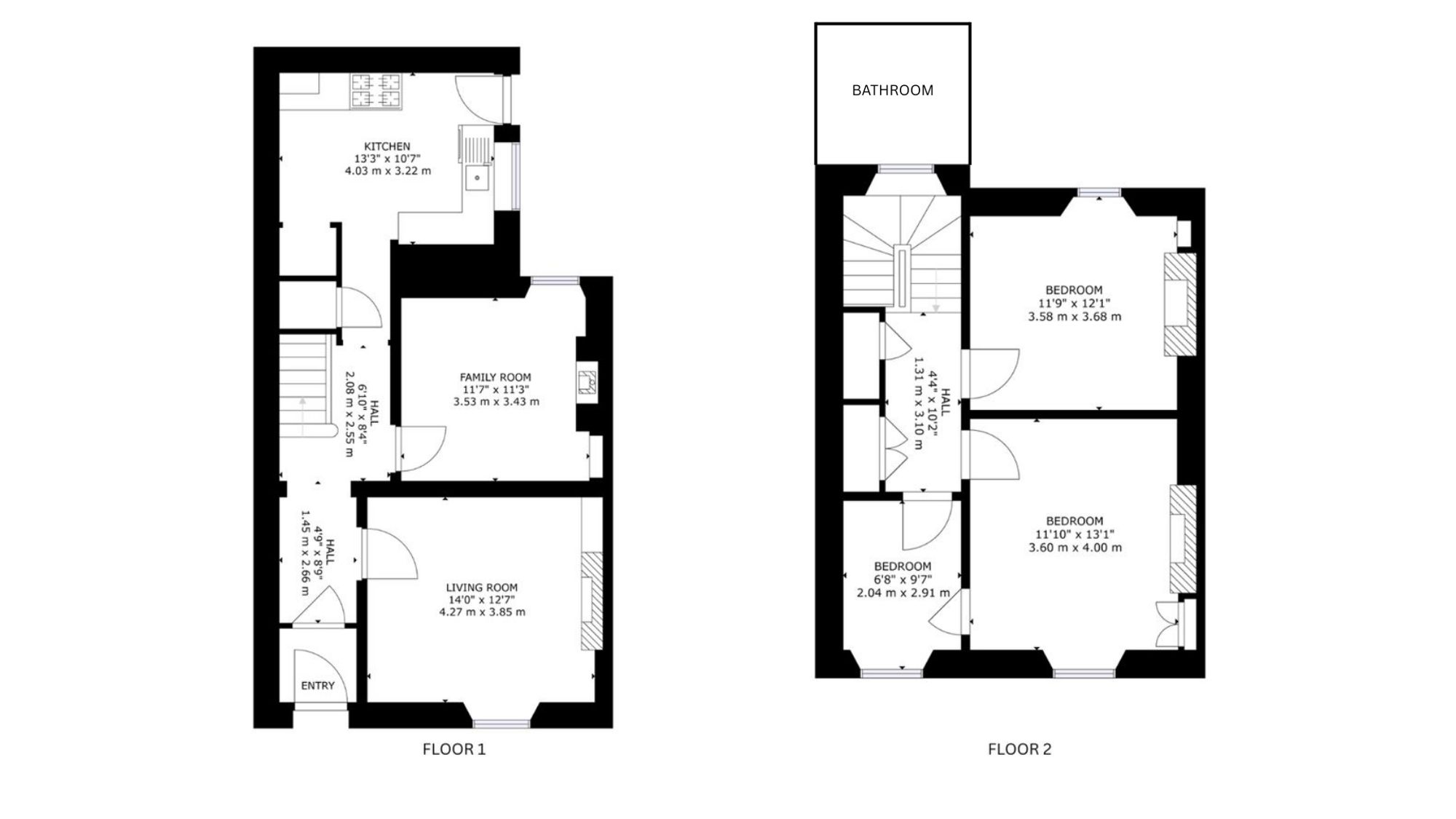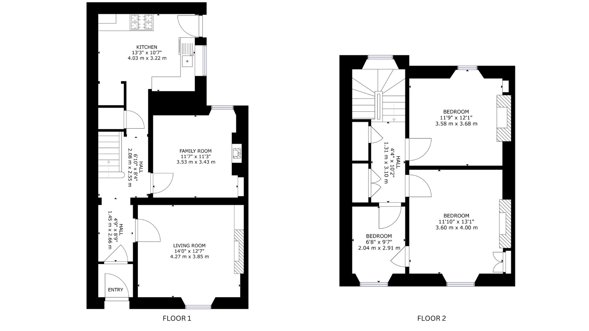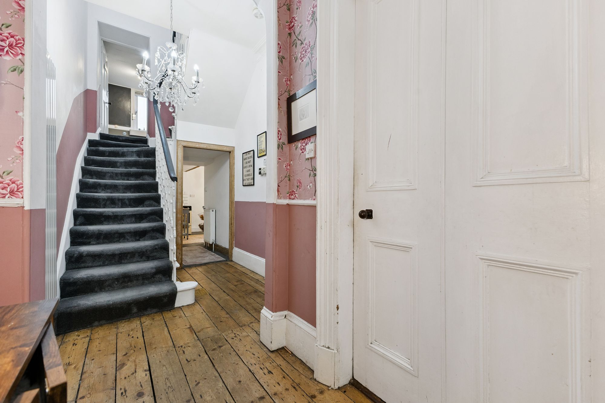 From the hallway, a half-landing leads to a family bathroom, positioned for convenience for both ground and first-floor use. The upper floor comprises three well-proportioned bedrooms, each offering flexible use as sleeping accommodation, guest rooms, or home office space.