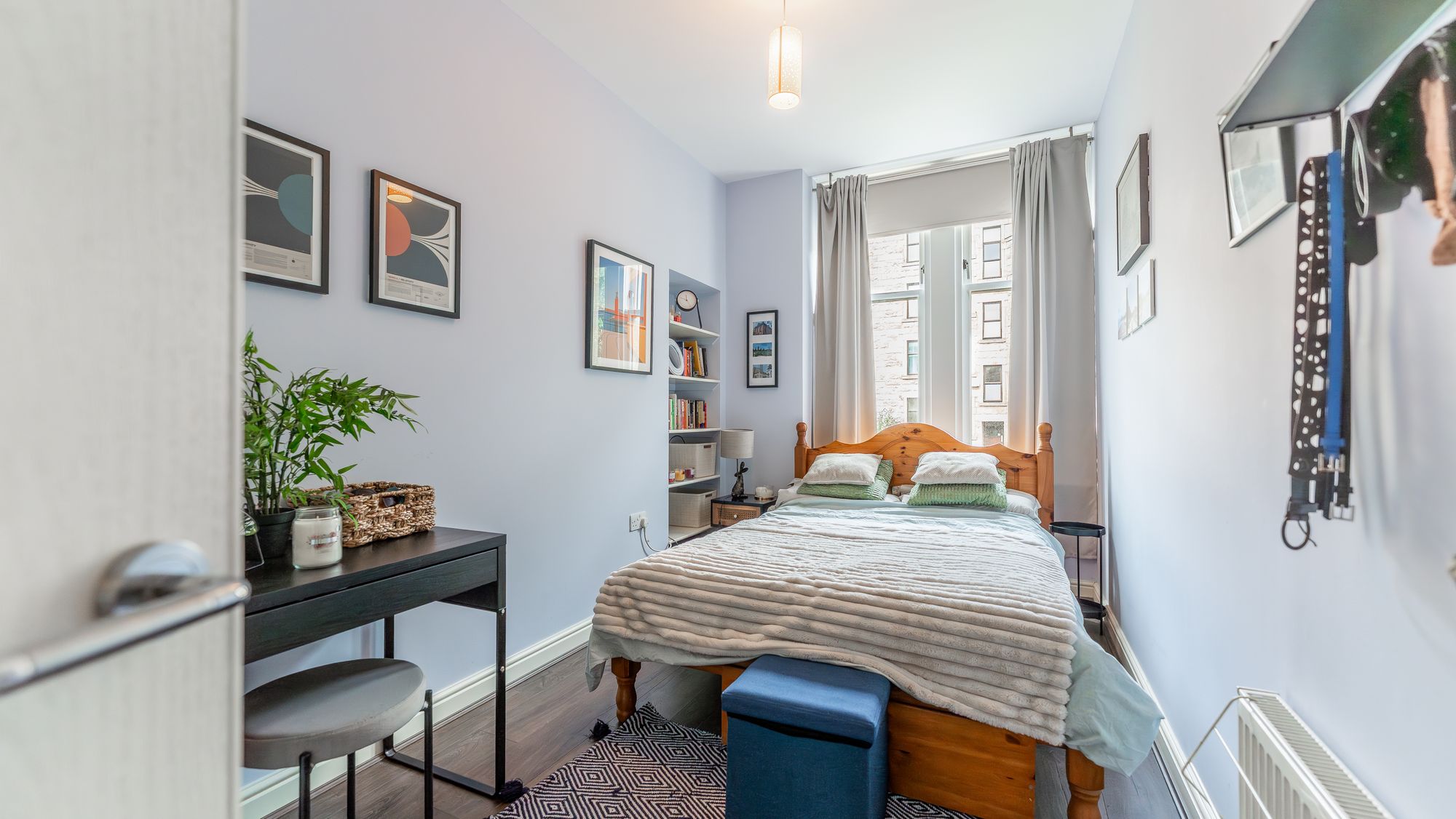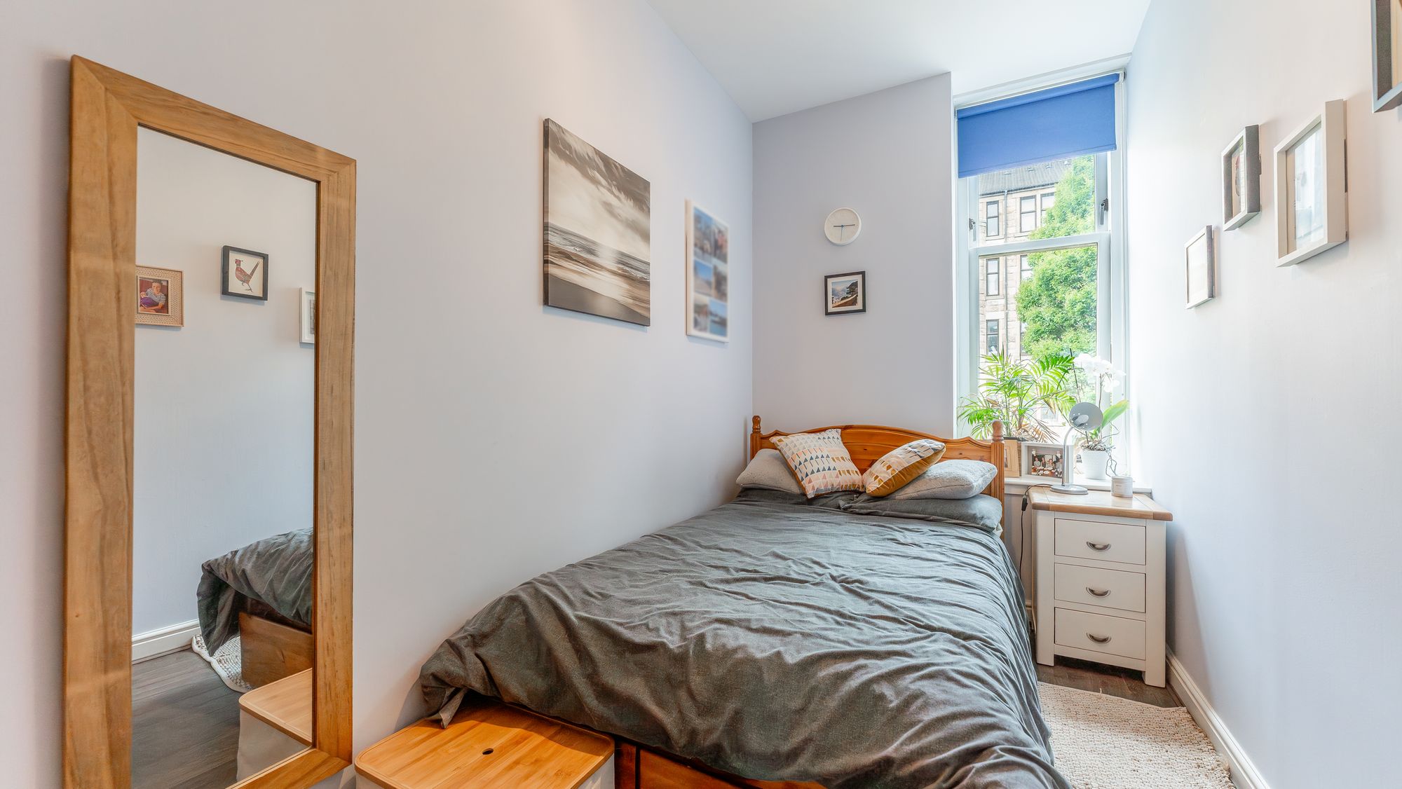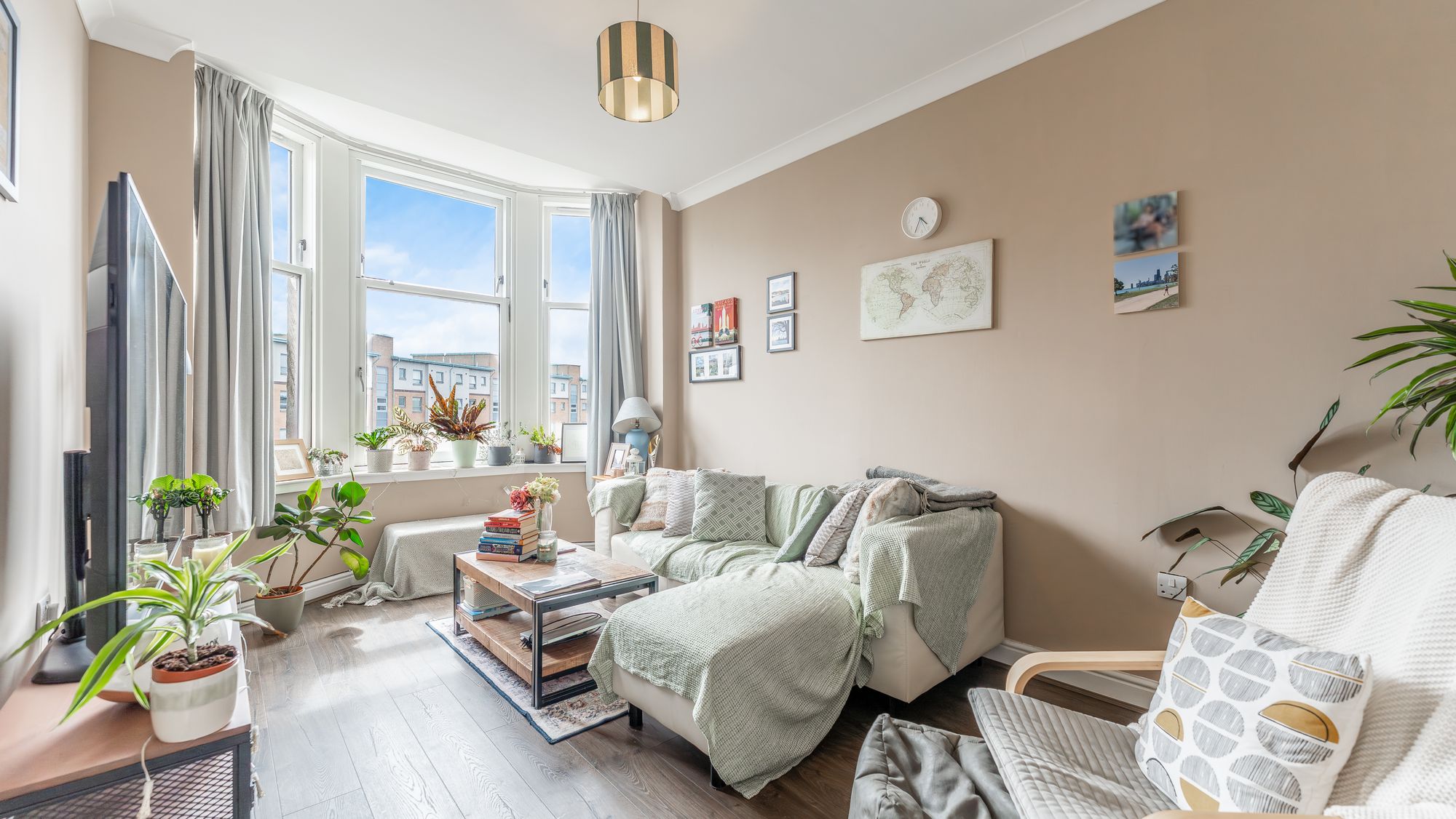 The building is accessed via a secure entry intercom system, and the communal areas are well maintained by the appointed factor. The attached photographs, floor plan and HD video tour will give an indication to the size and layout of the flat. However, in brief the accommodation extends to; welcoming entrance hallway with storage off, bay windowed living room, dining sized kitchen with base and wall mounted units, two rear facing bedrooms one of which has built in storage and the accommodation is completed by a main bathroom with three piece suite and shower over the bath.