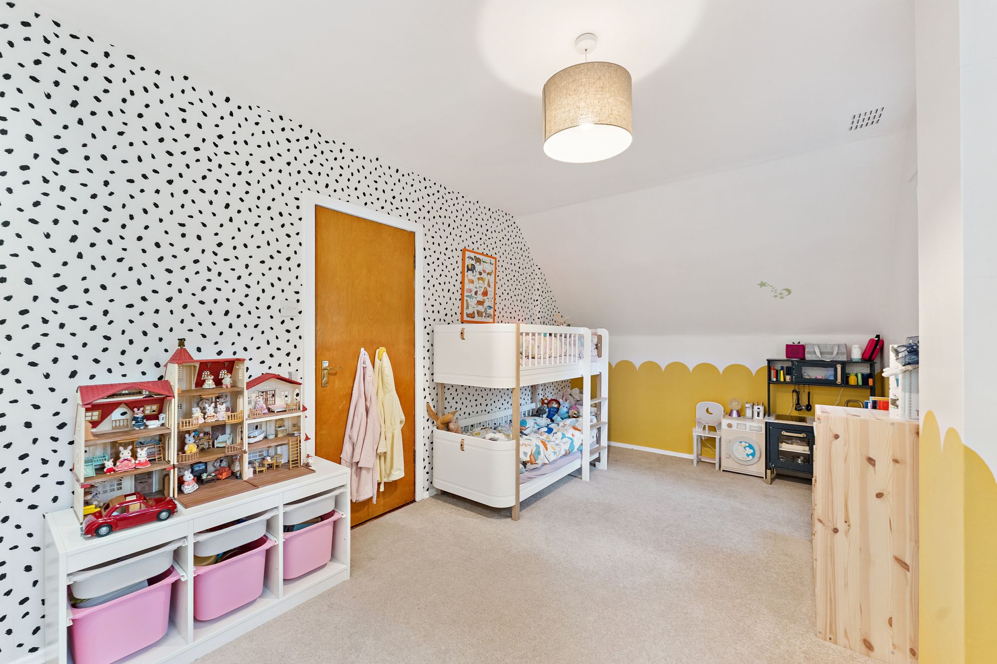A staircase leads to the upper level, where a family bathroom with an over-bath shower is located on the mid-landing. The top floor features a well-proportioned principal bedroom with fitted wardrobes and attractive views, along with two further good-sized bedrooms, the second also benefiting from fitted wardrobes. The home is further enhanced by gas central heating, double glazing, and a single garage. Additional storage is provided by an insulated and boarded loft and eaves area, accessible via a folding wooden loft stair.