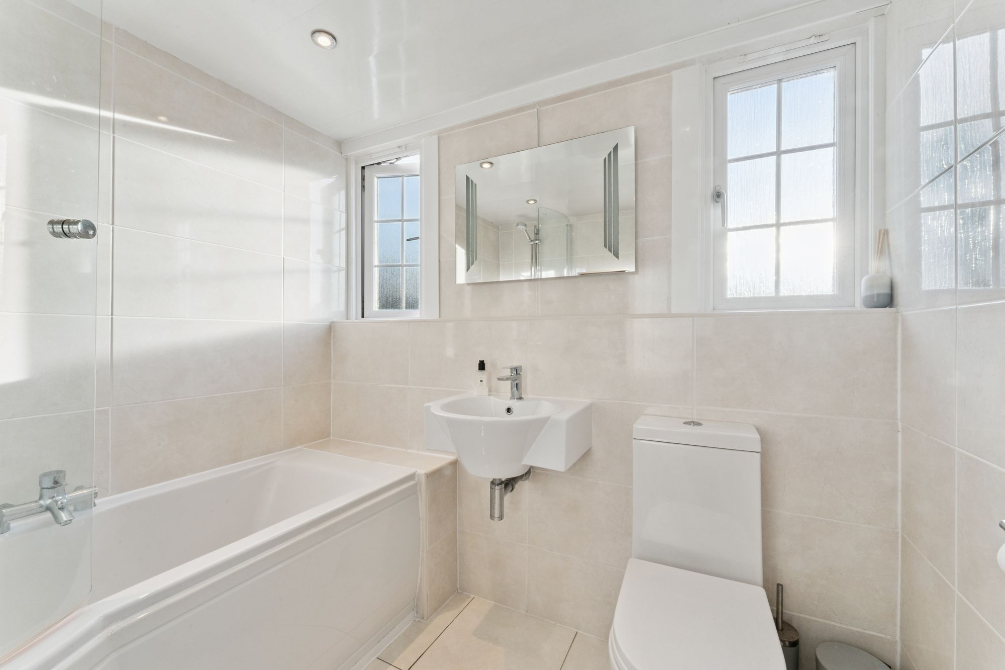 The contemporary kitchen is fitted with shaker-style cabinets complemented by granite worktops and includes integrated appliances such as an electric cooker, a NEFF dishwasher, a Bosch washing machine, and a fridge. A back door provides convenient access to the side of the property. Also on the ground floor is a fourth bedroom currently used as a dining room, offering views over the rear garden, along with a downstairs WC with useful storage.