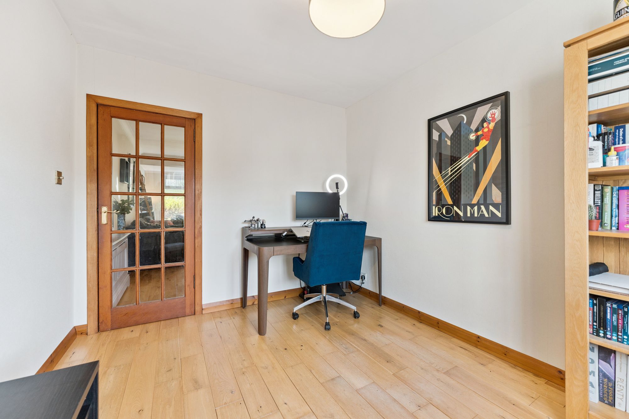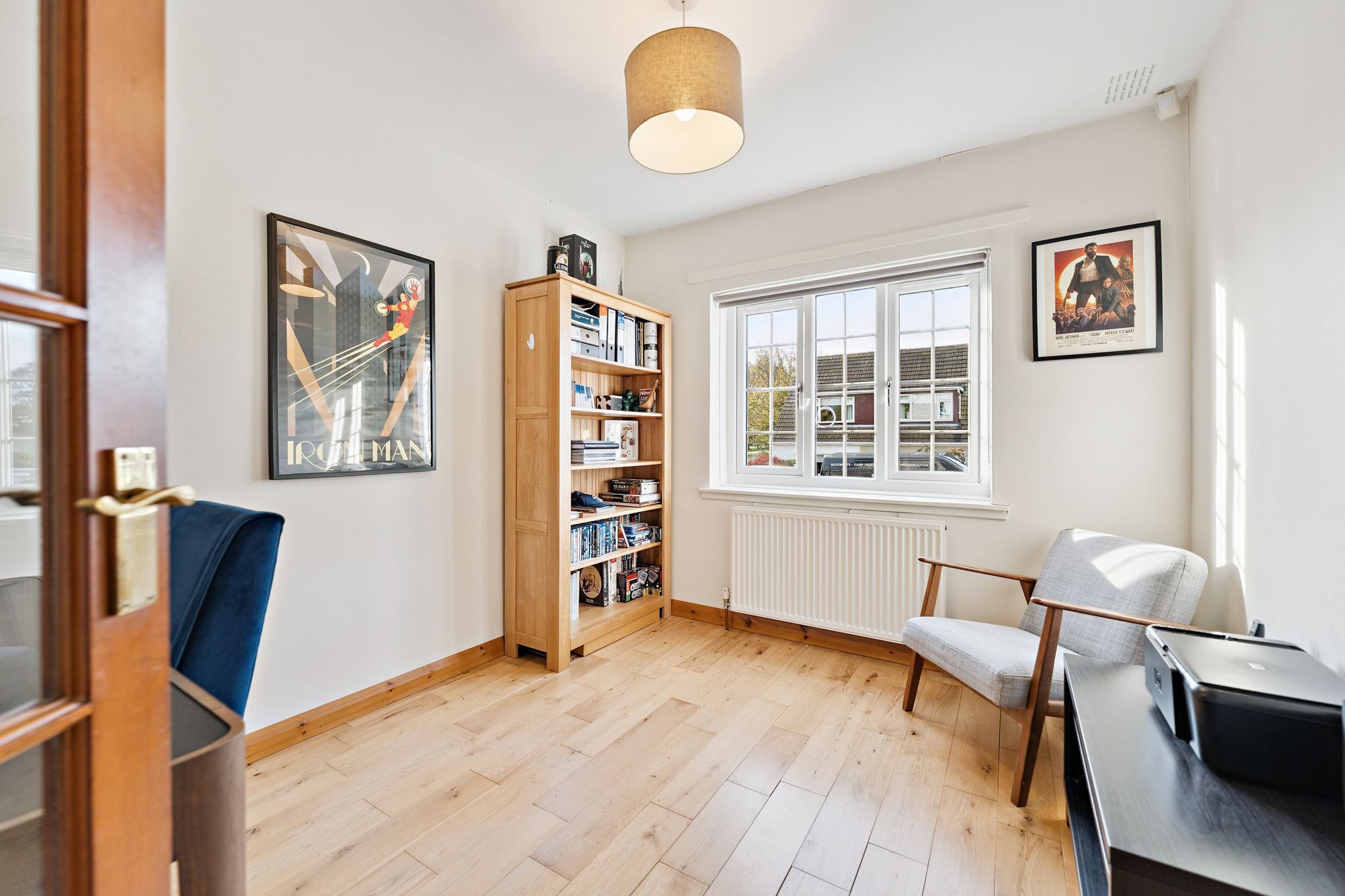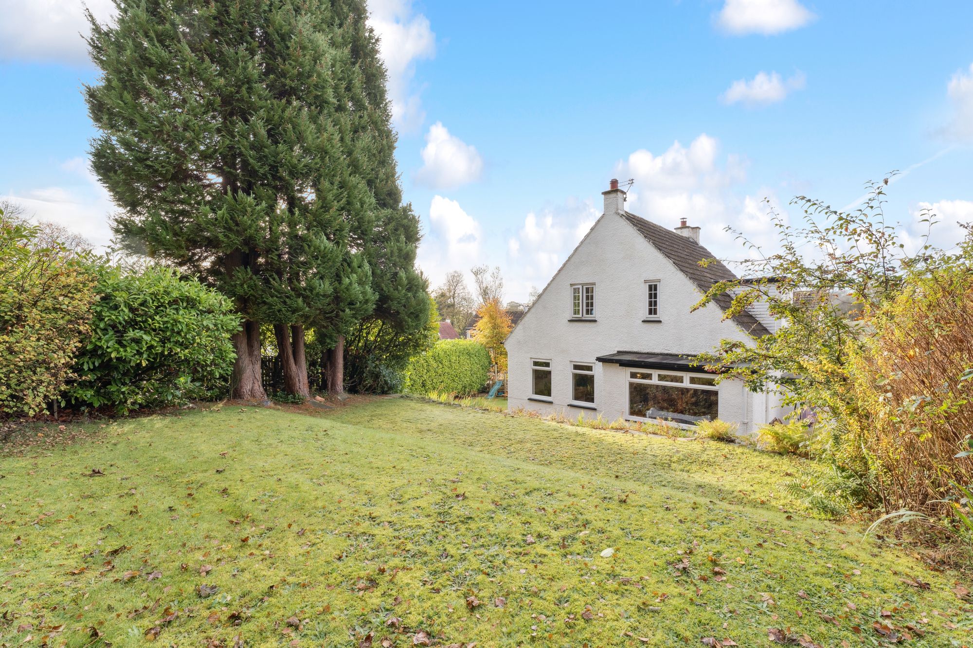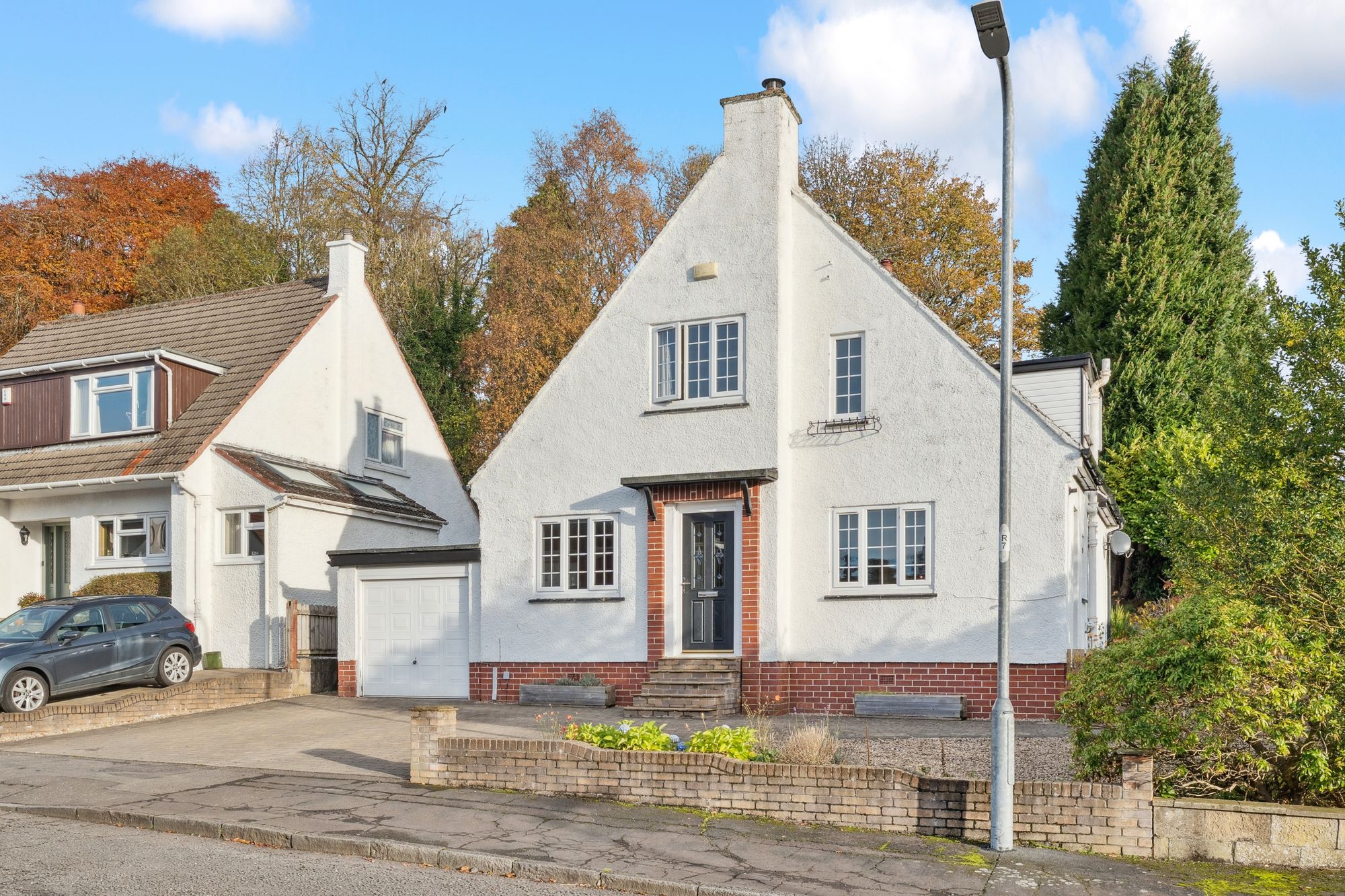 This attractive detached family villa occupies a desirable corner plot within the popular Clober estate in Milngavie and falls within the catchment area for Milngavie Primary School and the highly regarded Douglas Academy. The accommodation is arranged over two levels and begins with a welcoming front porch leading into a bright and spacious reception hallway. From here, there is access to a lovely lounge featuring a gas fire with an elegant fireplace, a large rear window overlooking the garden, and a door providing direct access to the rear patio. The lounge also connects to a front-facing study, ideal for home working.