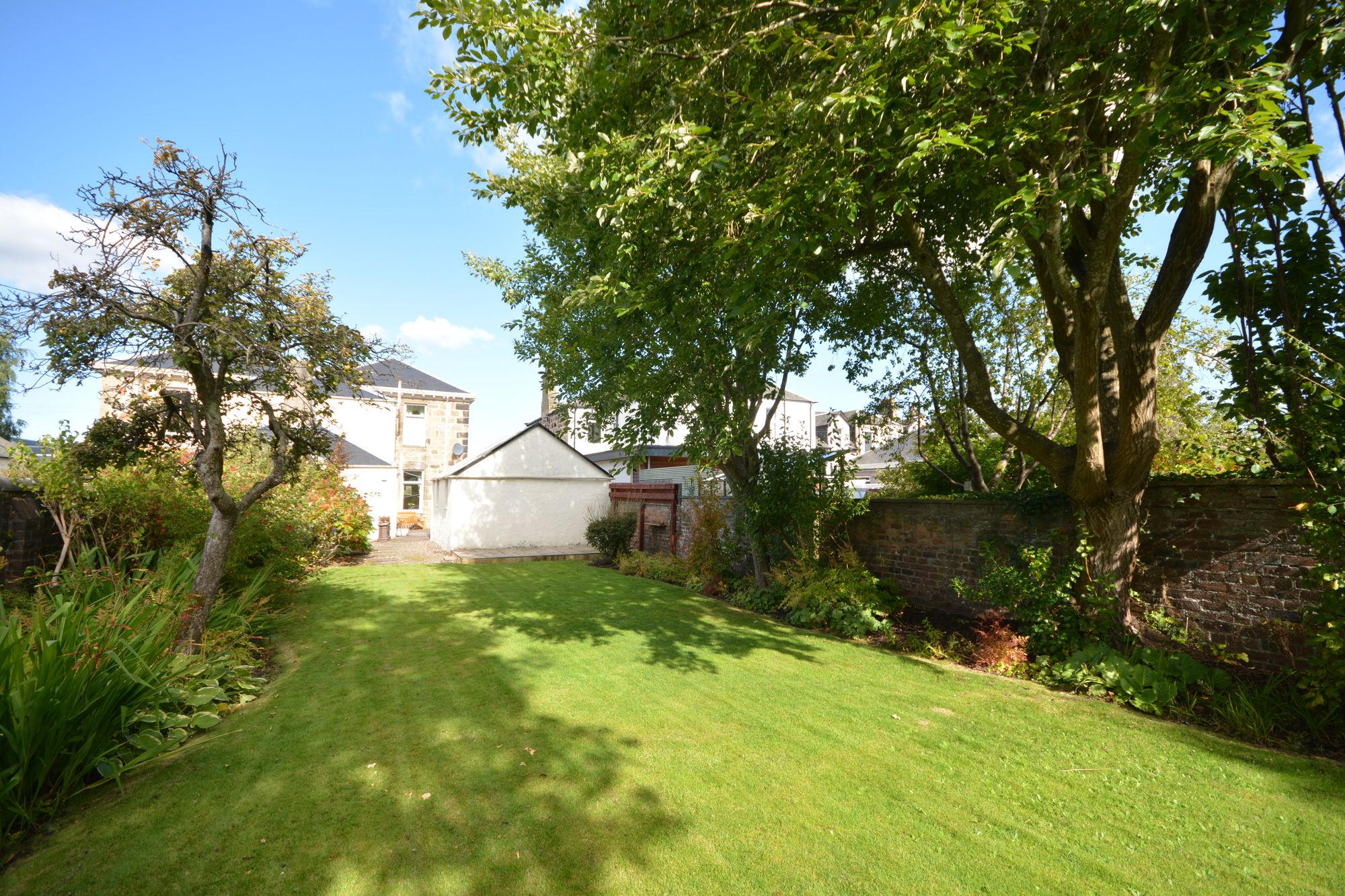 Charming late Victorian blonde sandstone semi detached villa located within one of Falkirk’s most highly regarded and sought after residential locales. Centrally situated the subjects are conveniently placed for access to many excellent town centre amenities including nearby Comely Park Primary School and Falkirk High Station which proves popular with Edinburgh and Glasgow commuters. Set within properties of similar calibre this handsome two storey bay fronted villa occupies delightful gardens complemented by a long driveway leading to a double garage. The extensive sunny south facing rear garden incorporates upper and lower garden lawns, mature trees, shrubs and sandstone paved patio area.