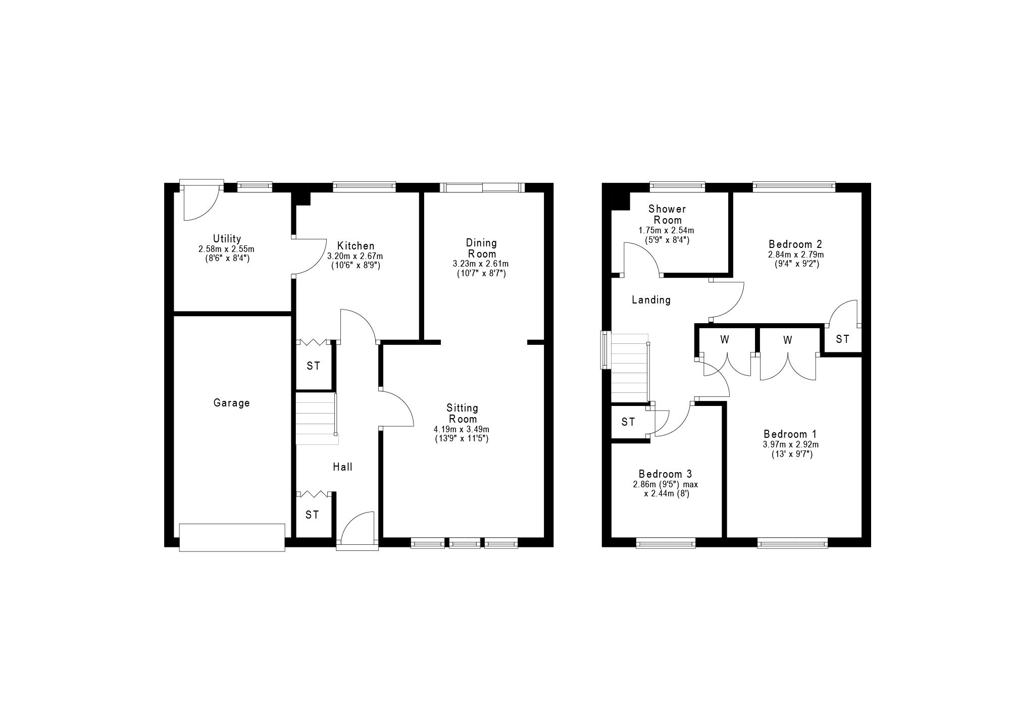 Bedroom Two 9’4” x 9’2” 2.84m x 2.79m