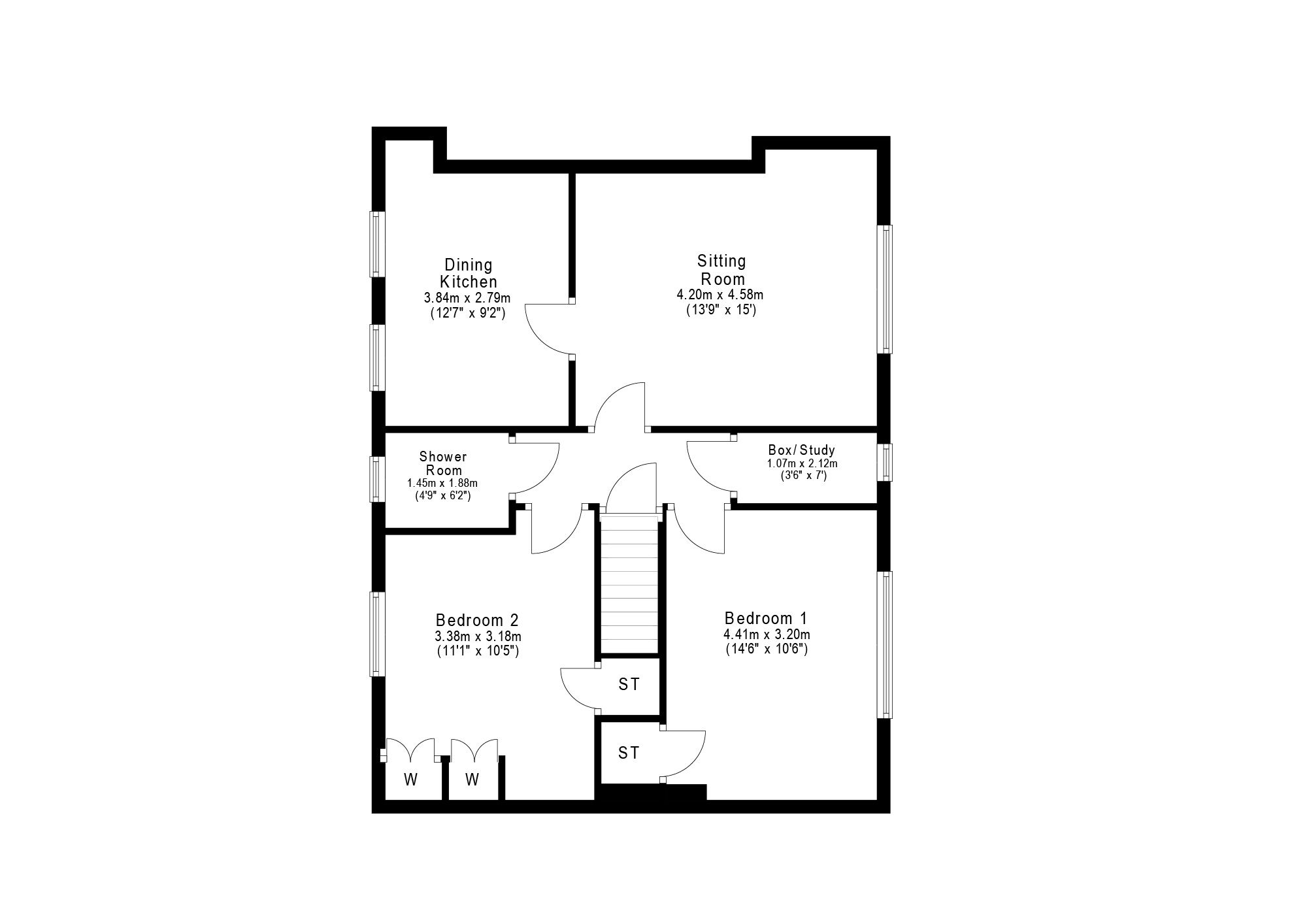 Bedroom Two 11’ x 10’5” 3.35m x 3.18m