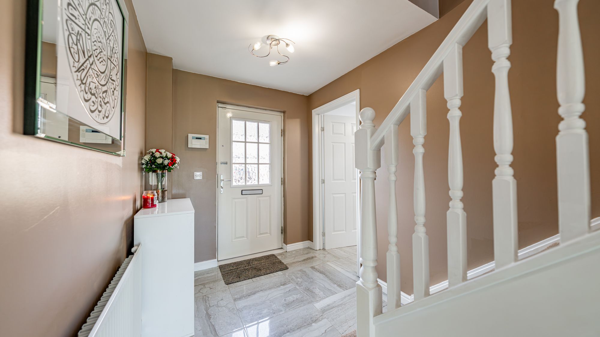 The property occupies a wonderful position within the development and includes a generous area of off street parking to the front. The rear gardens is fully enclosed and is made up of a large central lawn and patio area covered by a fixed awning.