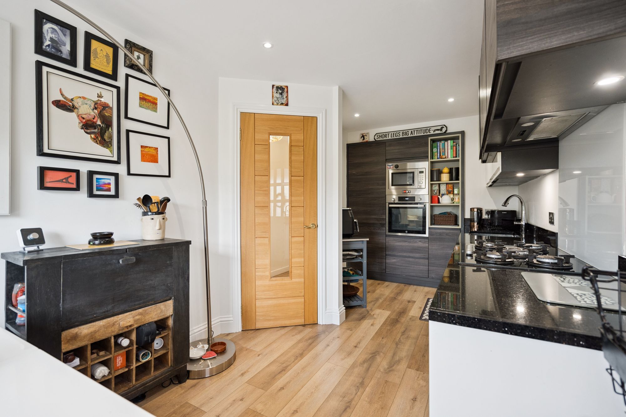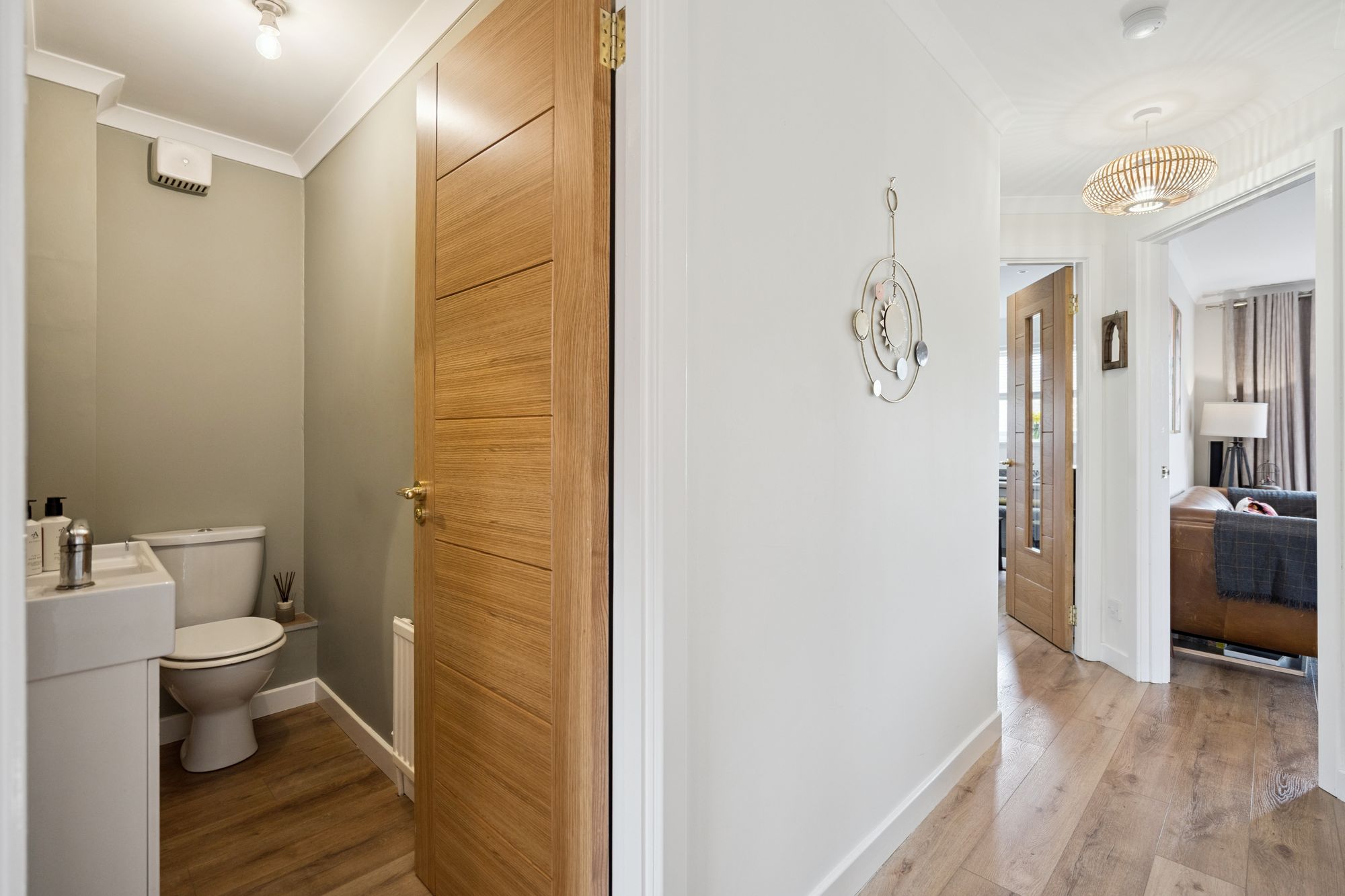 The ground floor opens into a welcoming entrance hall, leading through to a stylish and contemporary kitchen, thoughtfully laid out with sleek units, quality worktops and excellent storage. A separate dining area provides an ideal space for both everyday meals and entertaining, while the spacious lounge is flooded with natural light and benefits from direct access to the rear decking, seamlessly blending indoor and outdoor living. A further versatile room on this level offers flexibility as a home office, gym or additional bedroom, complemented by a convenient WC.