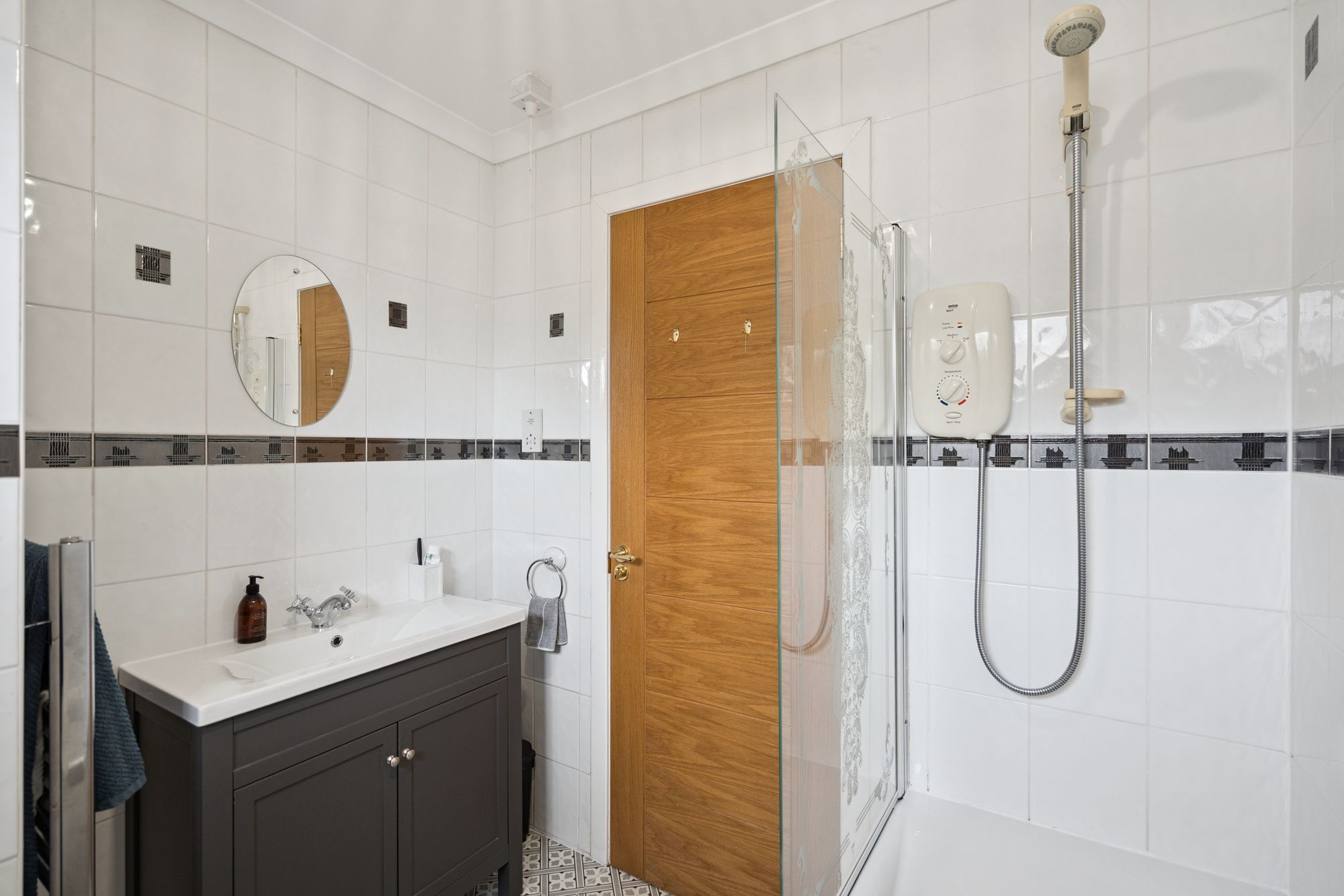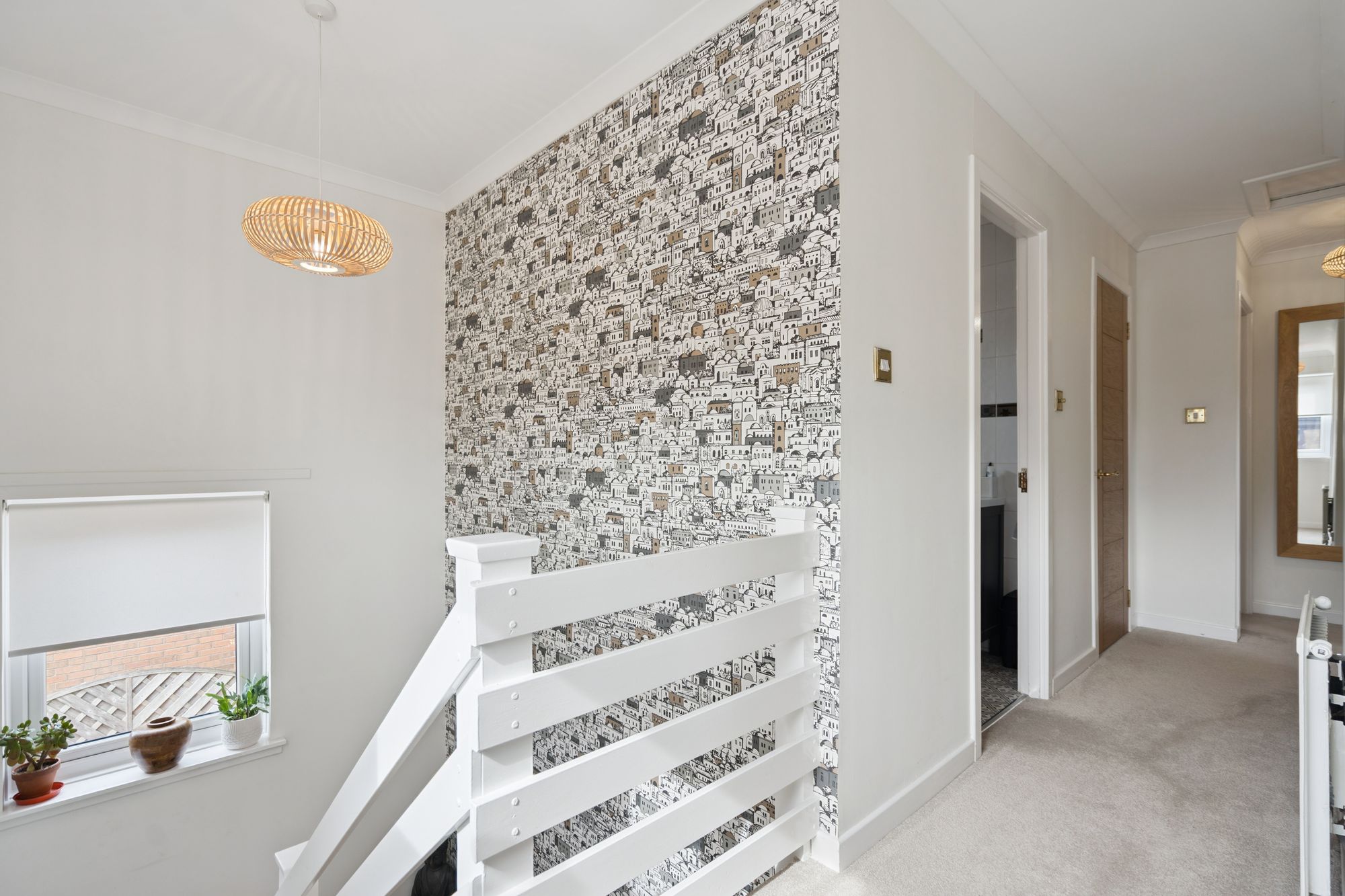 Upstairs, the property offers four well-proportioned bedrooms, including a generous principal bedroom with en-suite shower room. The remaining bedrooms are served by a modern family bathroom, all accessed from a central upper hall, creating a practical and family-friendly layout.