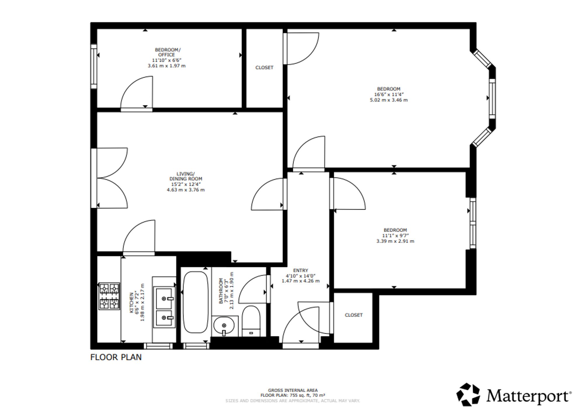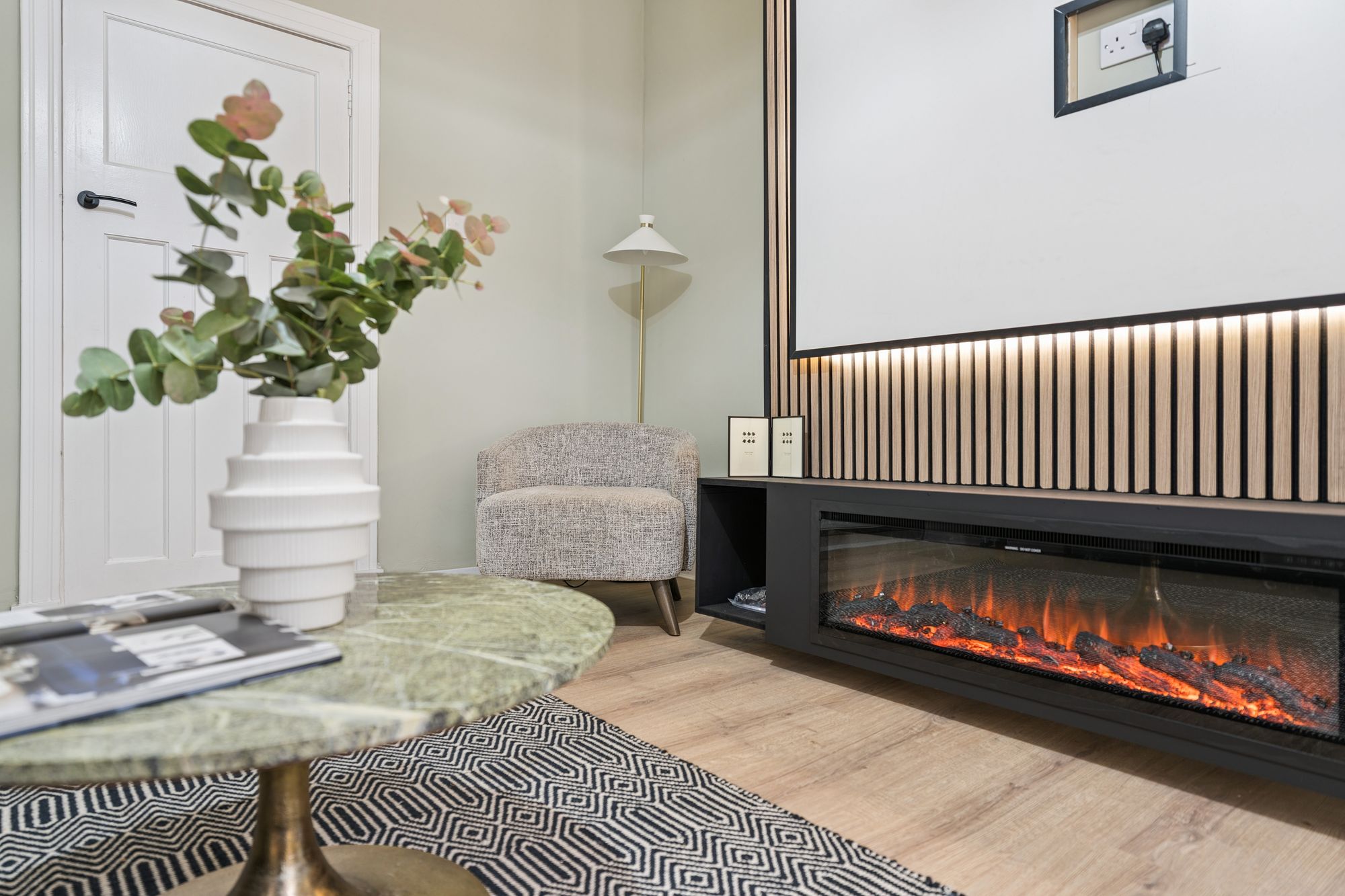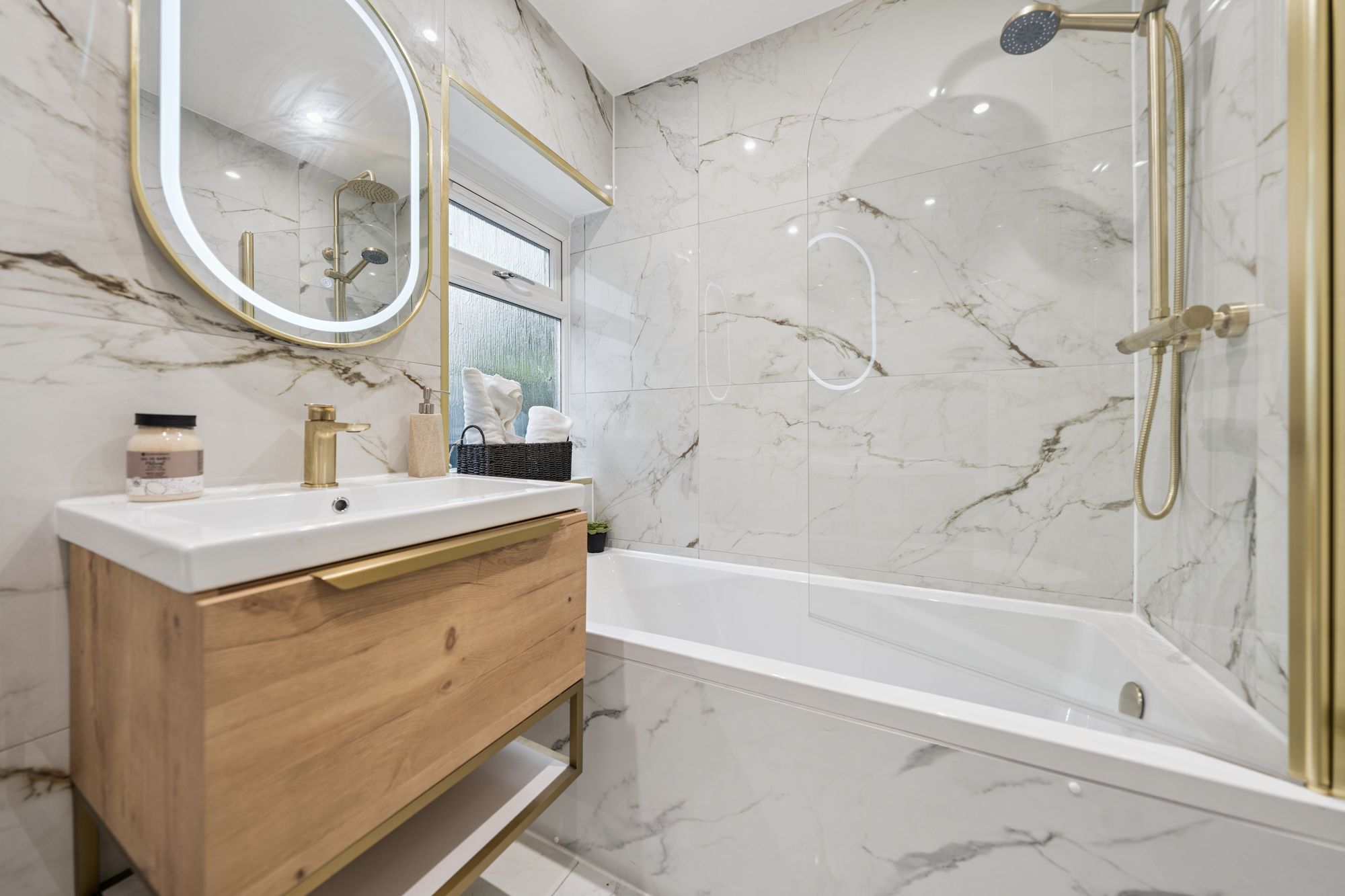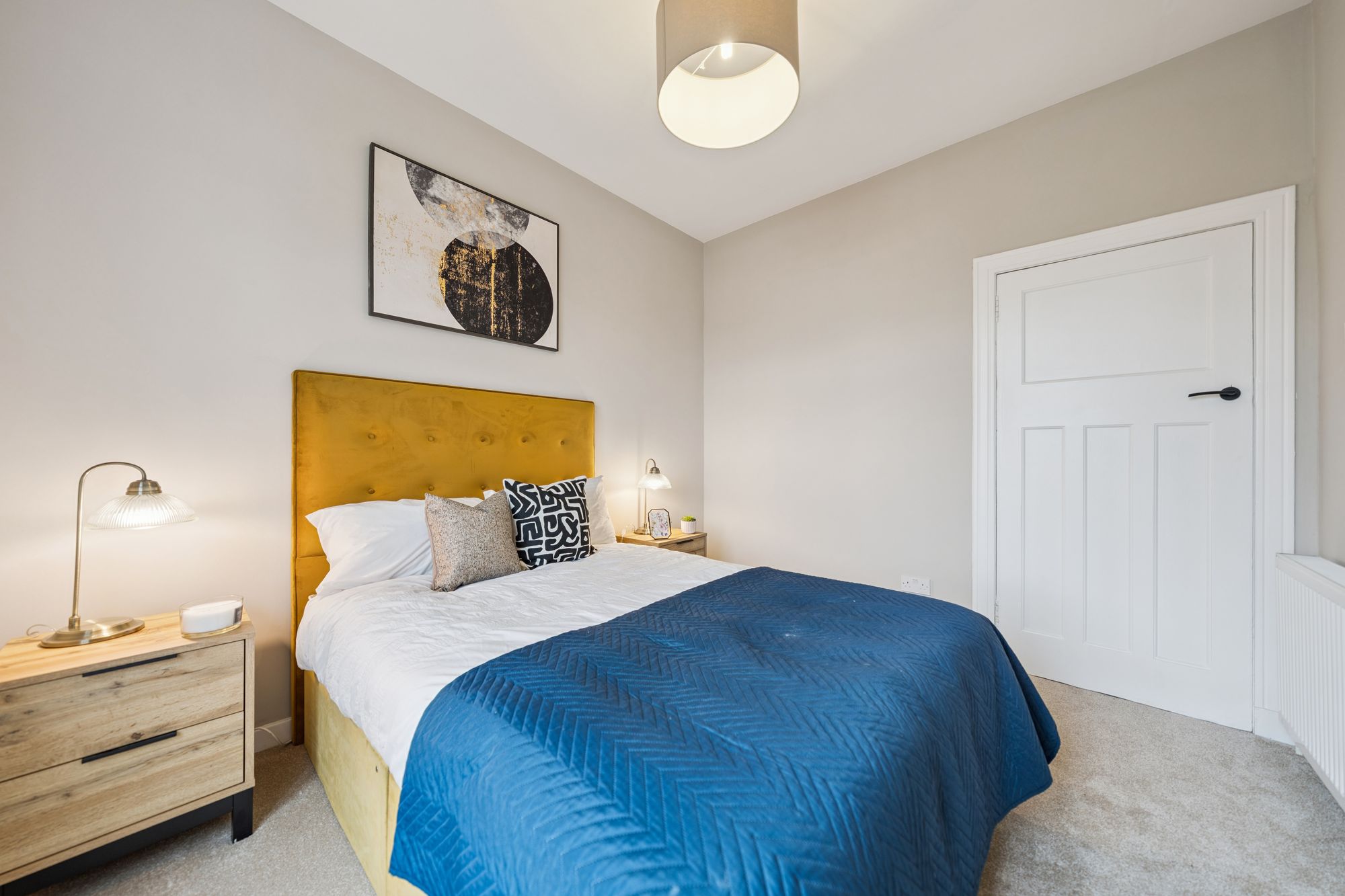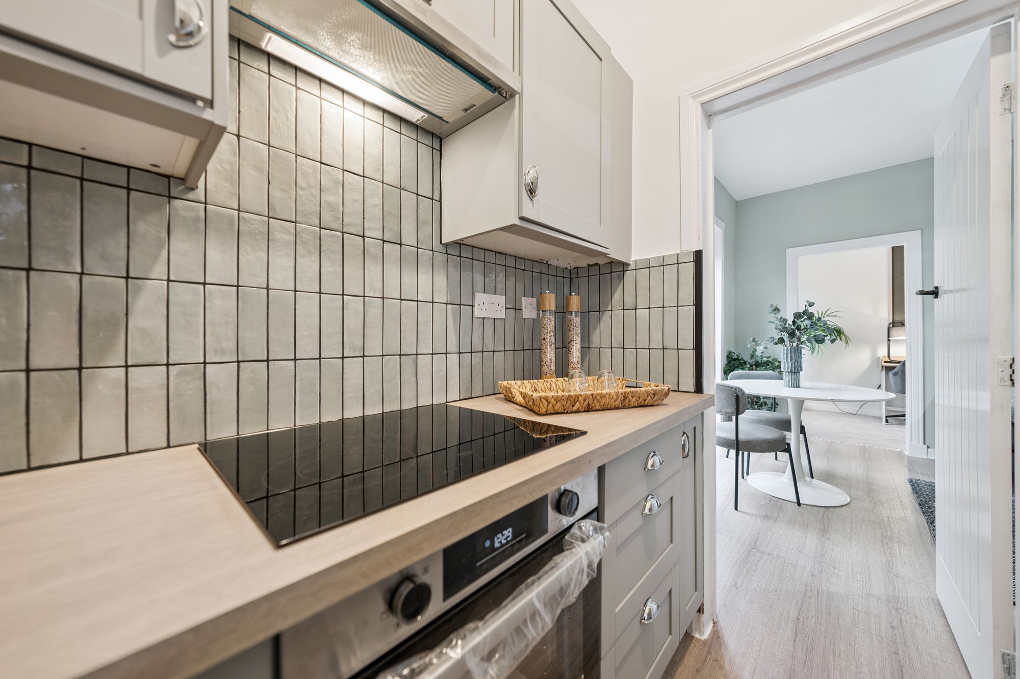 The property offers two generously proportioned, front-facing bedrooms, both providing excellent space for free-standing furniture. The principal bedroom is further enhanced by a broad bay window and an integrated storage cupboard. A third bedroom, currently utilised as a home office, offers flexible accommodation and could equally be used as a dining room or additional living space. Completing the accommodation is a stylish, well-appointed bathroom, fitted with a modern three-piece suite incorporating a shower over the bath.