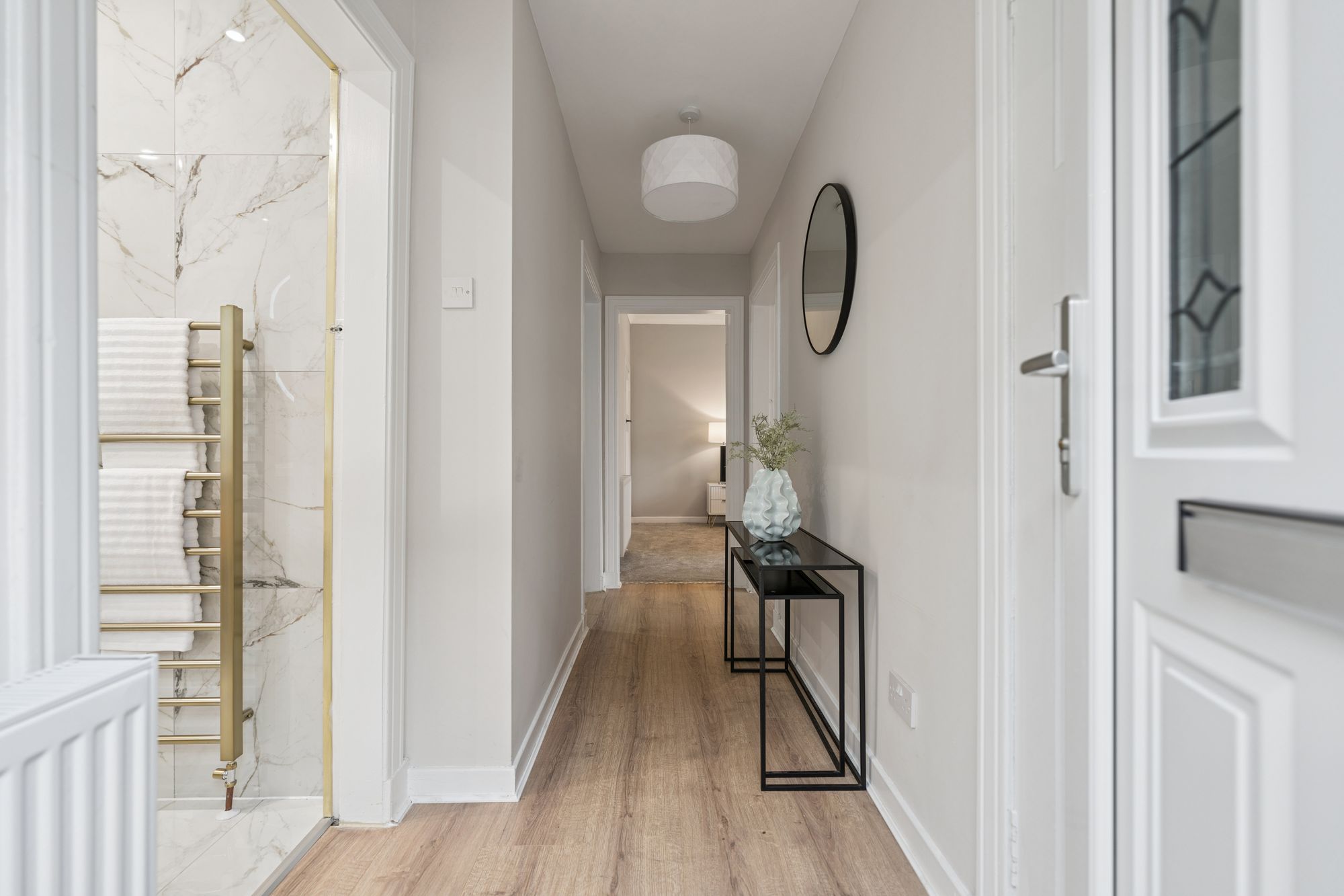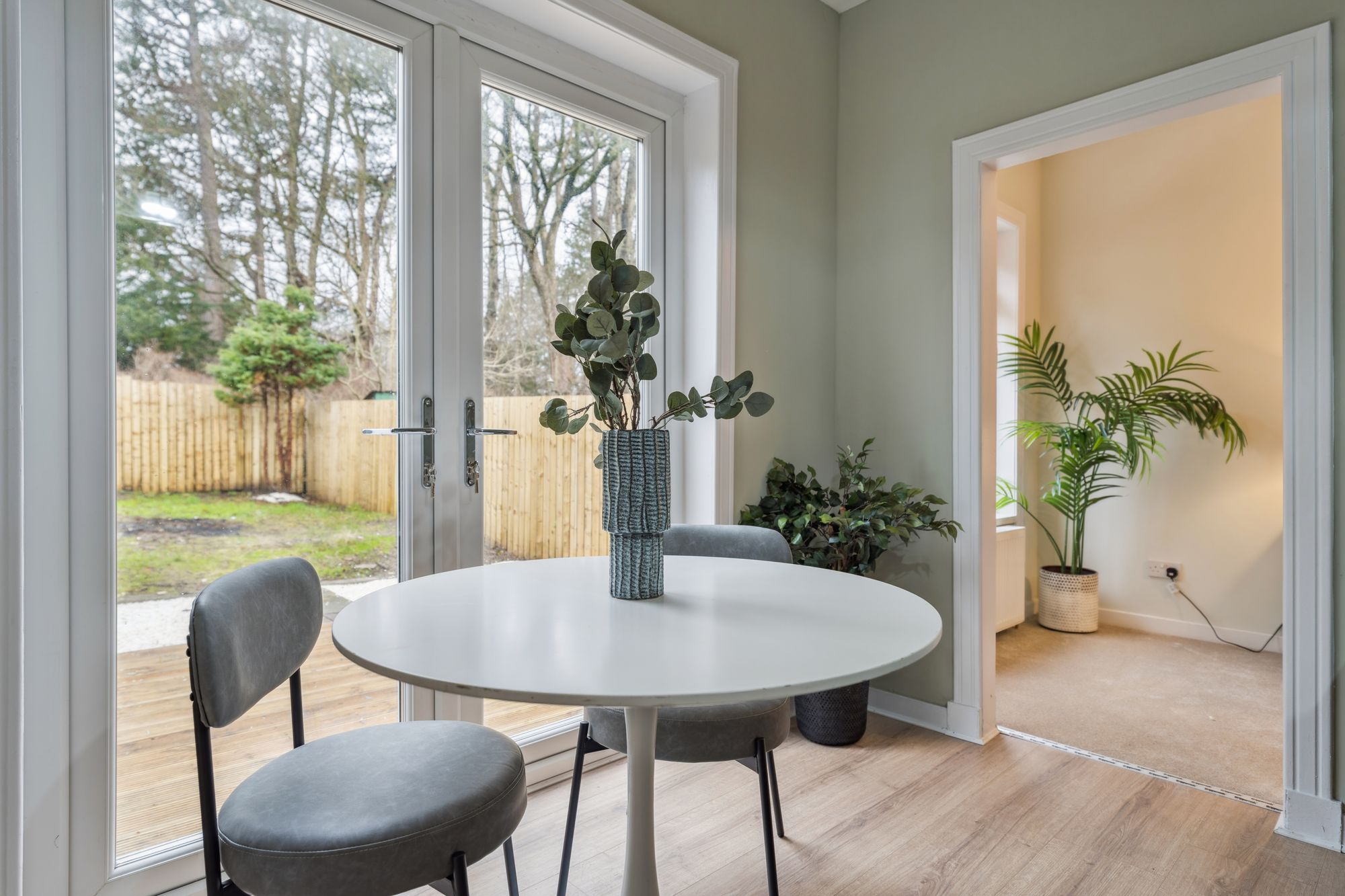 The accommodation is accessed via a welcoming vestibule leading to the main hallway, which provides access to all principal apartments. The bright and spacious lounge is a standout feature, flooded with natural light and enhanced by patio doors that open directly onto the rear garden, creating a seamless indoor-outdoor connection. The modern, well-appointed kitchen is fitted with a range of contemporary units and integral appliances, ideal for modern living.