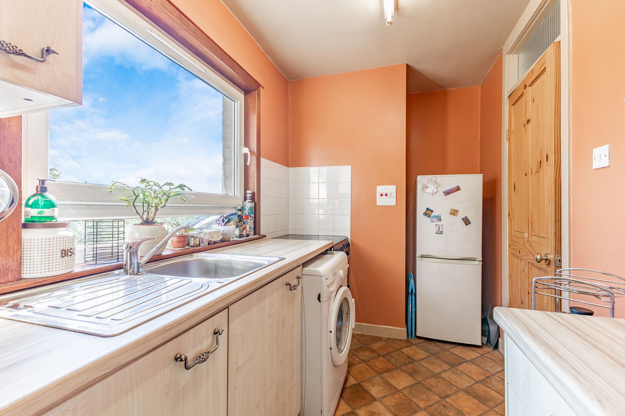 The internal accommodation is well-proportioned and thoughtfully laid out, comprising an entrance hall leading to a bright and welcoming living room, a generously sized double bedroom, a functional kitchen with ample storage and workspace, and a three-piece bathroom suite. While the home retains much of its traditional charm, it also offers scope for modernisation, allowing potential buyers to personalise the space to their own tastes.