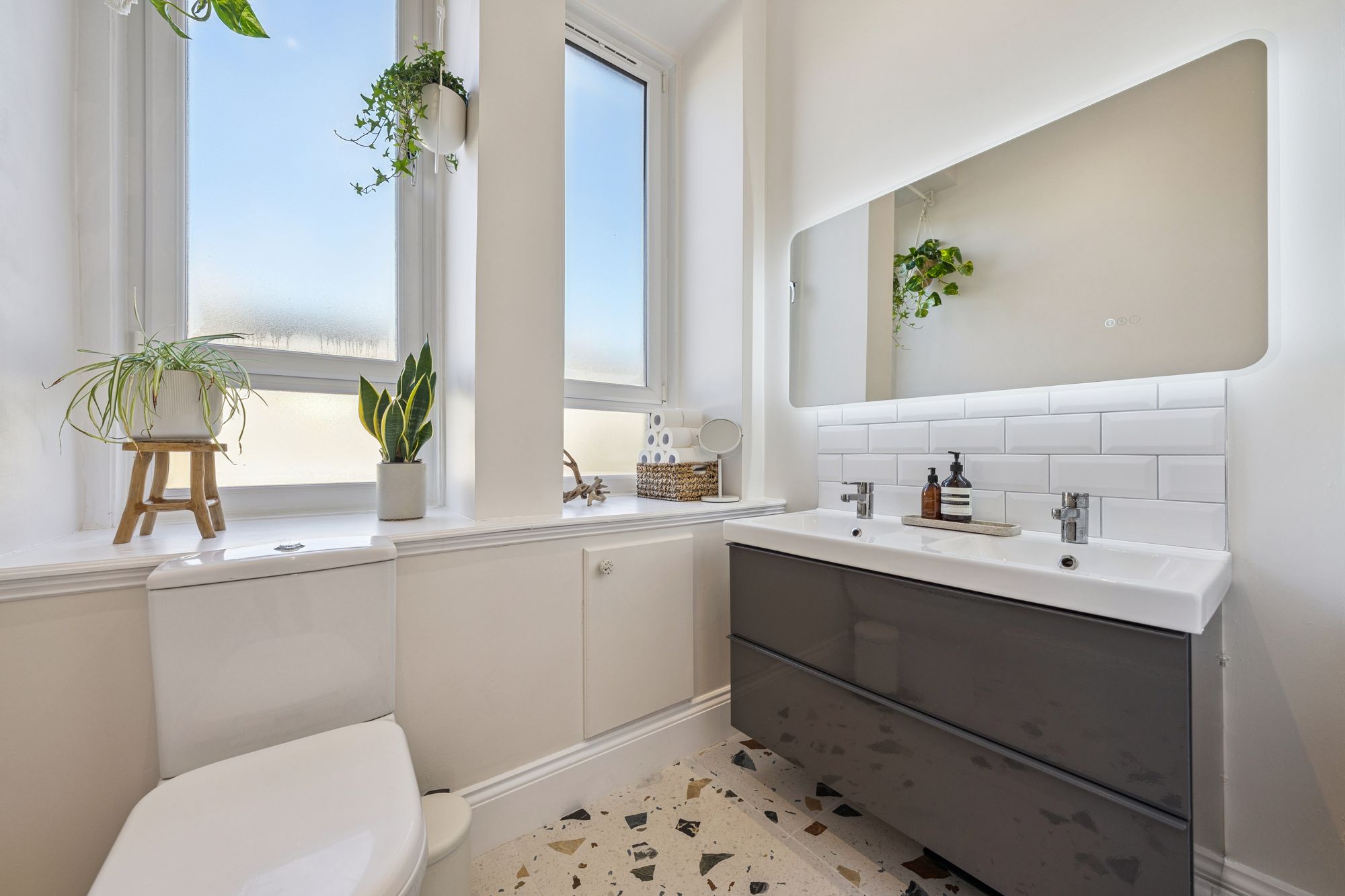 The accommodation continues to impress with a spacious principal bedroom to the front, complemented by a well-proportioned double bedroom to the rear, offering flexibility for guests, home working, or additional living space. A contemporary three-piece bathroom, complete with shower over bath, finishes the internal layout with a polished touch.