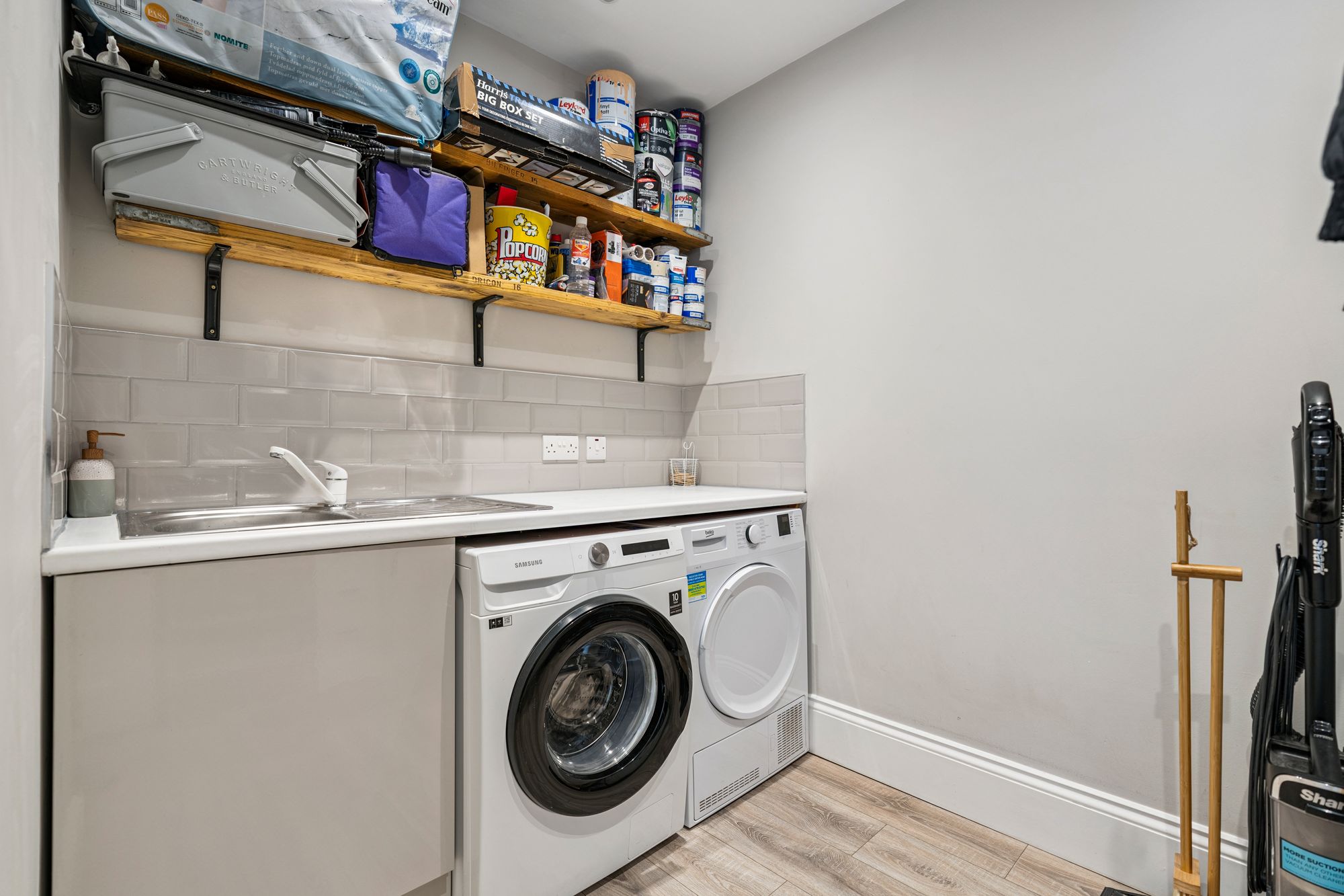 From the moment you step inside, an immediate sense of space and natural light defines the home. A welcoming reception hallway leads to a particularly useful separate laundry room, complete with washing machine, tumble dryer, and additional storage. To the front, a stunning bay-windowed lounge provides a bright and inviting focal point, where classic period detailing is seamlessly paired with modern comfort, perfect for both relaxed living and stylish entertaining. The heart of the home is a superb dining-sized kitchen, thoughtfully designed with sleek cabinetry, integrated appliances, and ample space for hosting.