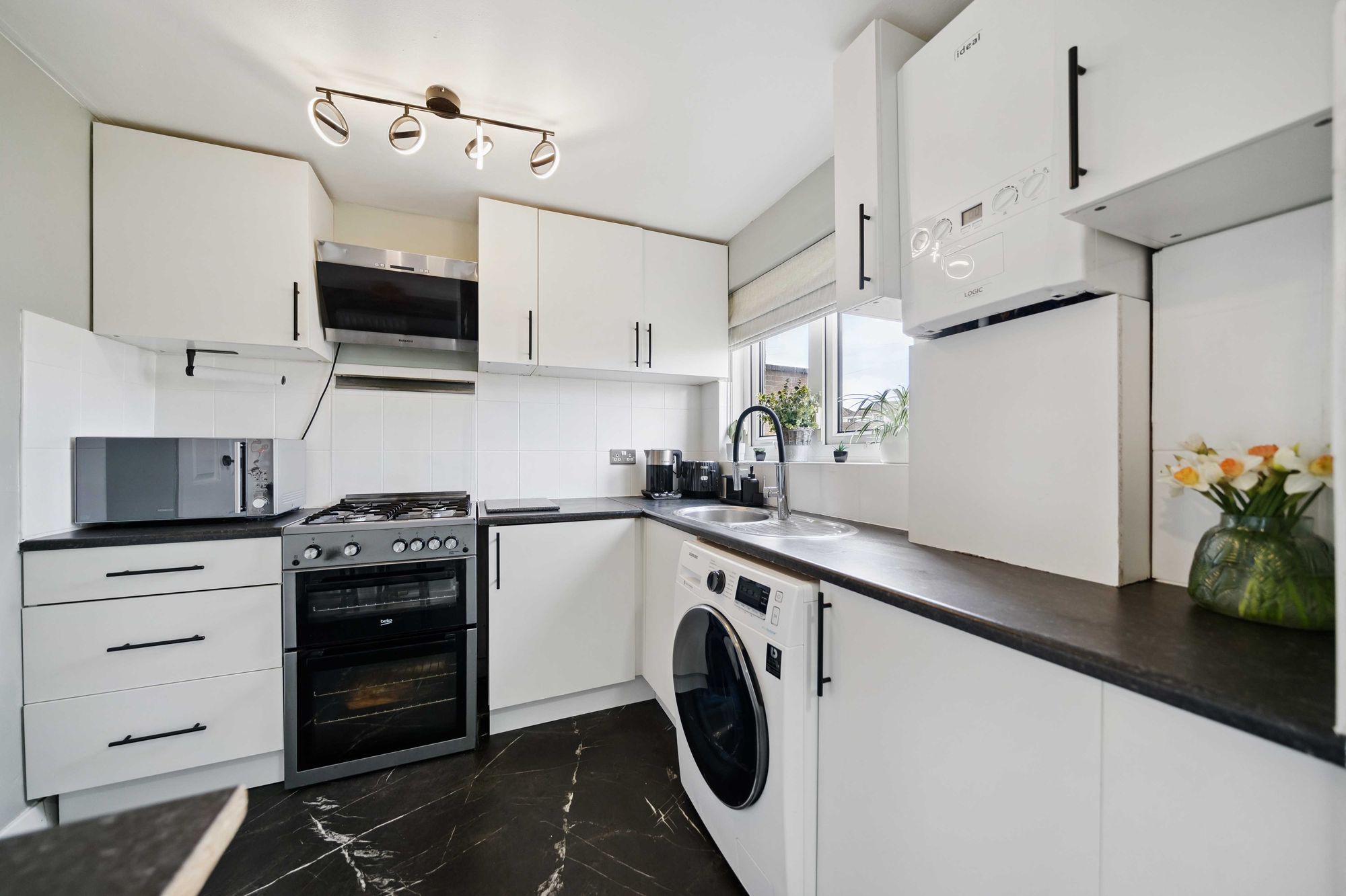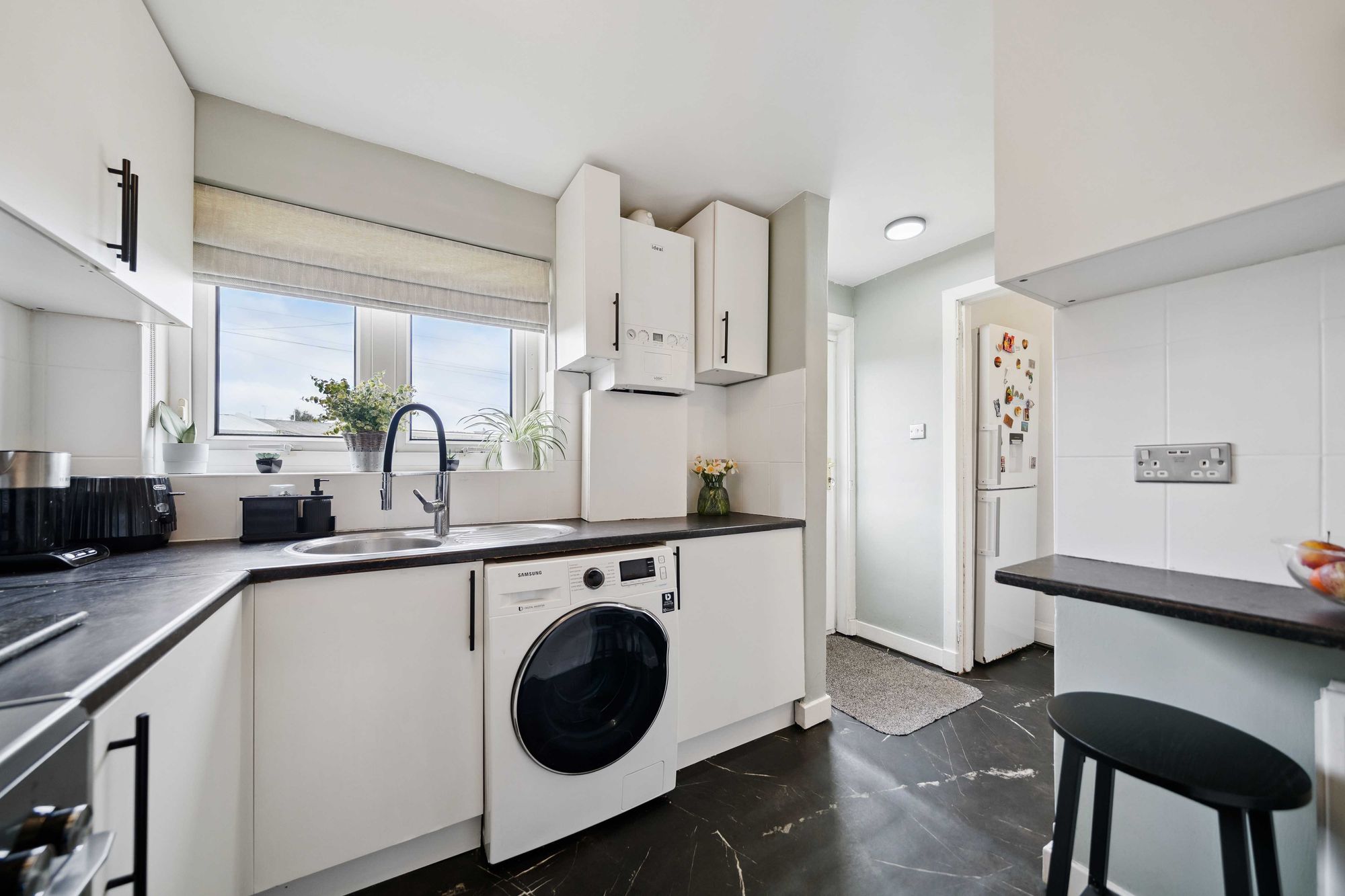 Immediately engaging upon entry, the property boasts a notably bright interior which welcomes, on the ground floor, via a practical reception hallway with ascending staircase and storage off, generous dining sized lounge with dual aspect window formations drawing an abundance of natural light whilst providing ample space for hosting and a comprehensively fitted kitchen hosting a range of modern base and wall-mounted units as well as large pantry cupboard off.
