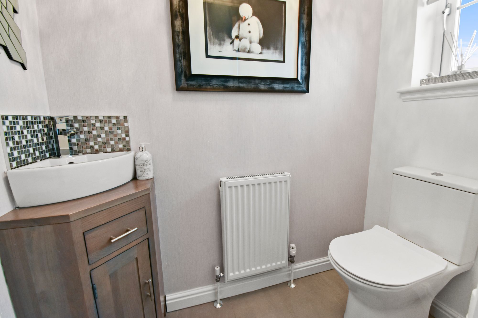 Access to the property is through a large reception hallway with handy refitted downstairs WC, stairway to upper apartments and feature Moduleo flooring which continues throughout the complete ground floor. The sitting room enjoys the open front aspect and has a feature media wall with integrated flame effect fire. The wonderful dining kitchen was refitted in December 2024 complete with Neff integrated appliances and quartz worktops with French doors from the kitchen to the charming rear gardens.