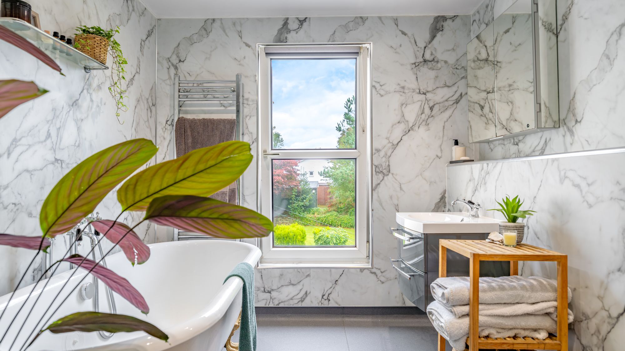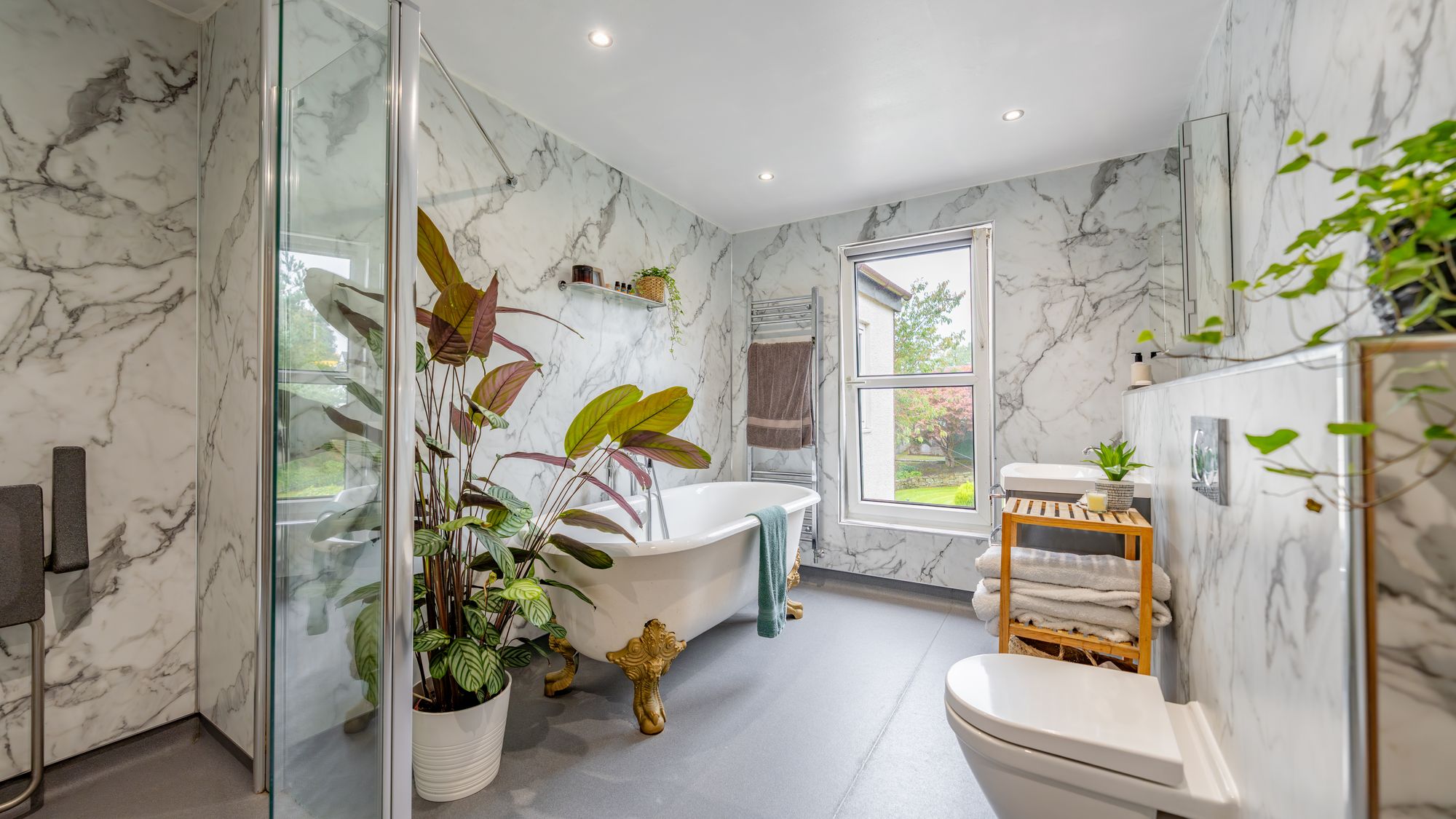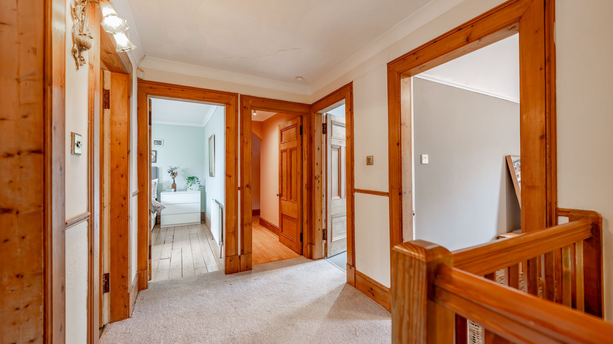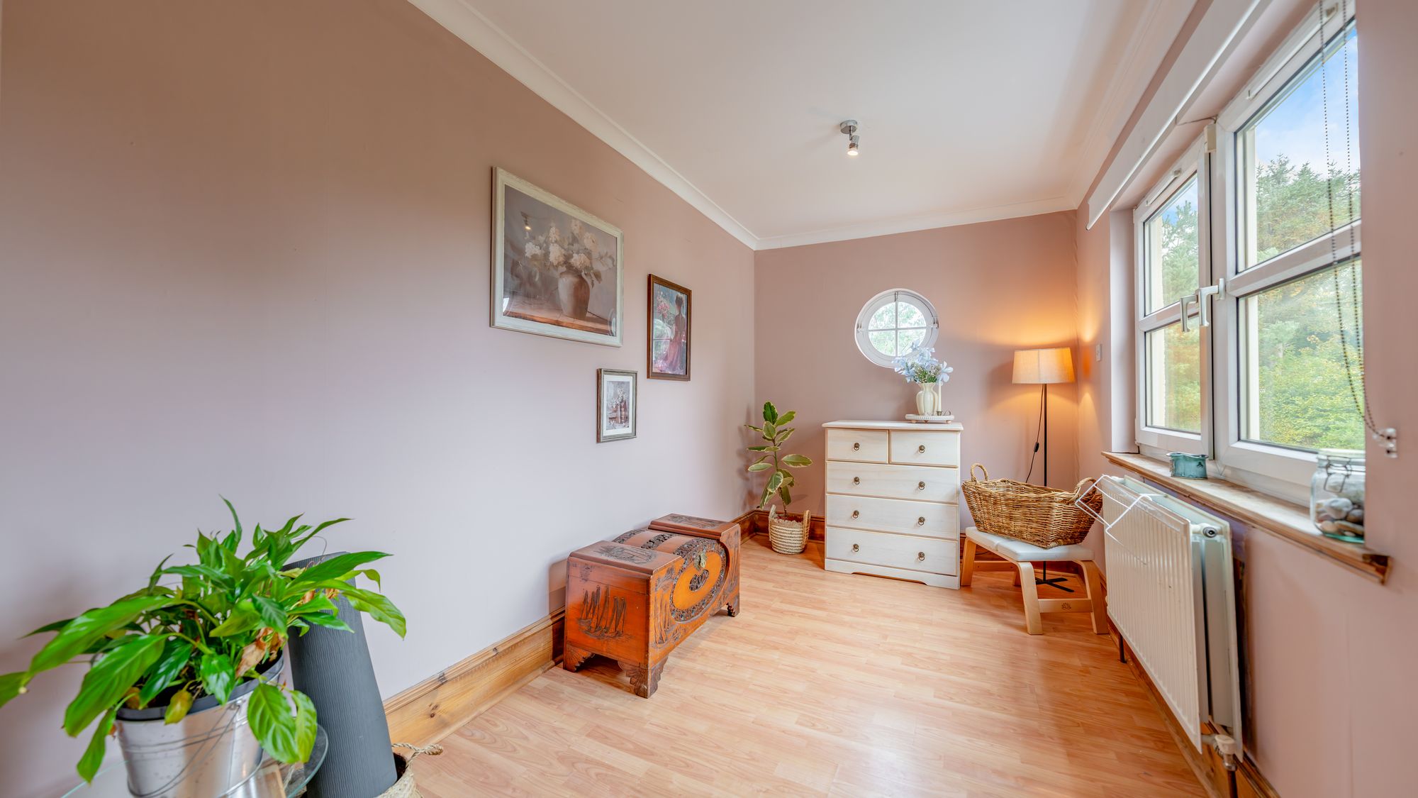 The upper level of the property has a broad landing providing access to four spacious bedrooms and featuring a large walk in storage cupboard. The family bathroom has been upgraded with contemporary stylings and comprises of a walk in shower, free standing bath, WC and wash hand basin.
