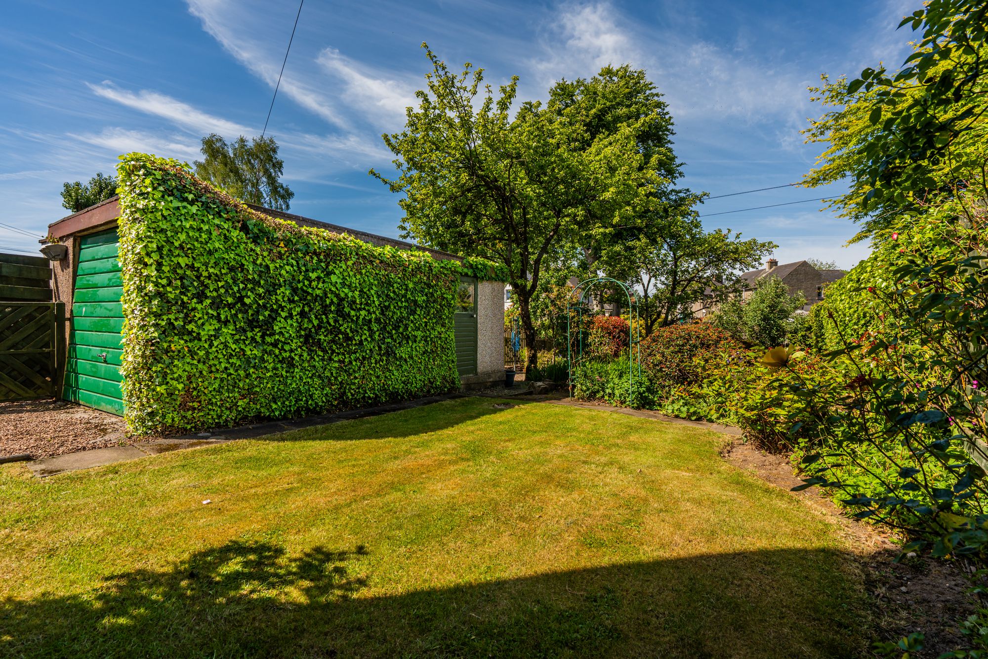 Externally, the property boasts a substantial garden, thoughtfully landscaped with mature trees, established shrubs, a section of lawn, and ample space for outdoor activities or relaxation. A private driveway and a detached single garage provide practical off-street parking and storage.