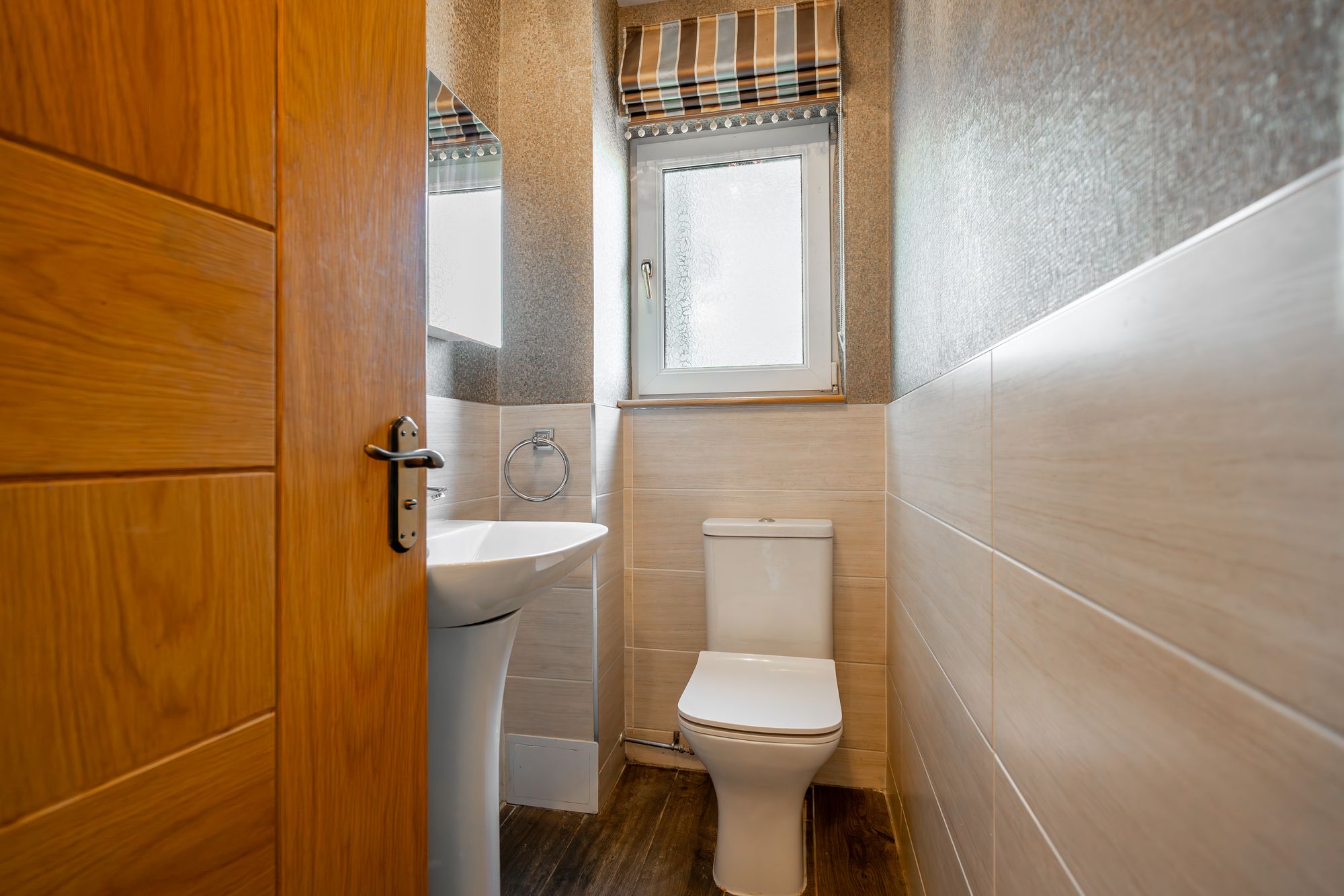 The accommodation is thoughtfully arranged to suit modern family life. A welcoming entrance porch leads into a spacious sitting room, while the fully fitted dining kitchen provides a sociable hub for everyday living and entertaining. A versatile ground level room offers the flexibility of a family room or 5th bedroom, complemented by a convenient WC. Upstairs, there are four further double bedrooms, each enjoying pleasant outlooks, and a well-appointed family shower room.