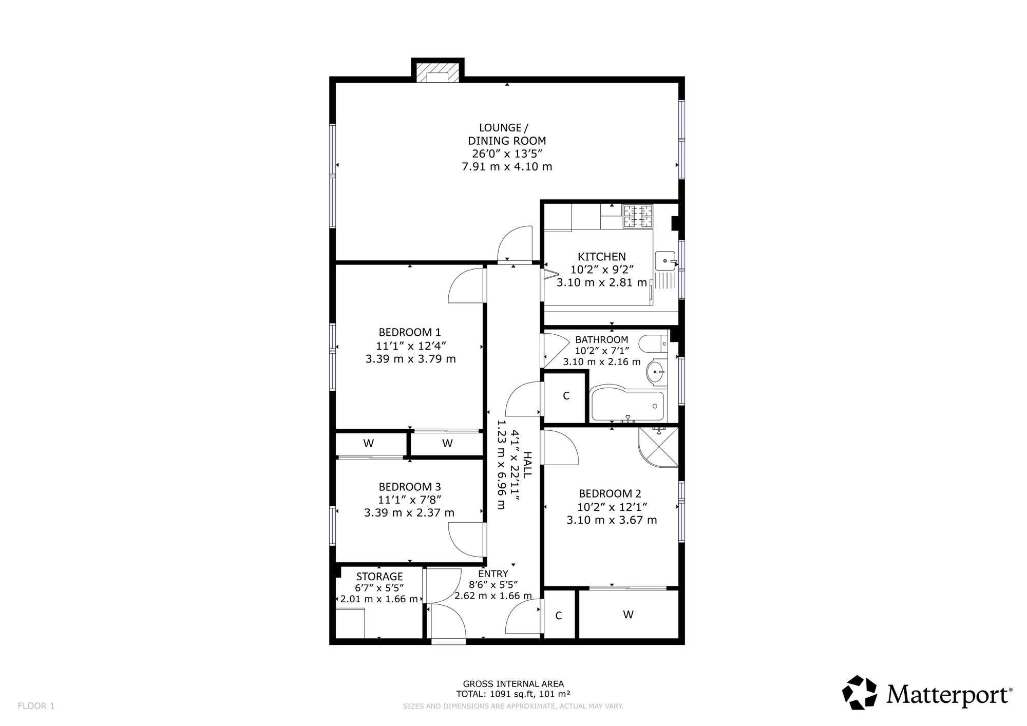 Representing an ideal purchase for those considering down sizing into a safe and sought after pocket, the accommodation is accessed via a secure communal entrance with door entry system. On entering, the welcoming hallway immediately conveys a sense of light and space. Within the flat, storage is a standout feature, with multiple built-in cupboards and a particularly generous walk-in store, a rare and highly practical addition. Undoubtedly the centre piece of the home is the outstanding open-plan lounge and dining room. Exceptionally spacious and flooded with natural light, this superb living area provides a versatile layout easily accommodating both formal dining and relaxed seating areas. The elevated position ensures stunning water views, creating a wonderful backdrop for everyday living. The well-appointed fitted kitchen is thoughtfully designed with an excellent range of wall and floor-mounted units, ample worktop space and a stainless steel sink. With a bright outlook to the rear of the property, it offers a functional and pleasant working space while cooking. All three bedrooms are fantastic double rooms, offering generous proportions rarely found in modern apartments. Each benefits from fitted storage, with bedrooms one and two featuring mirrored wardrobes and bedroom three incorporating its own fitted cupboard, making the property equally suitable for family life or home working. The accommodation is completed by a large, contemporary fully tiled bathroom fitted with shower, wc and wash hand basin, finished in a clean, modern style. Further enhancing the appeal, the property benefits from uPVC framed double glazing and gas-fired central heating, ensuring comfort and efficiency throughout the seasons. A particularly valuable addition is the single end-terraced garage (approximately 5.09m x 2.49m), providing secure parking or additional storage.