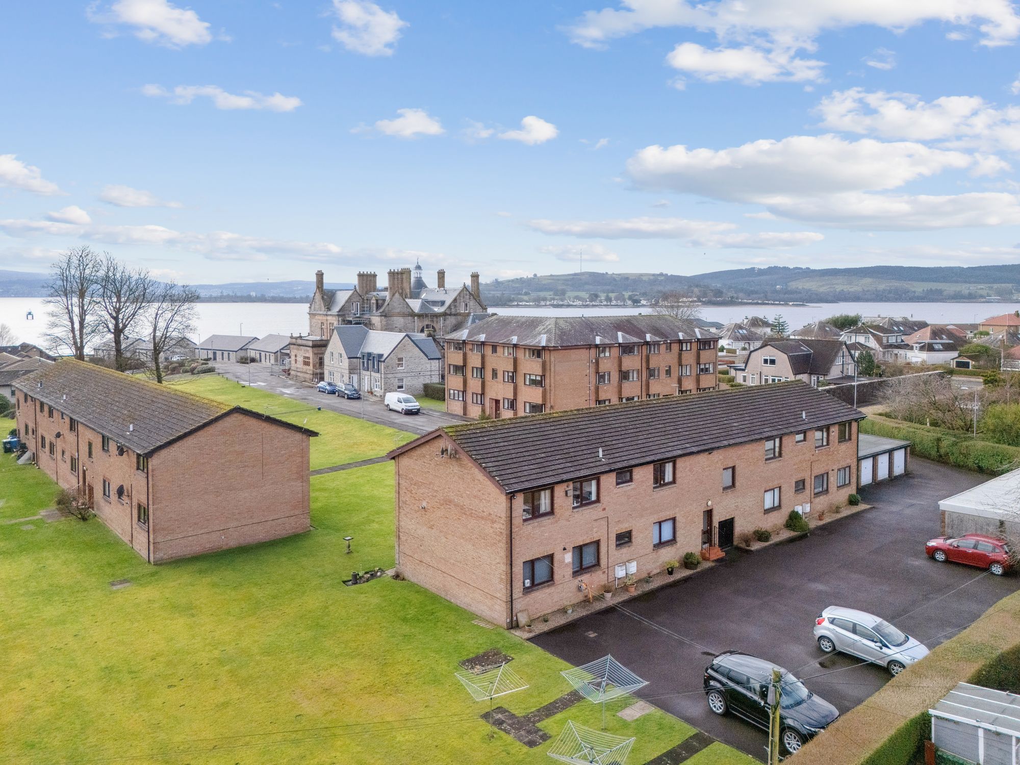 A particular highlight of the property is its fantastic water views over the Clyde Estuary, providing an ever-changing coastal backdrop and enhancing the sense of light and openness throughout. Externally, the development is set within extensive communal gardens, predominantly laid to lawn and offering generous outdoor space for residents to enjoy. There is also a surfaced access and off-street parking area to the rear, together with a small integral bin store.