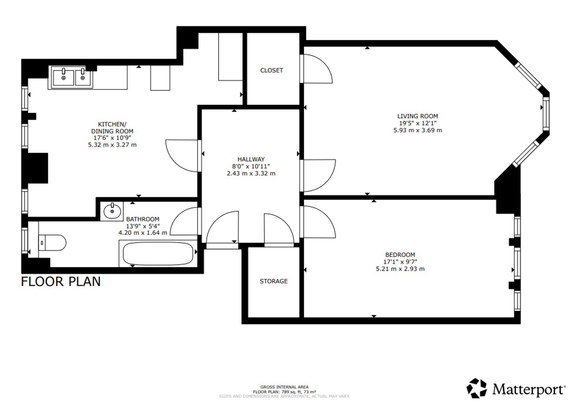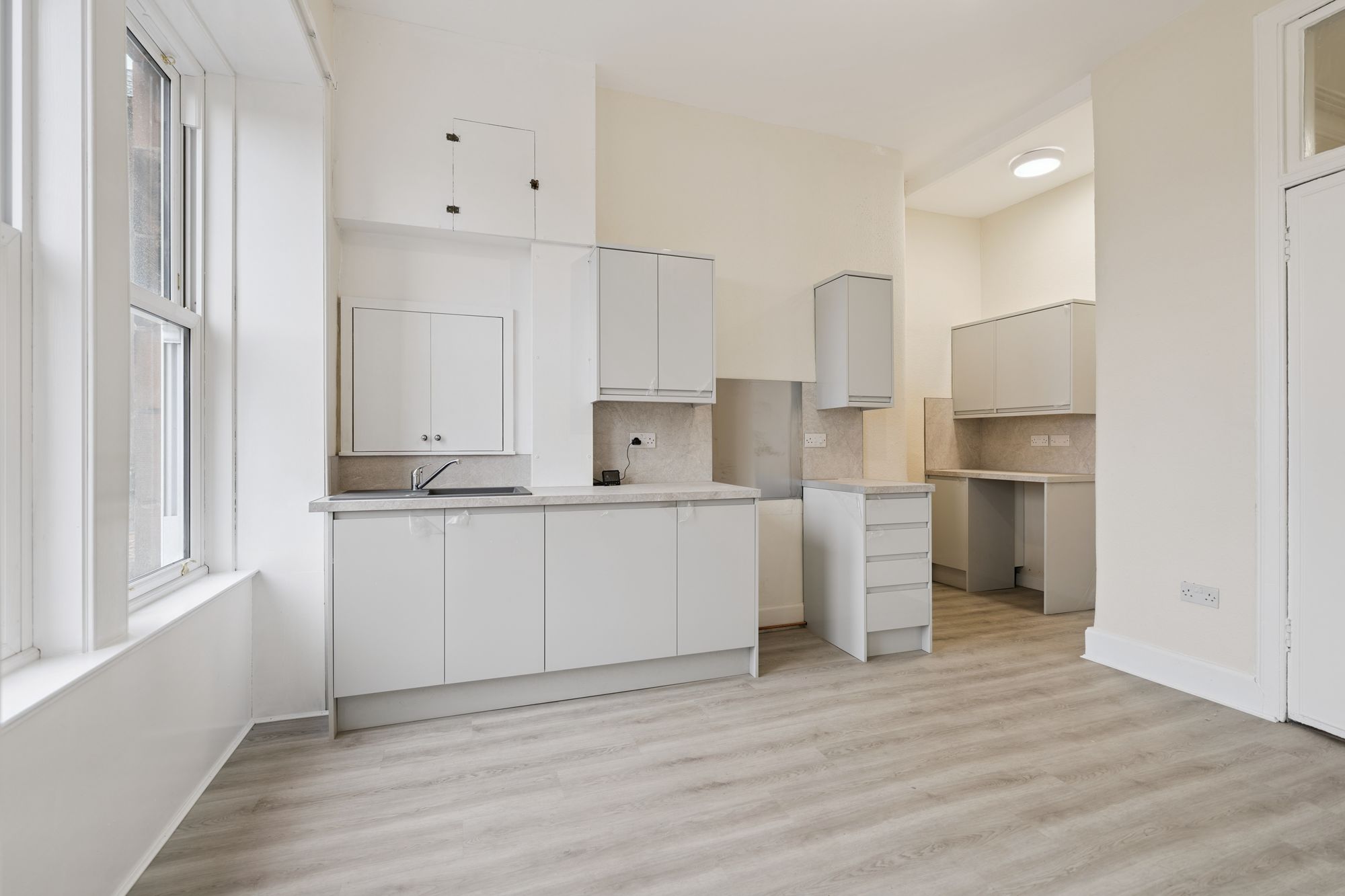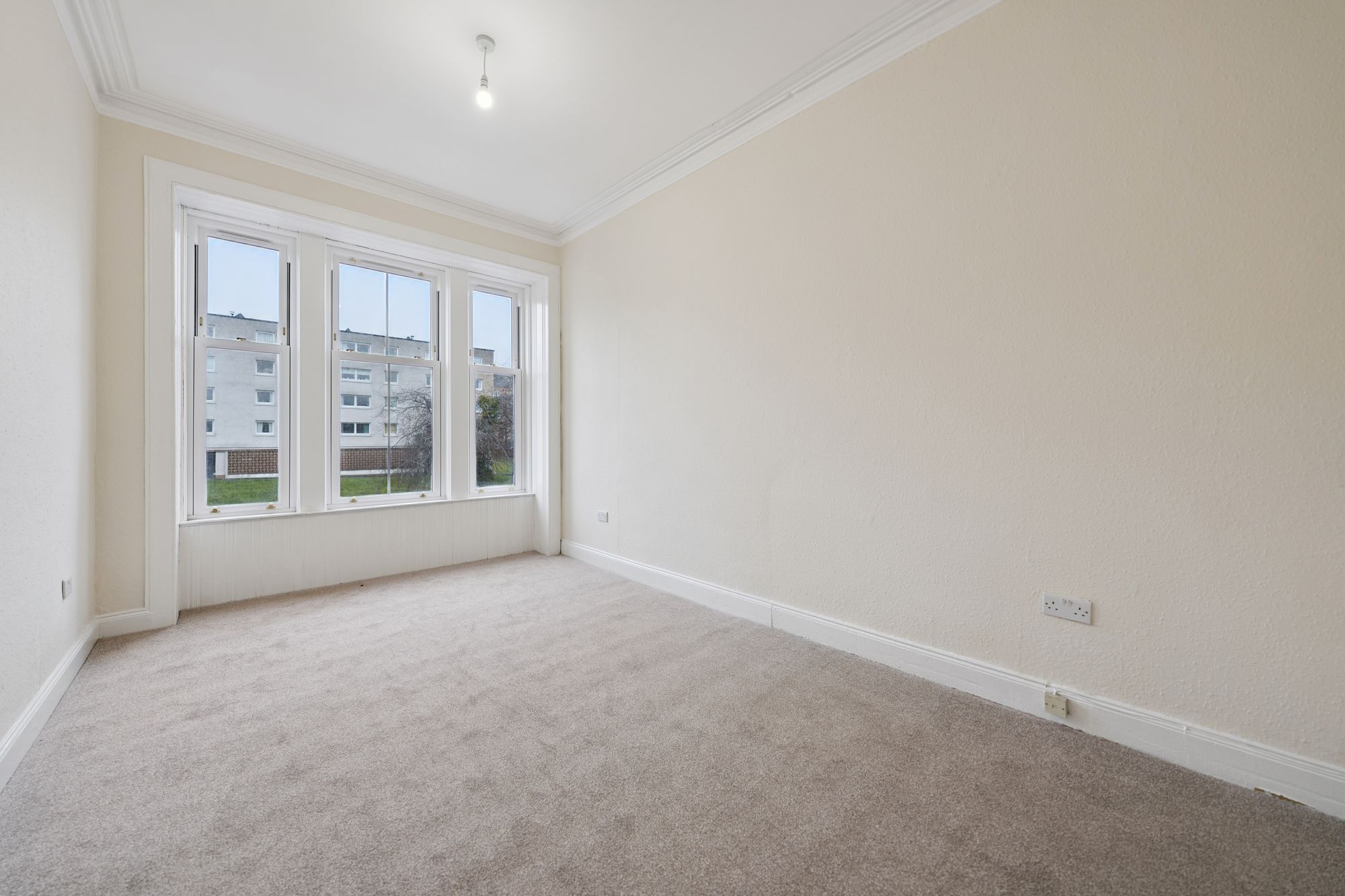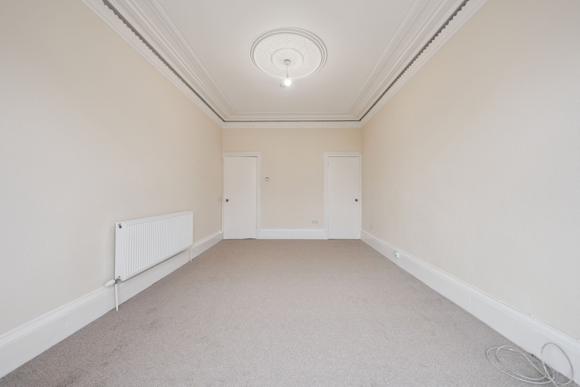 Internally, the apartment boasts generous proportions and an abundance of natural light, while retaining a wealth of traditional character. A broad and welcoming entrance hallway, complete with useful storage cupboard, sets the tone for the space within. The well-proportioned double bedroom offers comfortable accommodation, while the bright front-facing lounge is a true highlight — featuring a charming bay window that floods the room with light and a substantial storage cupboard for added practicality.