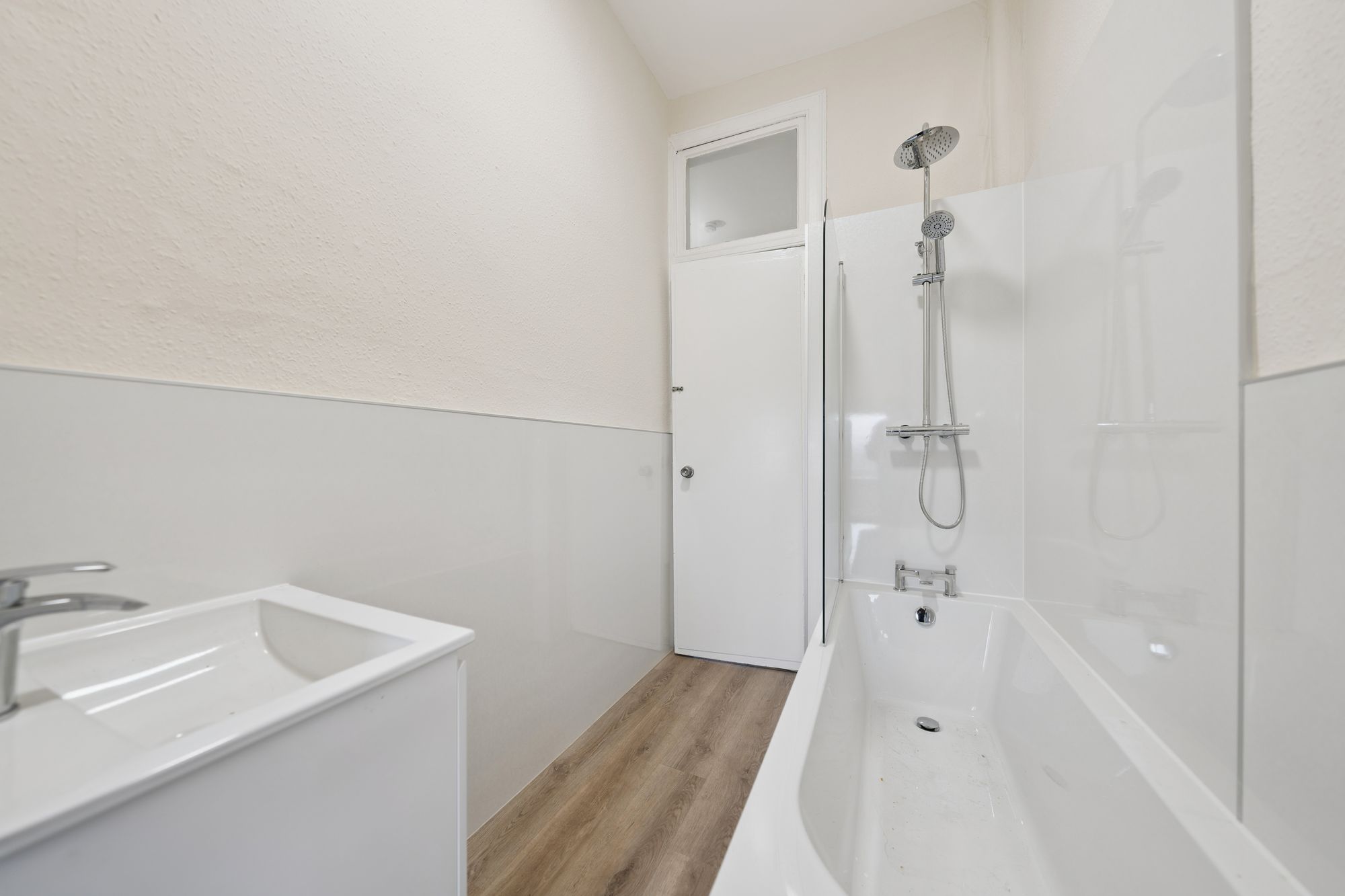 The contemporary dining-sized kitchen provides ample space for cooking and entertaining, finished with modern fittings and excellent storage. A neatly appointed galley-style bathroom completes the accommodation, offering a shower-over-bath arrangement.