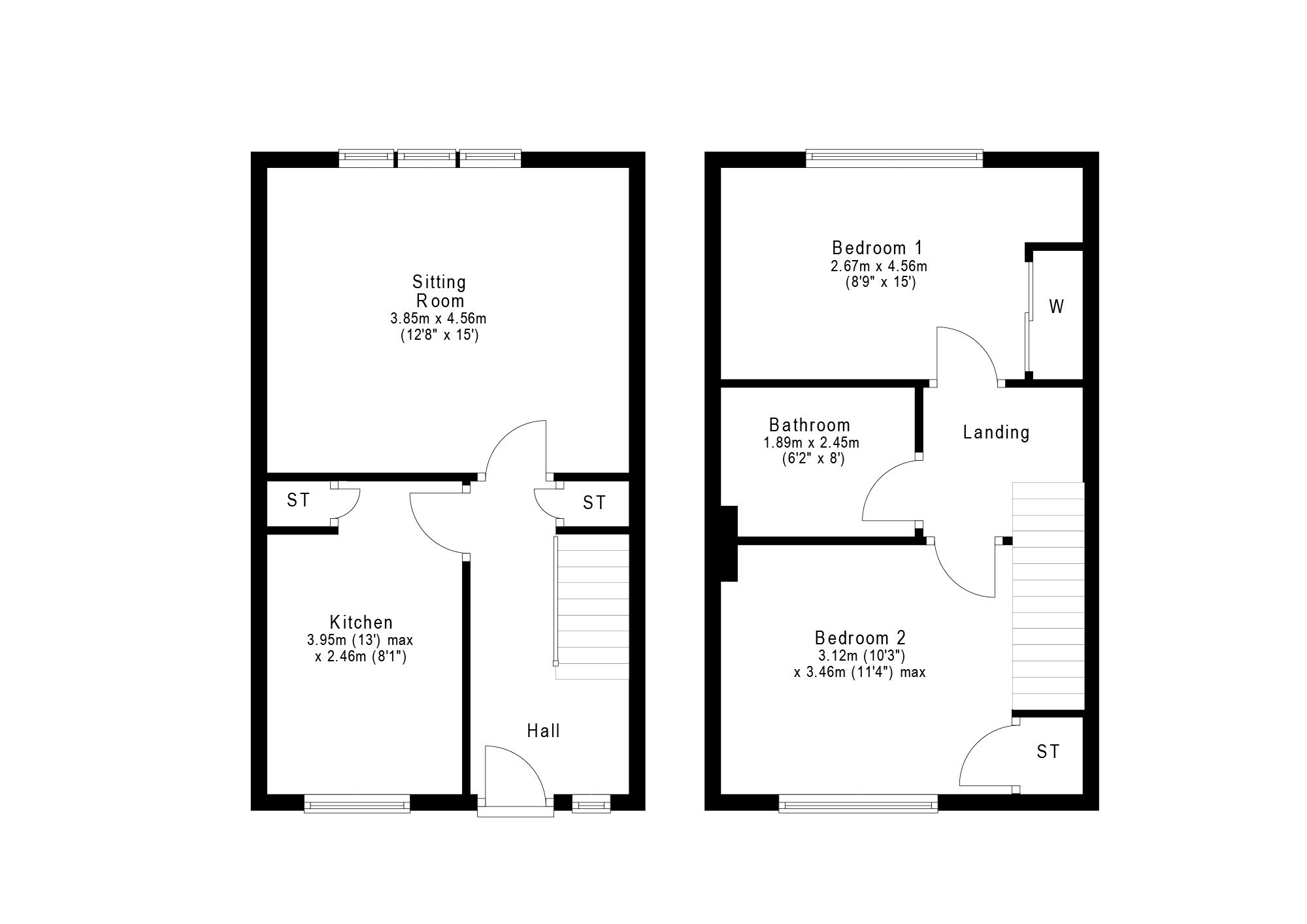 Bedroom Two 11’4” x 10’3” 3.45m x 3.12m