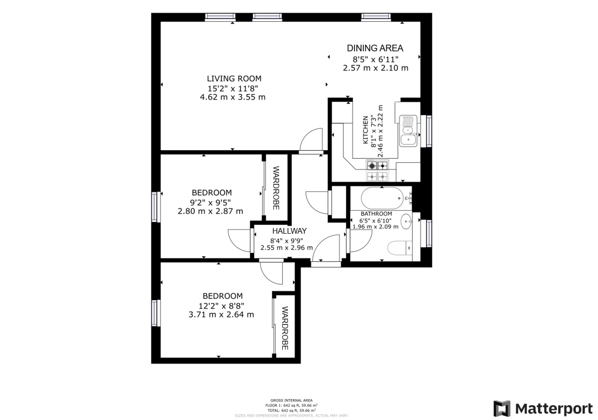 Both double bedrooms include built-in wardrobes, offering excellent storage solutions. The bathroom features a contemporary three-piece suite with an over-bath shower. Gas central heating and double glazing throughout ensure a warm and energy-efficient home. A large area of the loft is also fully boarded, providing ideal additional storage space.
