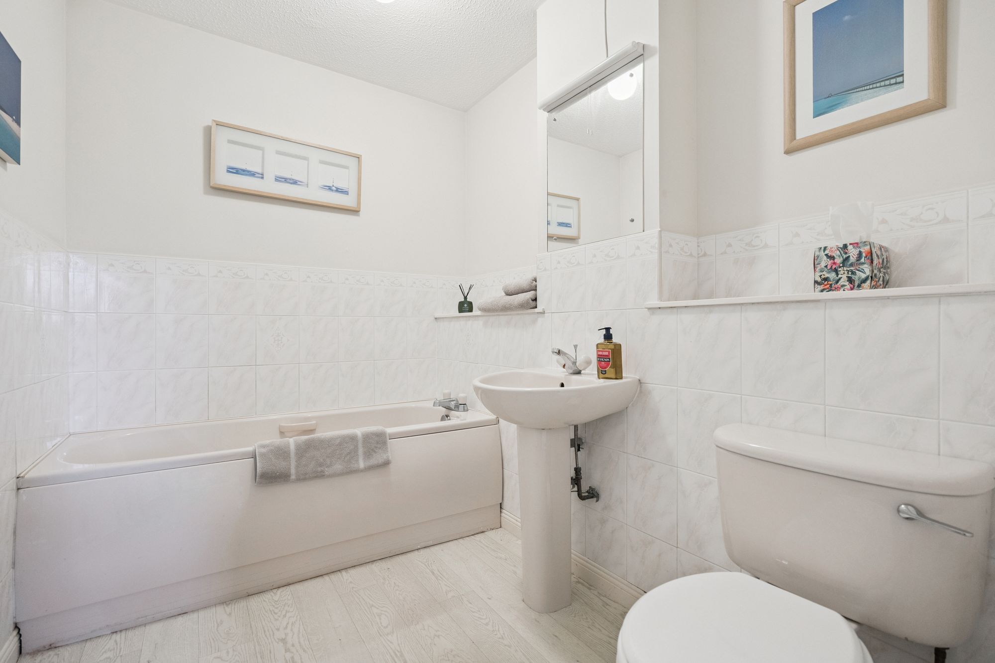 Externally, residents have access to communal grounds enclosed by a mix of timber fencing, hedging, and brick walling, creating defined and well-maintained outdoor areas. The flat also benefits from an allocated parking space and ample visitor parking, an increasingly valuable feature that adds to the overall practicality and appeal of this well-located home.
