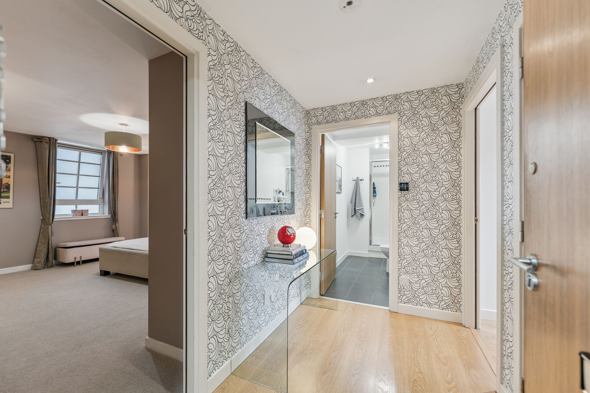 Access to the beautiful communal hallway is via a secure entry system with stairs and lifts allowing access to all levels. The home for sale is a well presented one bedroom flat located on the fourth floor. The attached photographs, floor plan and HD video tour will give an indication to the size and layout of the flat. However, in brief the accommodation extends to; welcoming entrance hallway with storage off, a spacious living/dining/kitchen. The kitchen itself has base and wall mounted units with tiled splash back and integrated appliances. There is an incredibly spacious bedroom, with two built in wardrobes and the accommodation is completed by a shower room with enclosed shower cubicle.