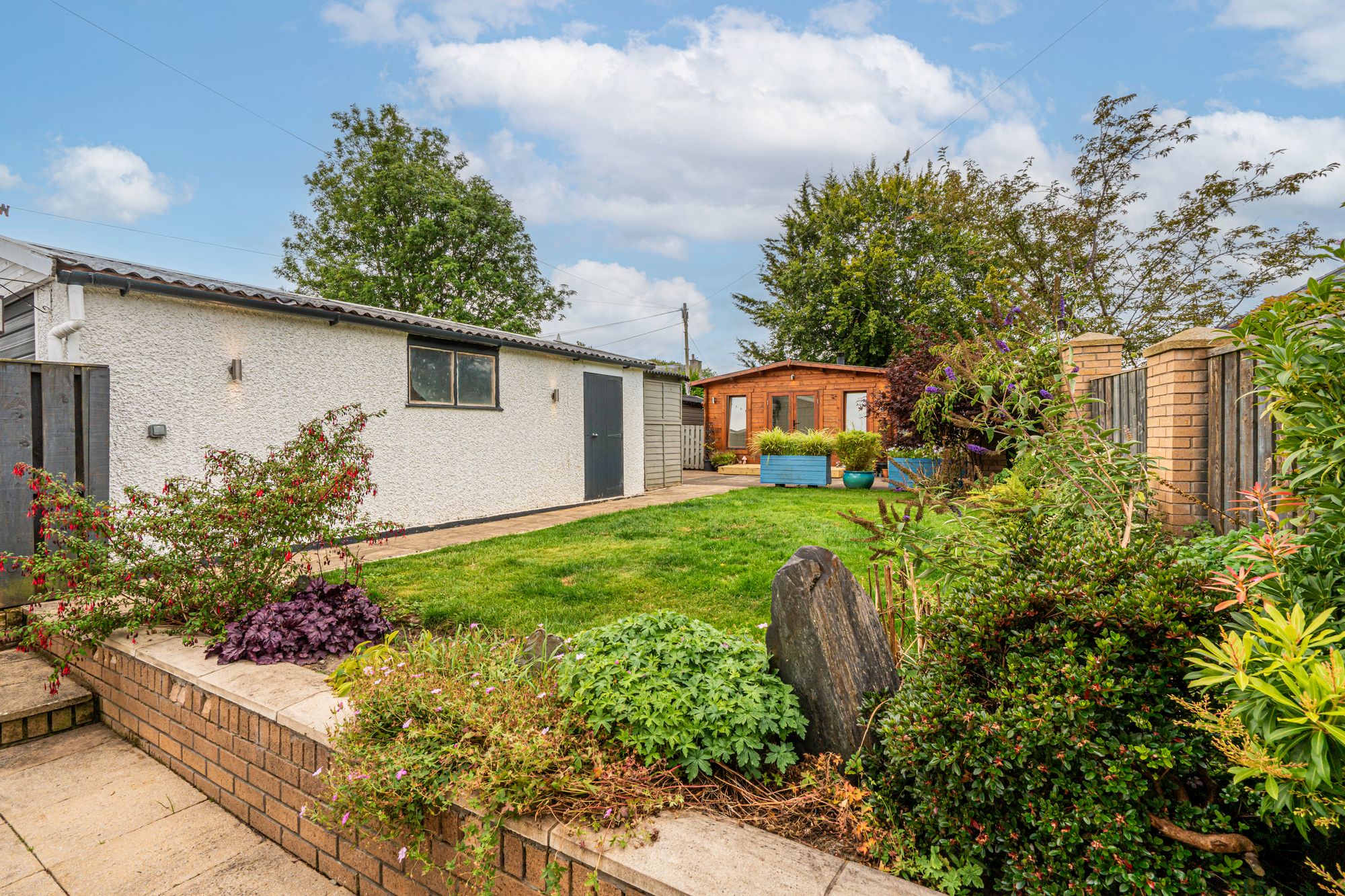 To the back of the property, a lean-to adds additional versatile space, perfect for storage or a utility area. There is also a detached single garage accessed via an electric up-and-over door, ensuring secure parking and extra storage options. The property benefits from generous garden grounds that surround the home to the front, side, and rear, mostly enclosed by timber fencing, offering both privacy and plenty of outdoor space for relaxation or gardening.