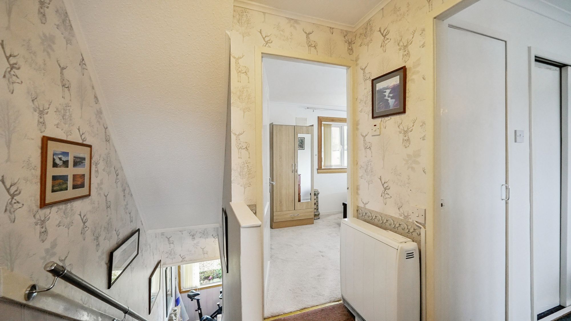 Off the upper landing, both double bedrooms offer ample built-in wardrobe space, providing a serene retreat at the end of the day. Upgraded electric heating and double glazing ensure warmth and efficiency throughout the seasons. Outside, you’ll find well landscaped front and rear gardens, complete with a garden shed and a garage accessed from the rear, adding extra convenience.