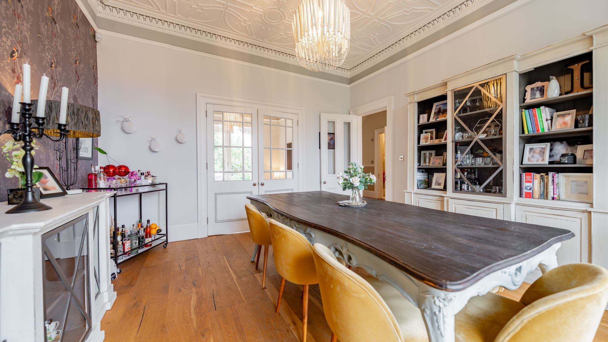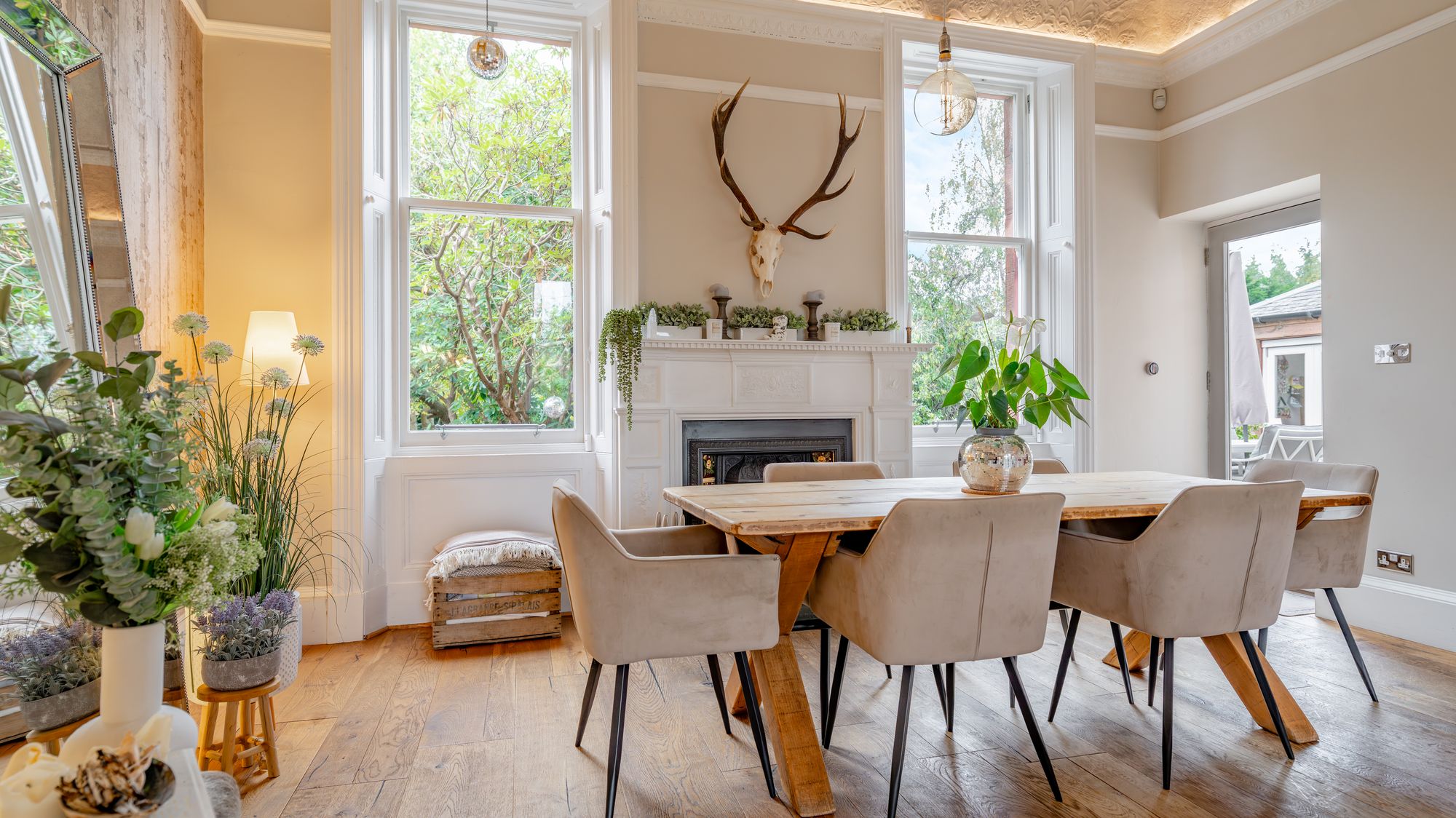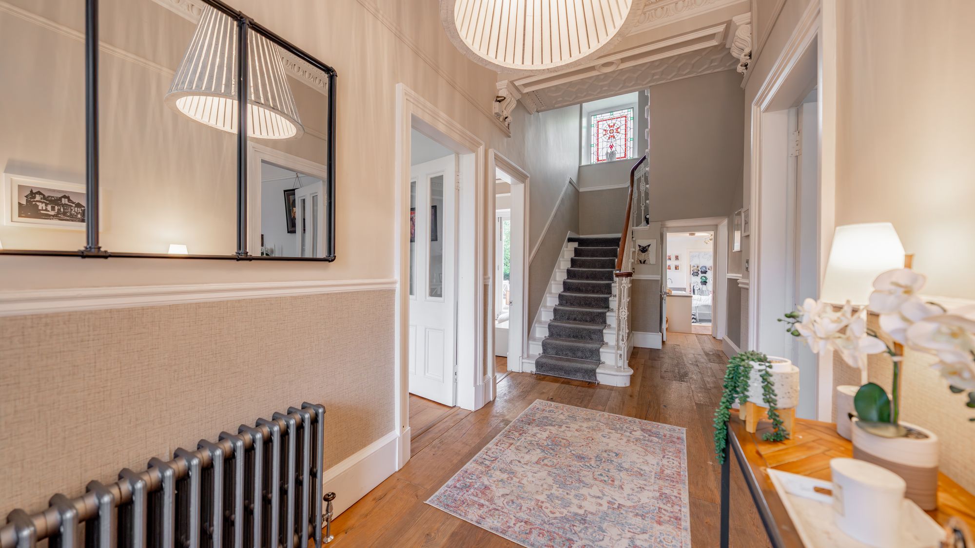 Ornate masonry frames the original storm door which opens in to the entrance vestibule with the number ‘16’ adorned in stained glass above. The quality and care taken in restoring this property is abundantly clear as you are met with intricate ceiling cornice and the original balustrade wrapping around the staircase leading to the upper level. The ground floor accommodation comprises of a large, bay windowed lounge with log burning stove, a similarly sized and equally impressive dining room with double doors opening in to the stunning ‘heart of the home’ - the open plan kitchen/dining/sitting room which boasts bi folding doors opening in to the rear garden accompanied by an abundance of natural light from an array of large windows and a stunning fitted kitchen complete with a large central island, state of the art integrated appliances and extensive work top space.