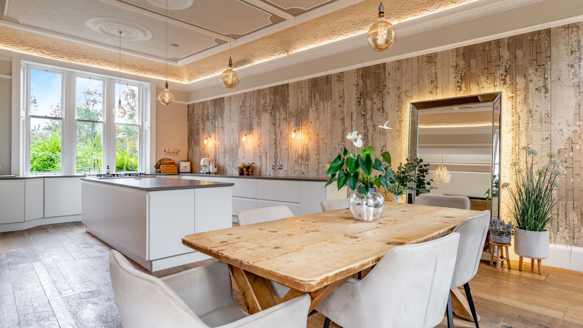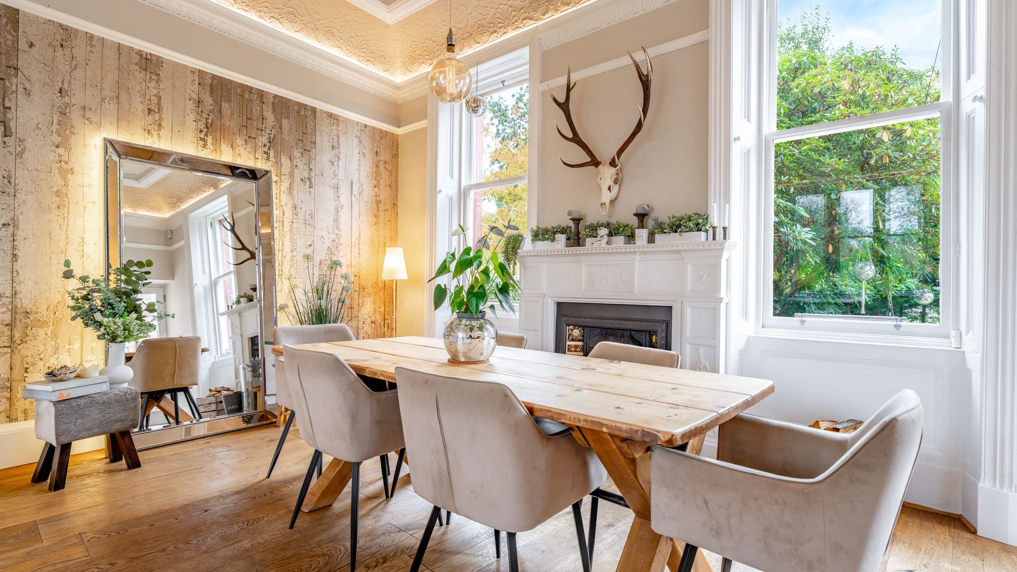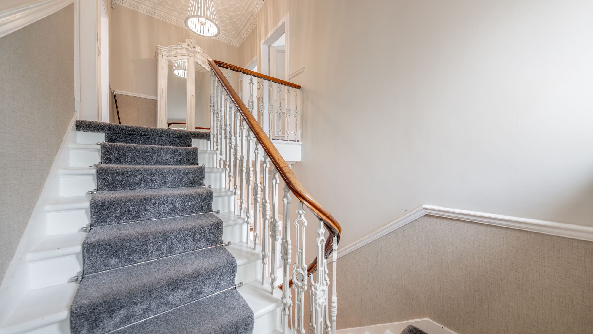 Ornate masonry frames the original storm door which opens in to the entrance vestibule with the number ‘16’ adorned in stained glass above. The quality and care taken in restoring this property is abundantly clear as you are met with intricate ceiling cornice and the original balustrade wrapping around the staircase leading to the upper level. The ground floor accommodation comprises of a large, bay windowed lounge with log burning stove, a similarly sized and equally impressive dining room with double doors opening in to the stunning ‘heart of the home’ - the open plan kitchen/dining/sitting room which boasts bi folding doors opening in to the rear garden accompanied by an abundance of natural light from an array of large windows and a stunning fitted kitchen complete with a large central island, state of the art integrated appliances and extensive work top space.