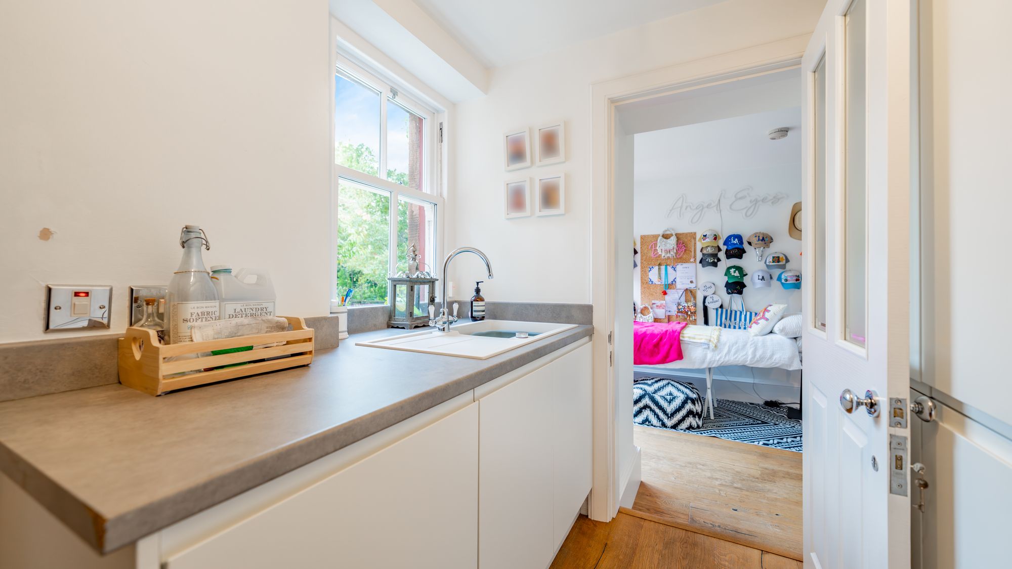 There is a versatile ground floor bedroom featuring an abundance of fitted storage, a separate utility room with space for free standing appliances which leads to a highly flexible room at the rear which would make for an excellent office/gym.
