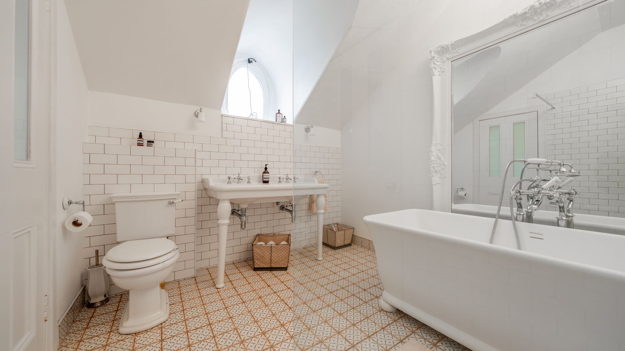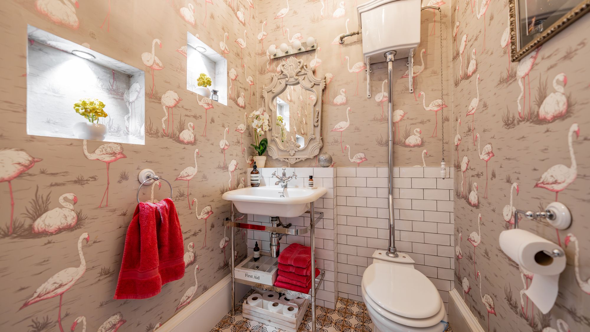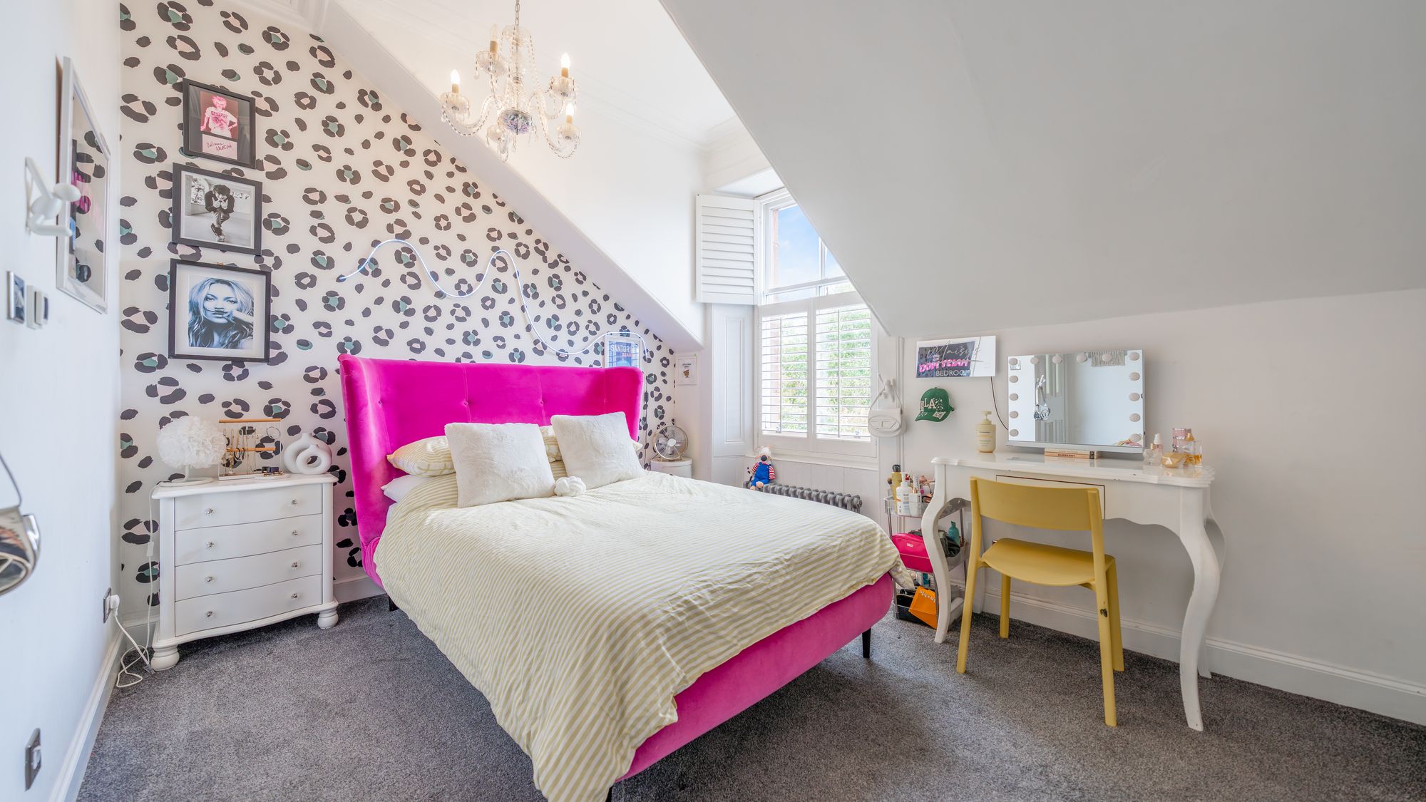 On the half landing is a well appointed dressing room boasting a full wall of fitted wardrobe storage and access to a shower room. The remaining bedrooms are positioned on the upper level with the principal benefitting from a large ensuite bathroom complete with walk in shower, WC and wash hand basin, complemented by stylish floor and wall tiling. Bedroom two and three feature fitted wardrobe storage and share a ‘Jack and Jill’ ensuite shower room and bedroom four has similar fitted wardrobe storage.