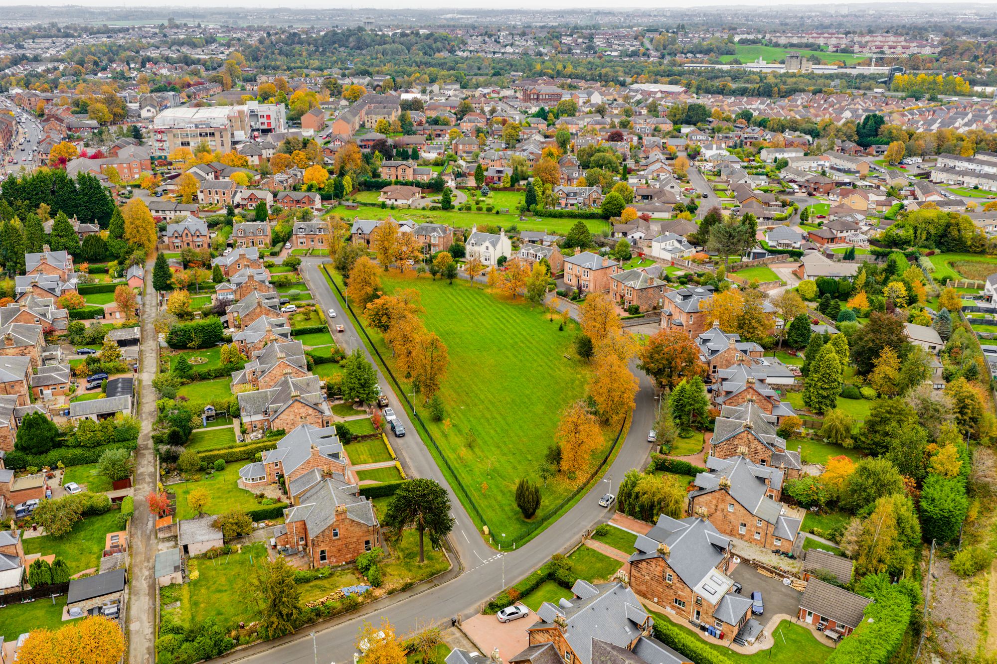 The property sits behind a stone pillared entrance opening in to a monobloc driveway providing ample off street parking for multiple vehicles and leading to the detached double garage in the rear garden. The rear garden has a broad patio area adjacent to the bifolding doors - ideal for outside entertaining - over looking an extensive area of lawn. There are well maintained and enclosed residents gardens to the front of the address shared by the neighbouring properties.
