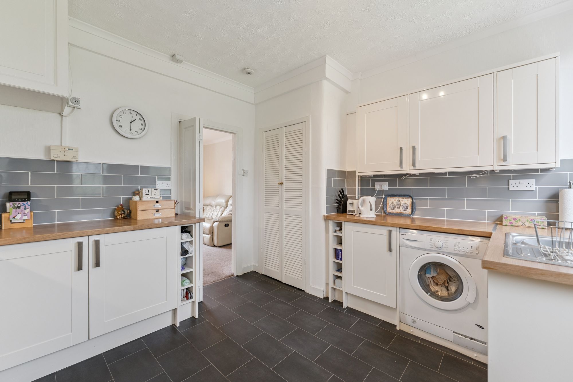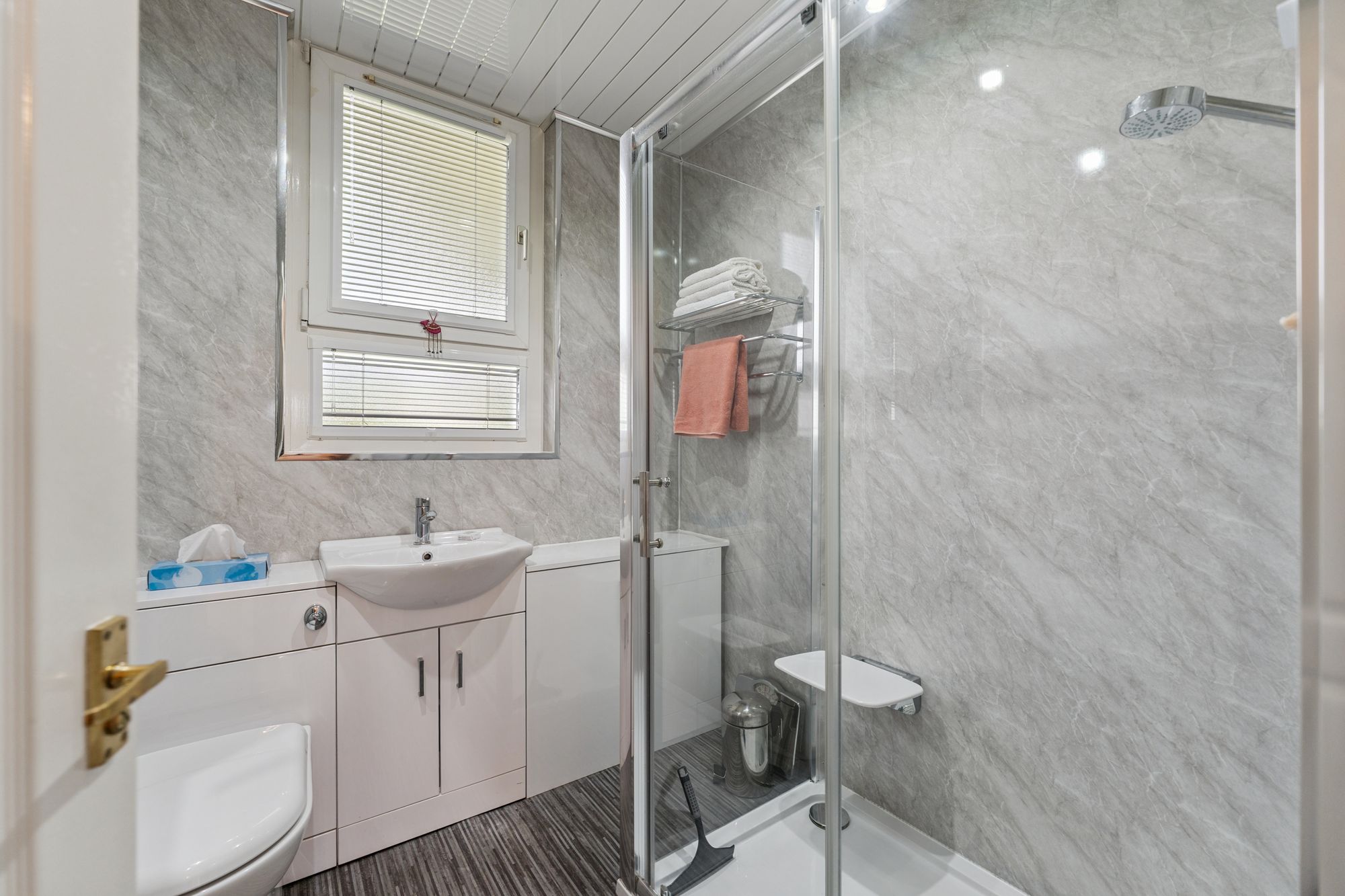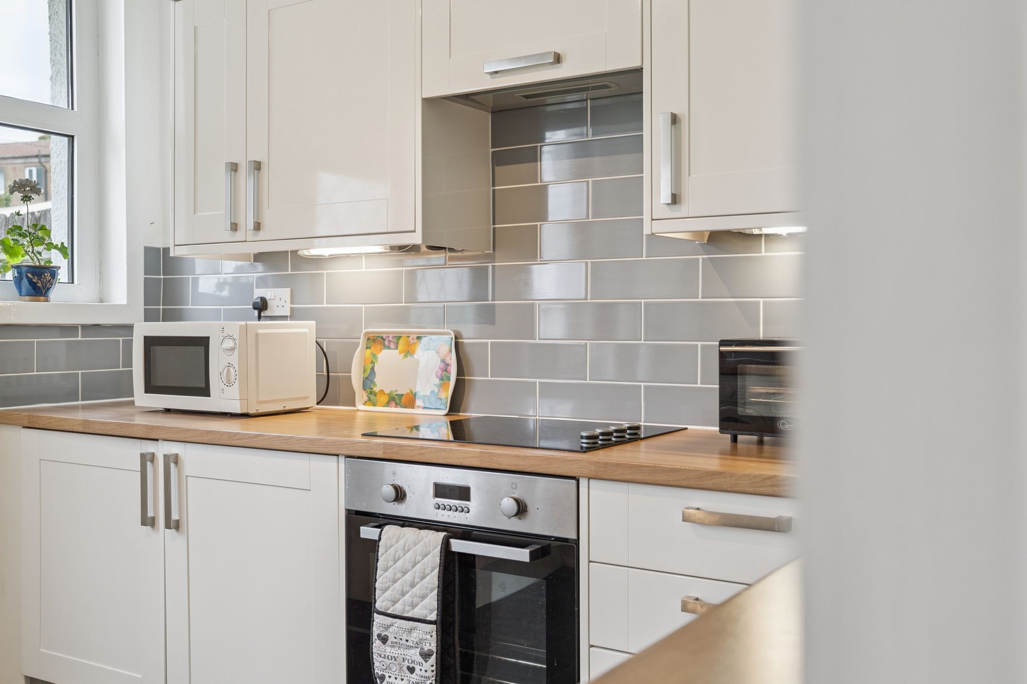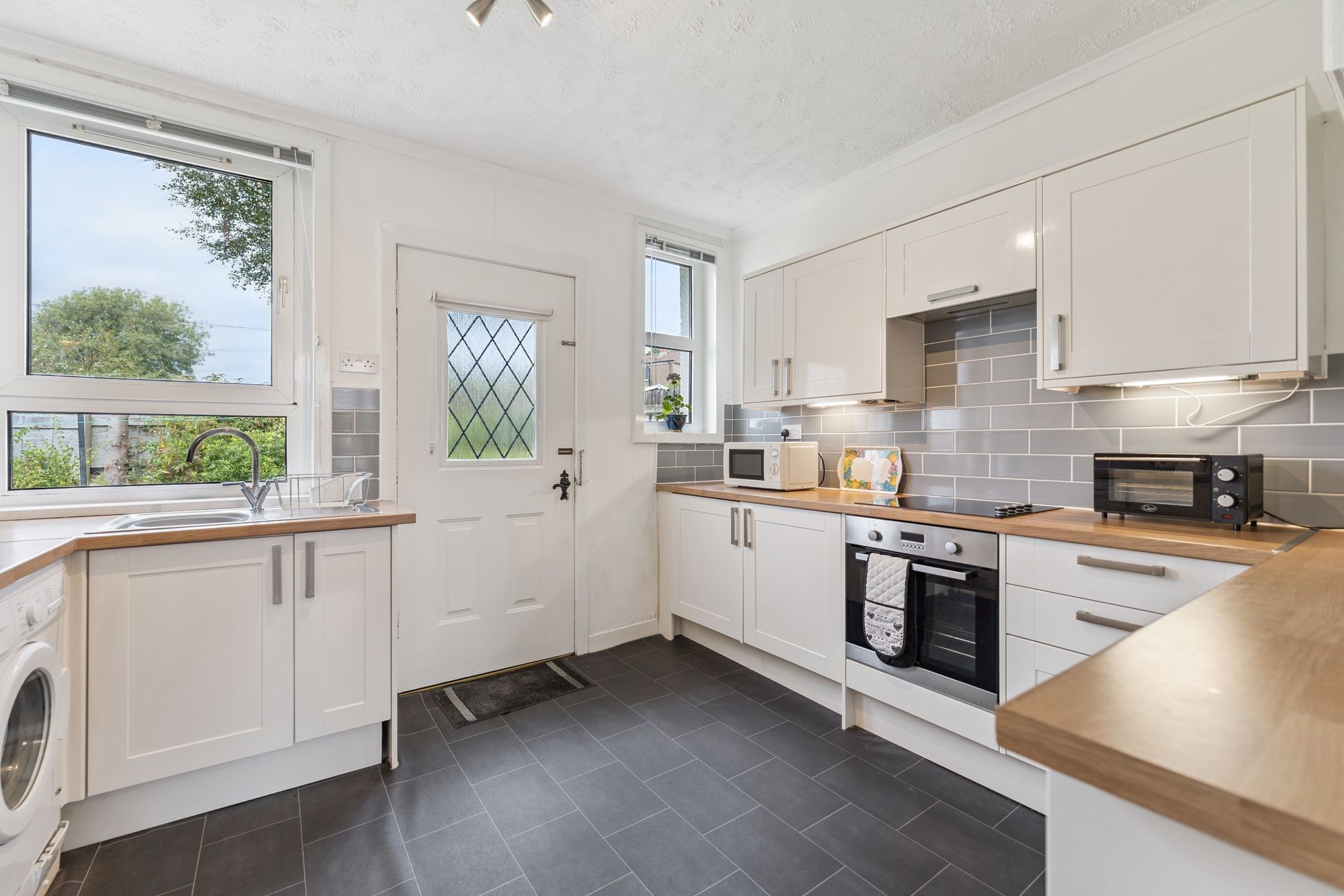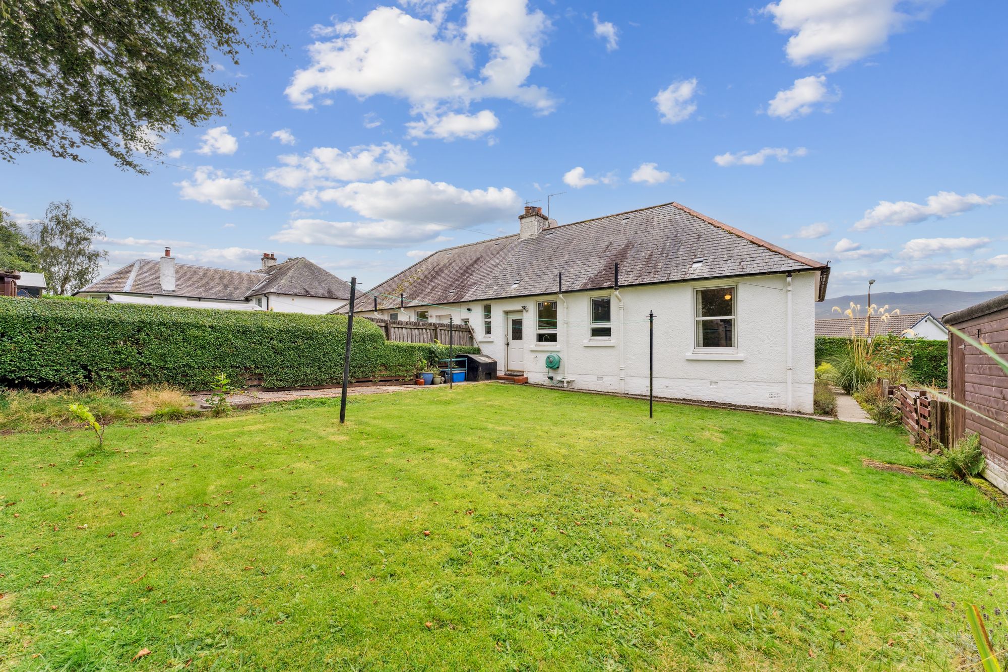 10 Strathview Terrace is a charming two-bedroom, semi-detached bungalow situated in a sought after area of Balfron. Offering all-on-the-level accommodation, the property features a welcoming reception hallway that leads to two generously sized bedrooms and a formal lounge, which enjoys lovely views and the comfort of an electric fire. The contemporary kitchen is fitted with white wall and floor-mounted units and integrated appliances. A modern shower room with a convenient walk-in shower completes the accommodation.